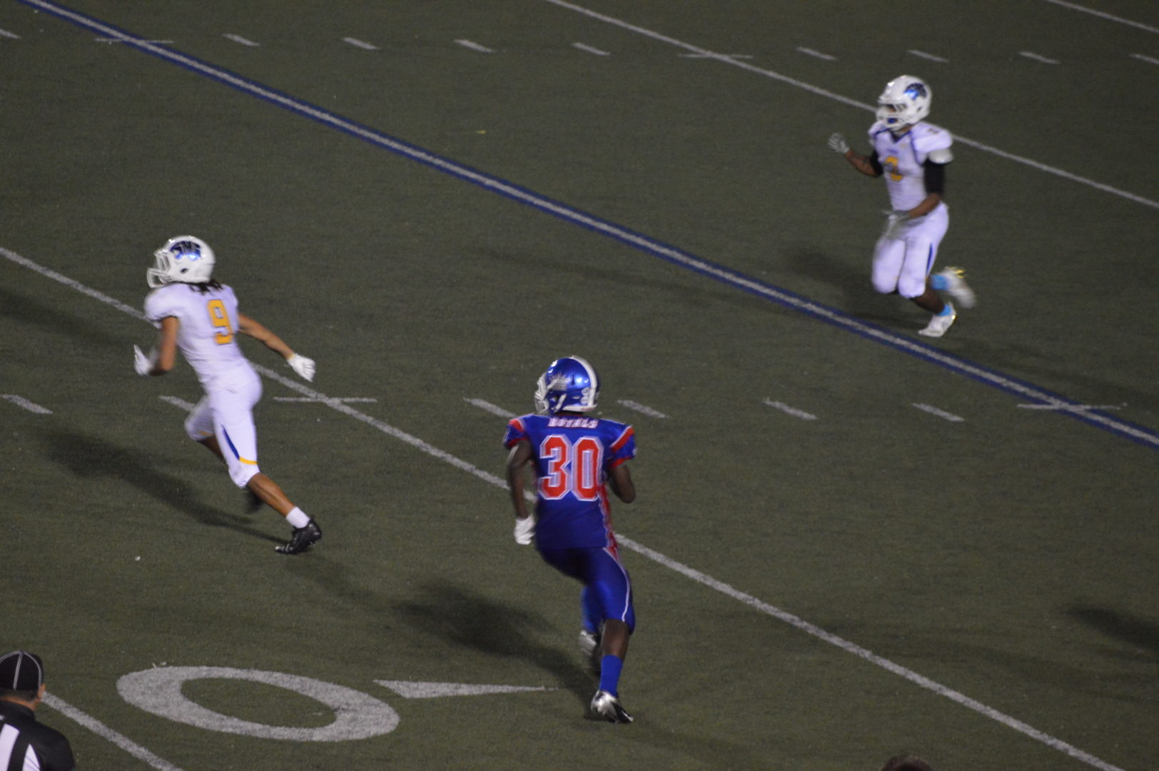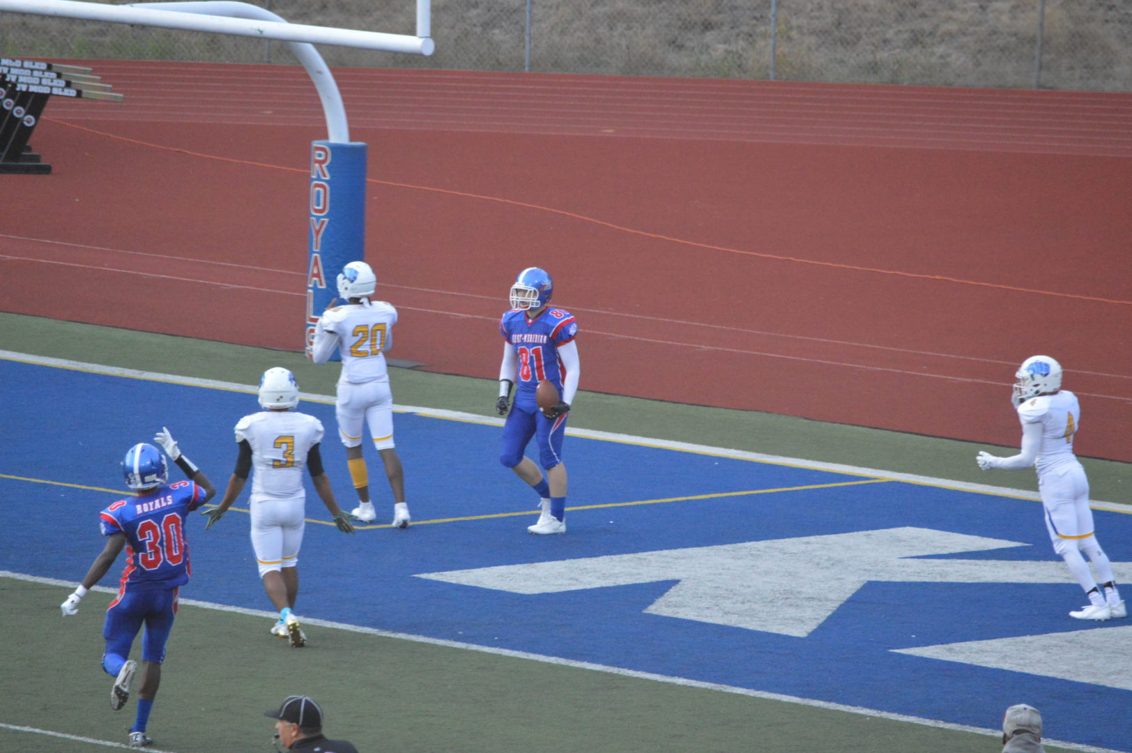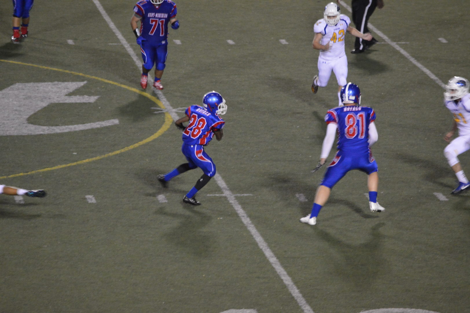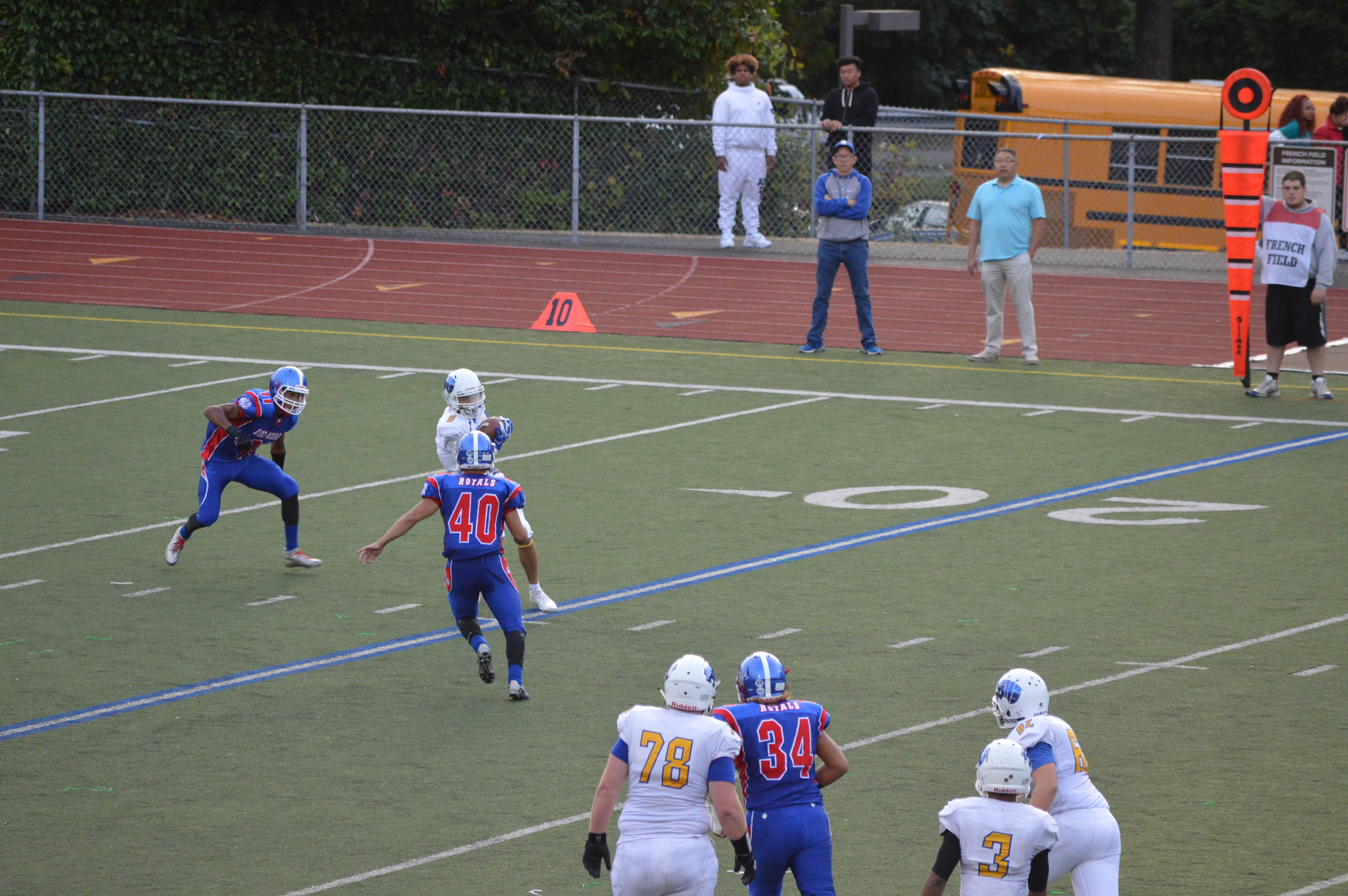 Kent Meridian was looking to bounce back but took a while to get their offense cranked up and they quickly fell behind 14-0. Isaac Cordova had a big day at QB too and also would have been even more but the Royals again had a hard time catching the ball dropping several right in their hands and tipping one up for an easy pick-off. Once they got settled and began to move the ball it was virtually all through the air.