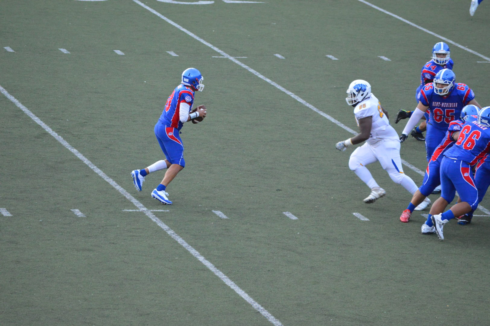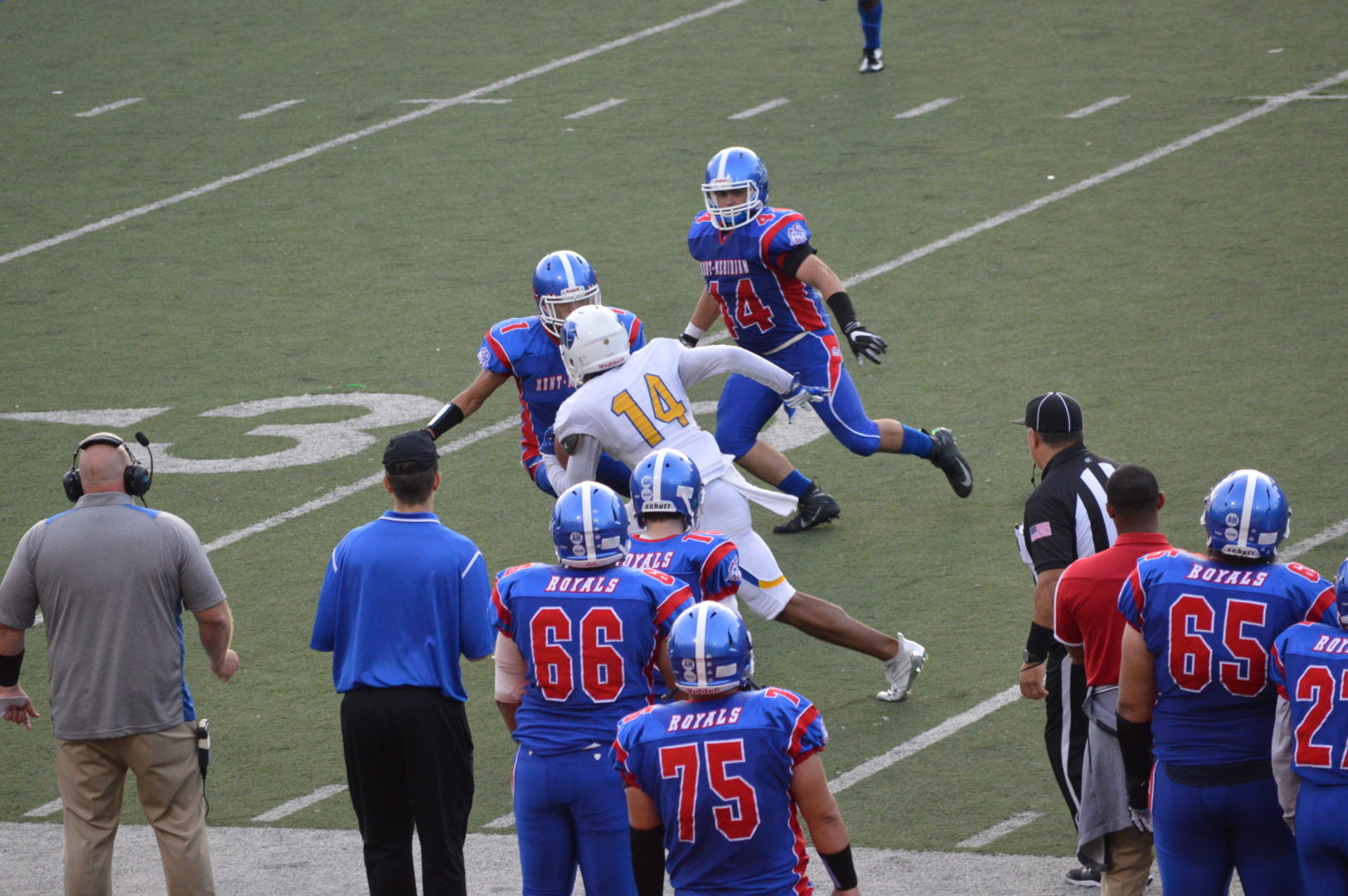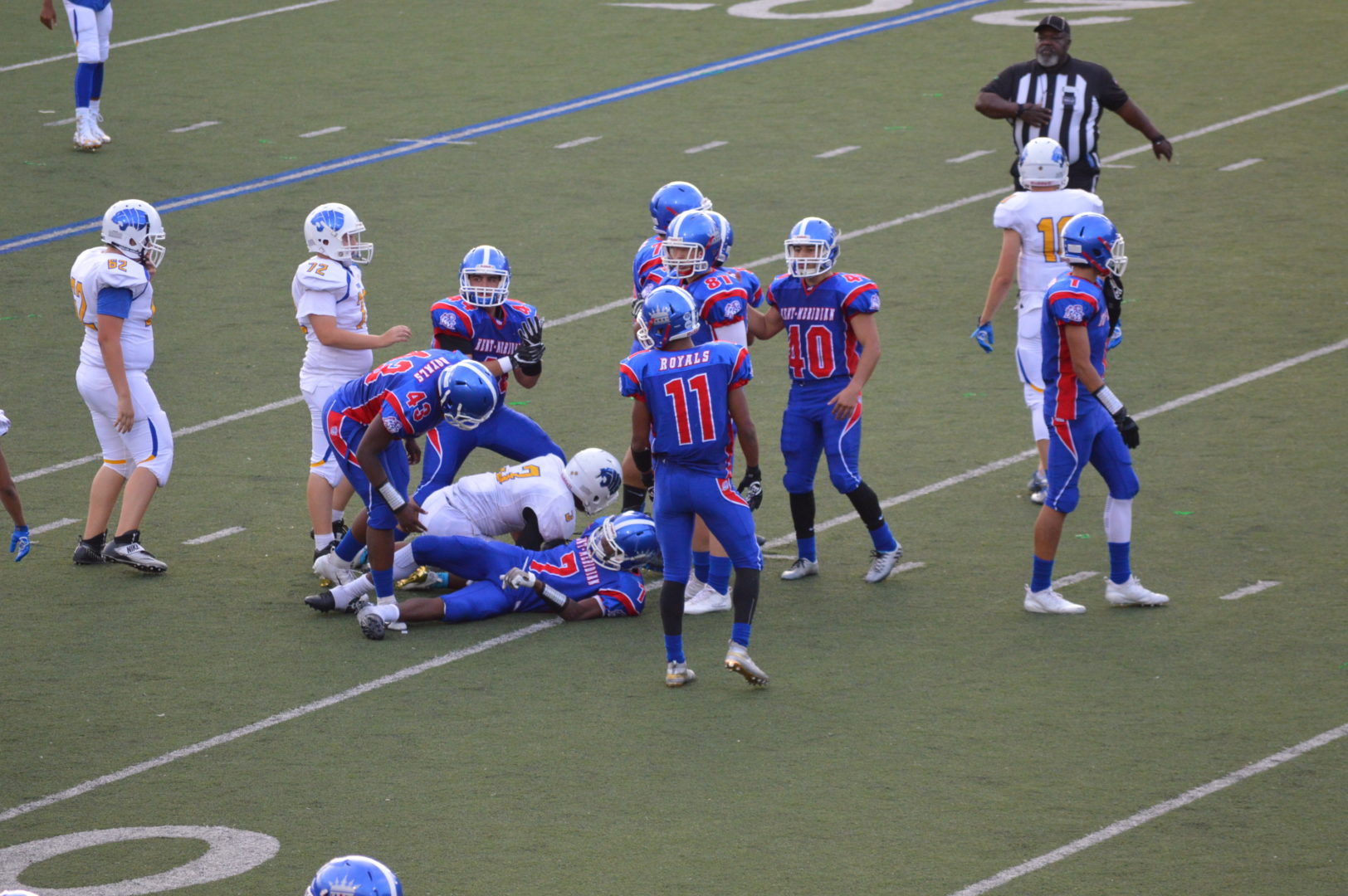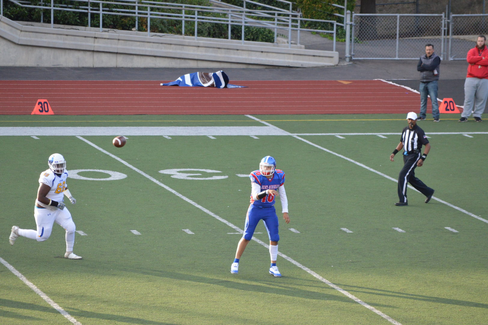 Kent Meridian was looking to bounce back but took a while to get their offense cranked up and they quickly fell behind 14-0. Isaac Cordova had a big day at QB too and also would have been even more but the Royals again had a hard time catching the ball dropping several right in their hands and tipping one up for an easy pick-off. Once they got settled and began to move the ball it was virtually all through the air.