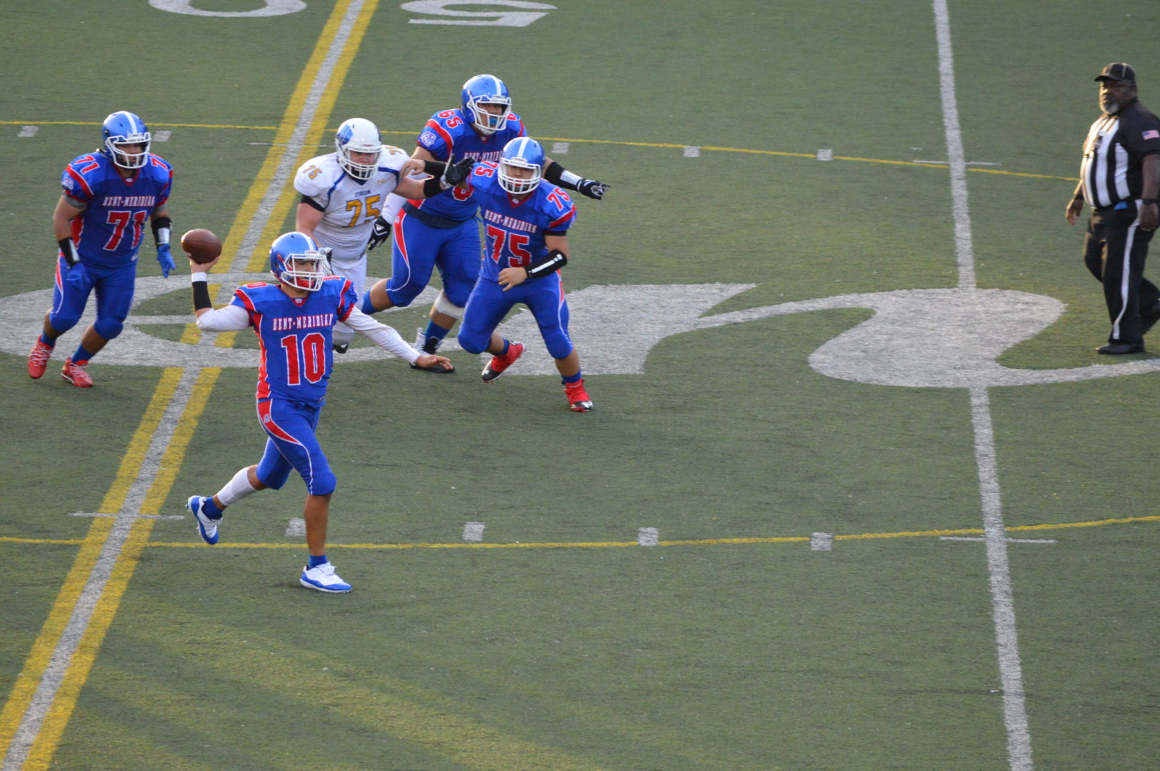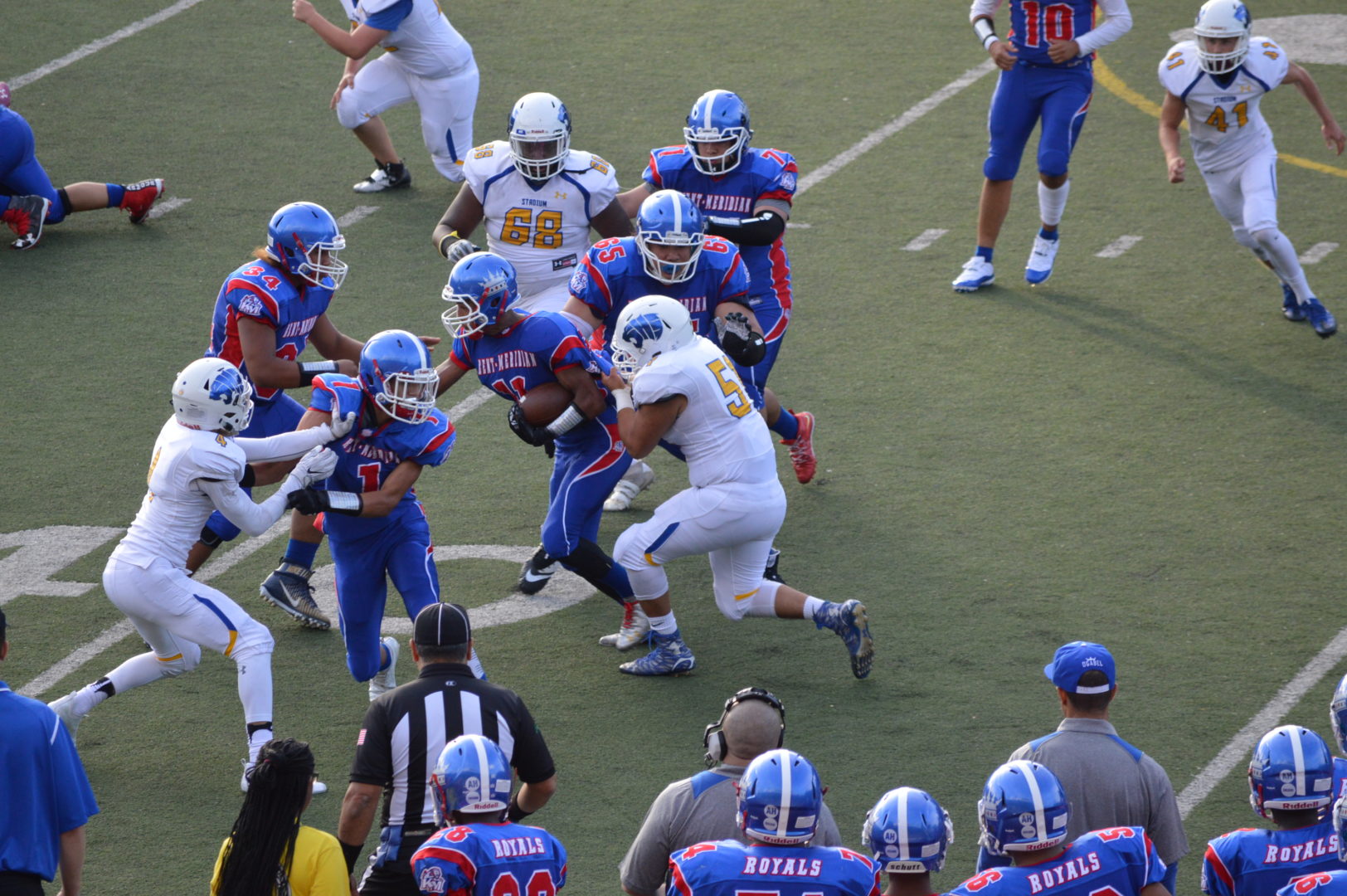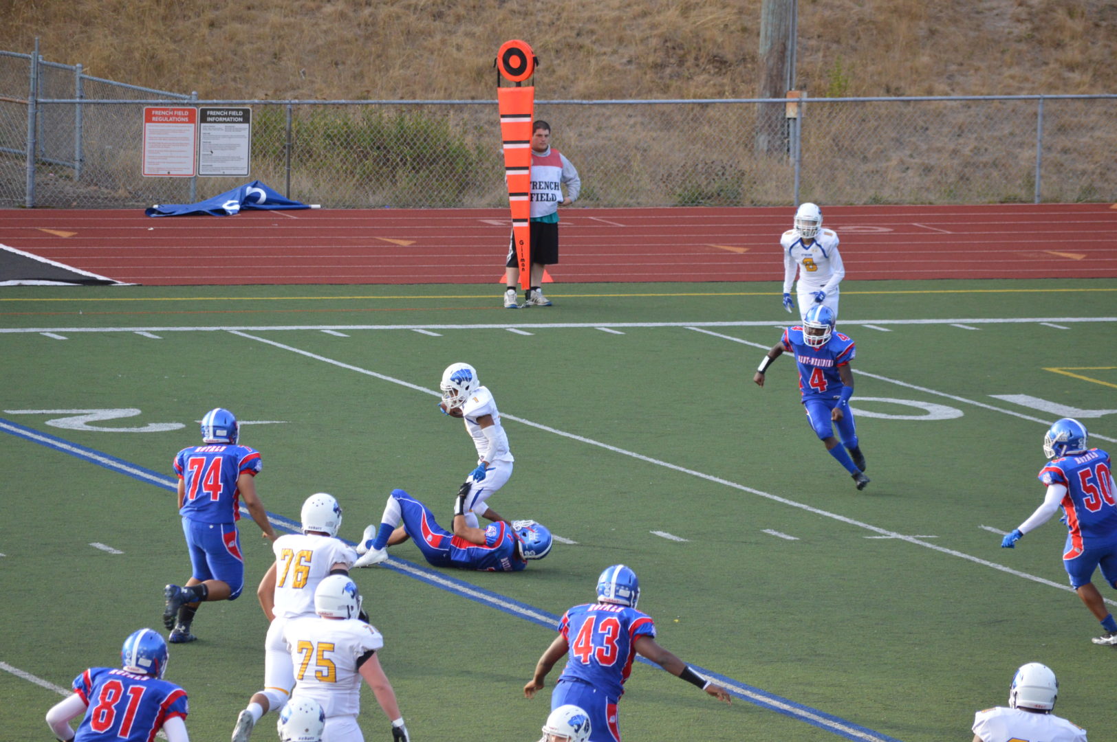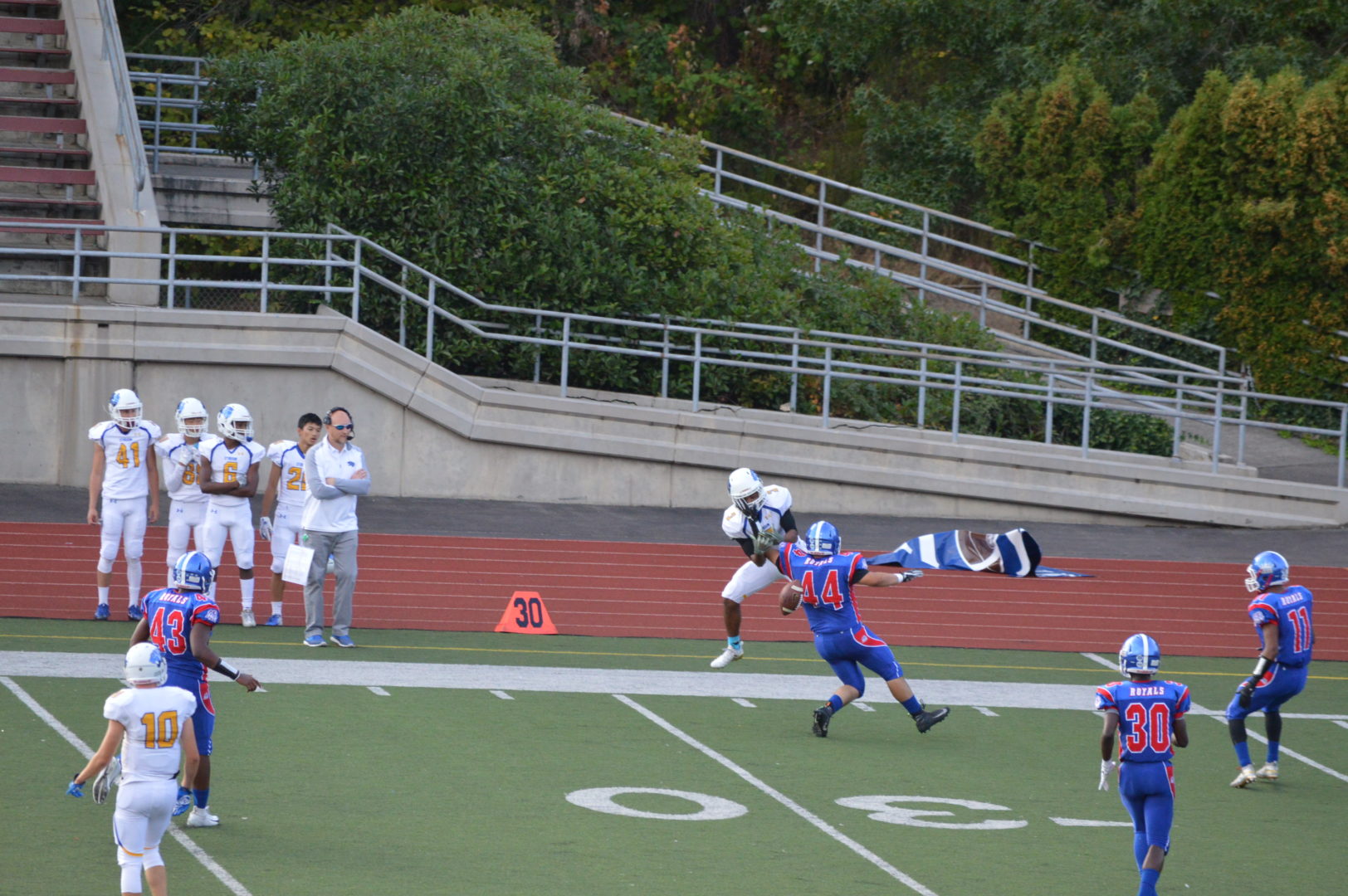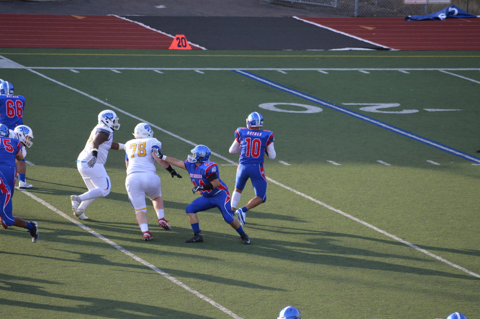 Kent Meridian was looking to bounce back but took a while to get their offense cranked up and they quickly fell behind 14-0. Isaac Cordova had a big day at QB too and also would have been even more but the Royals again had a hard time catching the ball dropping several right in their hands and tipping one up for an easy pick-off. Once they got settled and began to move the ball it was virtually all through the air.