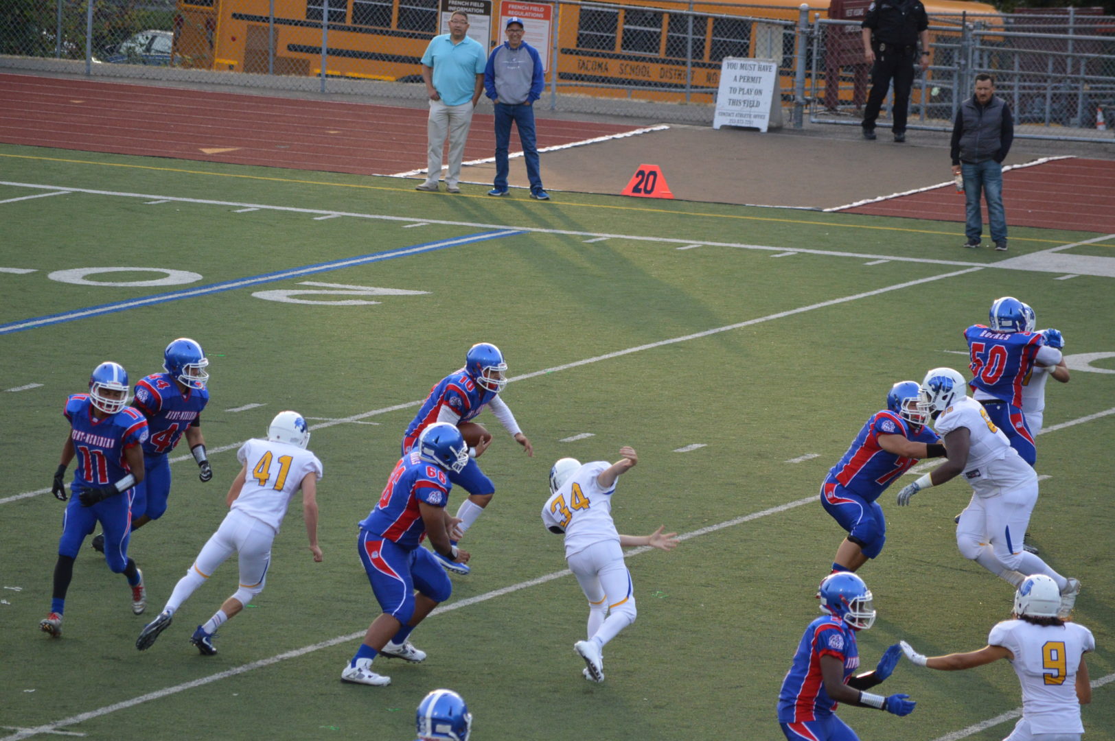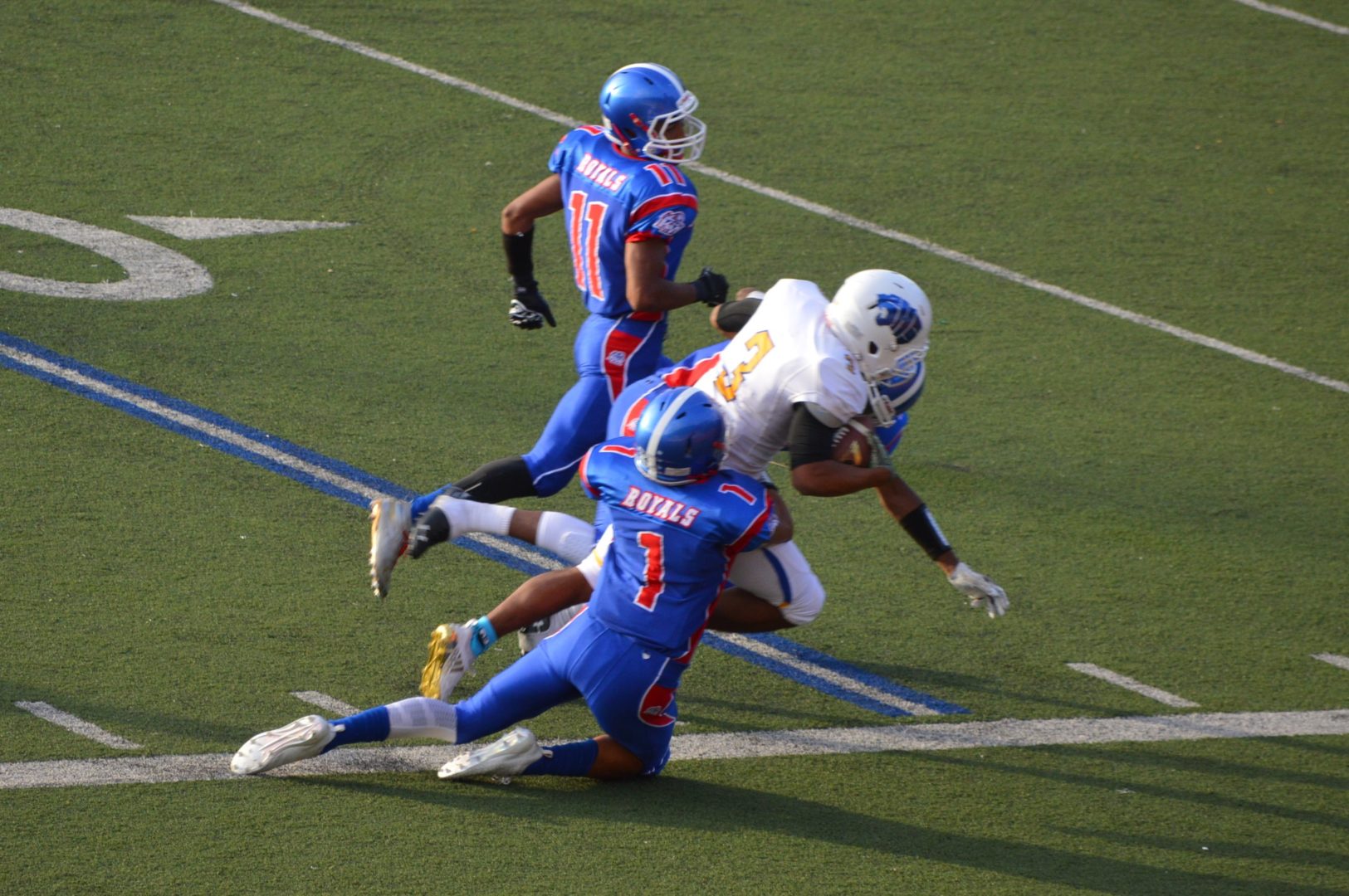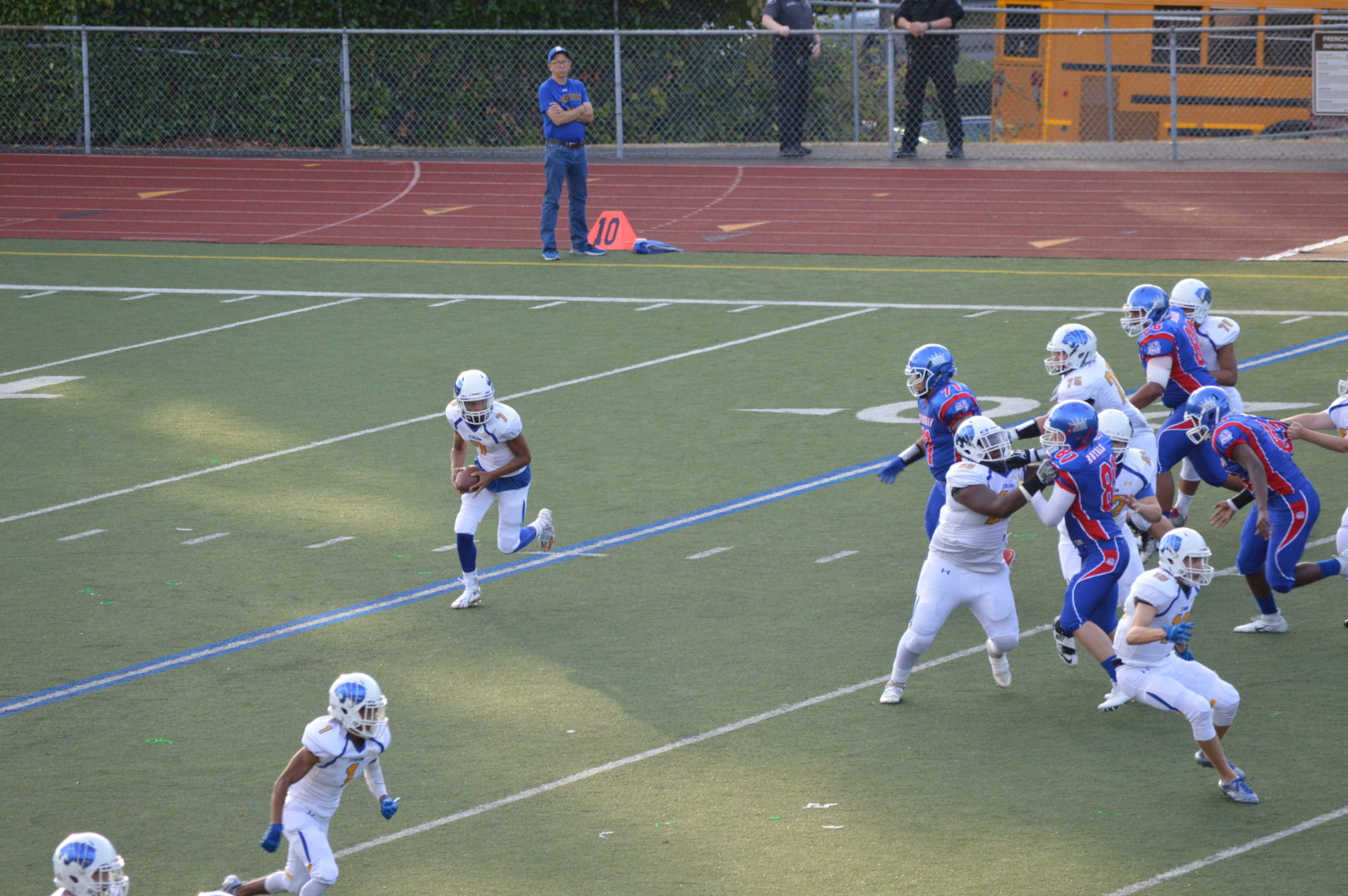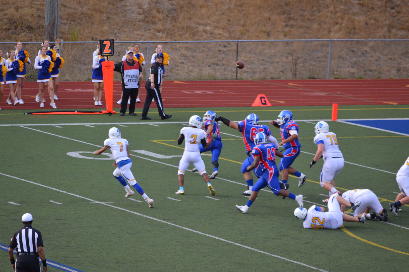 Kent Meridian was looking to bounce back but took a while to get their offense cranked up and they quickly fell behind 14-0. Isaac Cordova had a big day at QB too and also would have been even more but the Royals again had a hard time catching the ball dropping several right in their hands and tipping one up for an easy pick-off. Once they got settled and began to move the ball it was virtually all through the air.
