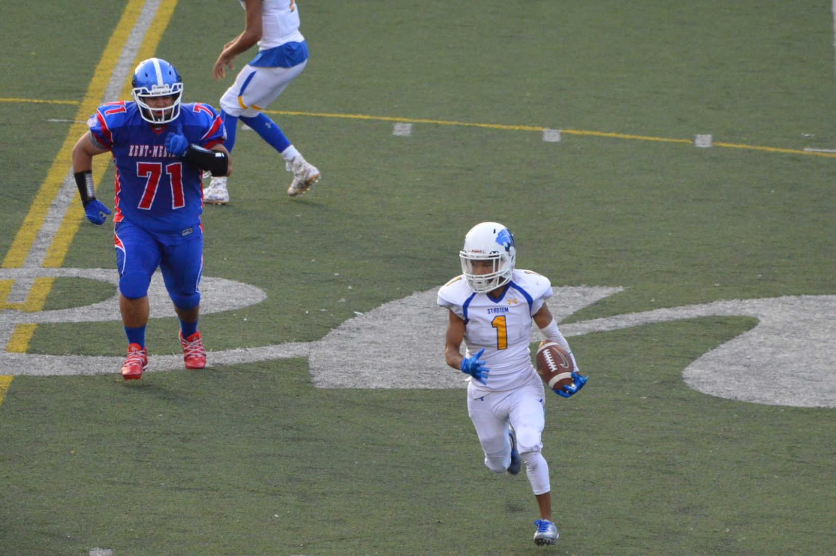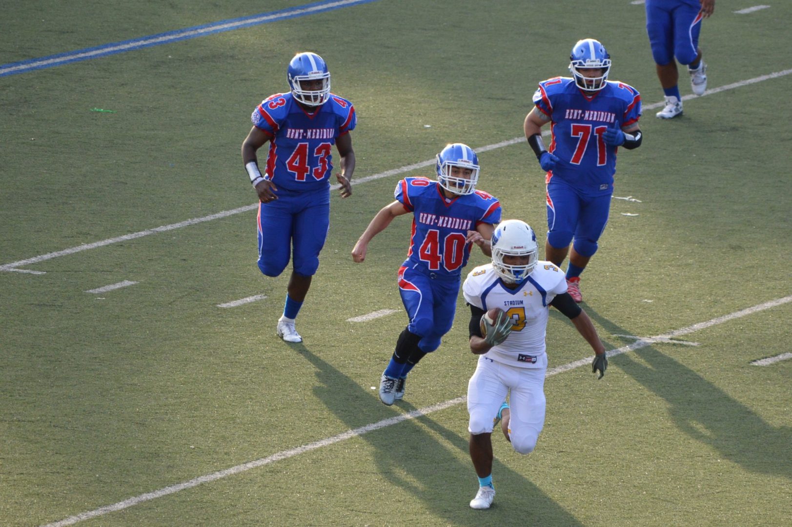 (Kent, WA) 1,065. That was the total offense the Stadium Tigers and Kent Meridian Royals put up Saturday night at French field. This total would have been a lot more had the officials not littered the field with penalty flags all night. Leading the Tigers was QB Corry Sanders who threw the ball 43 times and completed 25 of them for 387 yards, 3 touhdowns and 1 interception. Sanders also ran a TD in for the Tigers. Sanders hit Xavier Mason with his 1st pass of the game for a 14-yard touchdown. They faked the extra point and Sanders as the holder flipped it to Mason for an 8-0 lead.