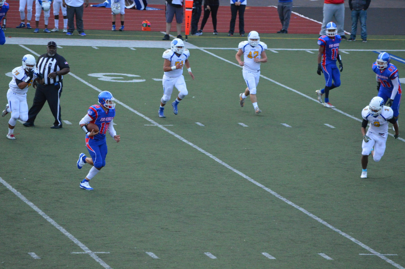 As the game unfolded the Tigers took a 20-7 lead into halftime when Cordova found Dewitte for the 1st time on a 28-yard hook-up to make it 20-14. Stadium answered to make it 27-14. jones had already scored on a 38 yard catch and run so the speedy Jones thought well let’s kick this up a notch and grabbed another pass from Cordova then hit the sideline and outran everyone for a 68 yard scoring play to make it 27-20.