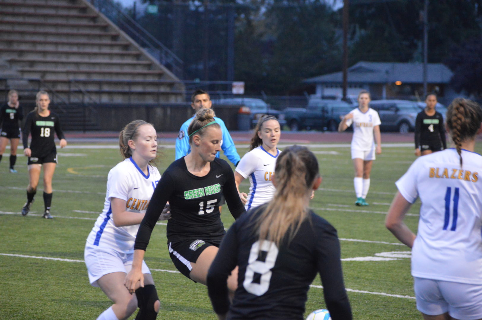 The Blazer defense was holding up strong led by keeper Haylee Perkinson and backliners Payton Chapin, Hallie Stubb and Lindsay Hutchings until the 33rd minute when a shot skidded on the wet turf and just got past Perkinson to her right side and dribbled into the goal. But that would be it for the Gators in the first and the 2 teams went to the break with Green River leading by a score of 1-0.
