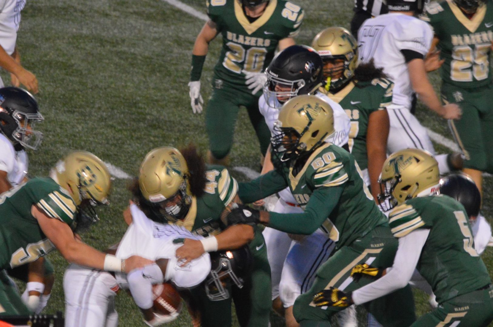 (Lacey, WA) By the time Zach Webb caught Elijah McGee’s touchdown pass late in the 1st half for the Central Kitsap Cougars the game at Timberline was pretty much over. Usually teams try to schedule easy teams for their homecoming games but the Blazers instead welcomed the 3-0 CK Cougs and on a Thursday night on top of it. Timberline wasted little time in taking control of this one with the very first drive. The Blazers actually scored twice the first one was called back on a penalty but Timberline came back to take care of business with an 18-yard strike from QB Hunbter Campeau to Izaiah Jerenz. Mason Joubert booted the extra point and it was 7-0.