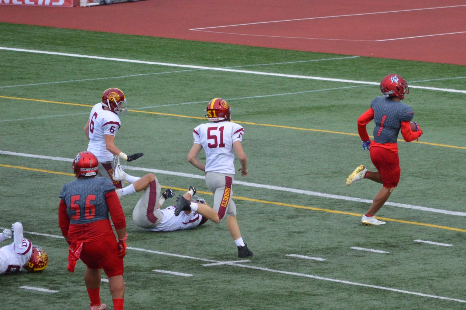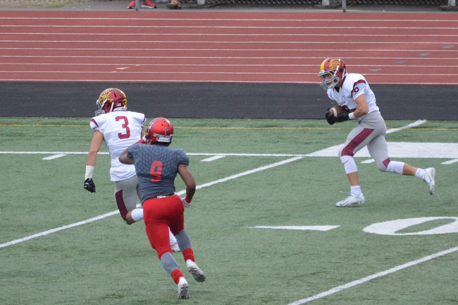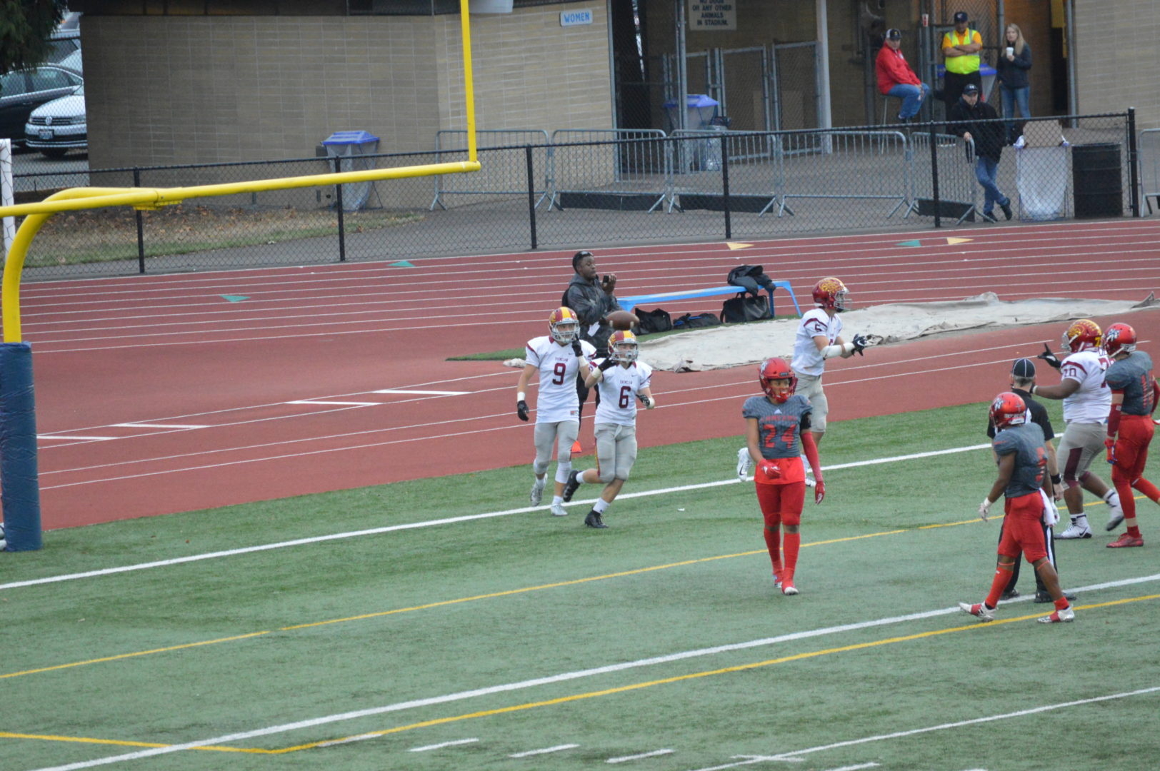 The Lancers offense then began to fire on all cylinders again as they came roaring back with 3 straight touchdowns to tie the game at 42 with 6:28 to play in the game. They got the comeback started when Huard hit Tinae for a 22-yard strike. After turning it over on downs near midfield the Lancers capped off this TD with a 15-yard run by Tinae and it was 42-35. The Lancer defense then stepped up when Riley Maroni picked Kranc and returned it 30-yards to the Enumclaw 32. Kennedy then went to the running game to finish off this drive to tie the game when Jordan Jackson surged in from the 4 and with 6:28 to play it was a new game 42-42.