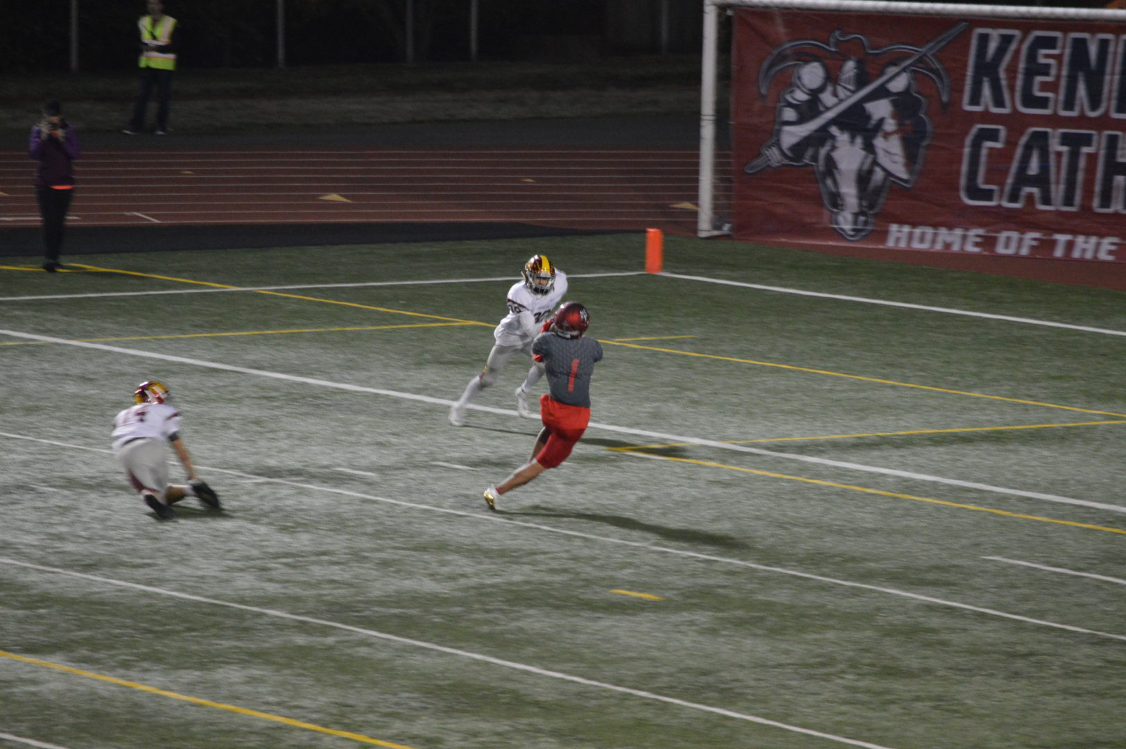 Enumclaw received the 2nd half kick and picked up where they left off as they would reel off 2 more touchdowns to double up Kennedy 42-21. On the 1st drive QB Kellen Kranc got into the act with a beautiful pass to Bryson Engebretsen on a 31-yard connection. On the 4th straight unanswered TD starting RB Nicholas Harberts started to break it open and capped the 63-yard drive with a 3-yard plunge and it was 42-21 with 4:32 to play in the 3rd quarter.