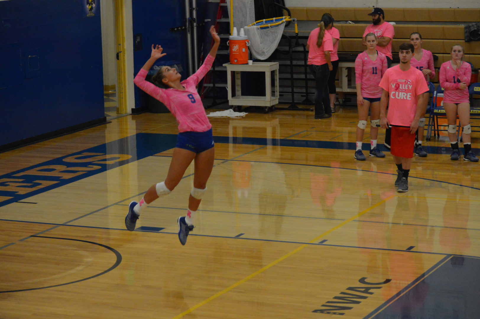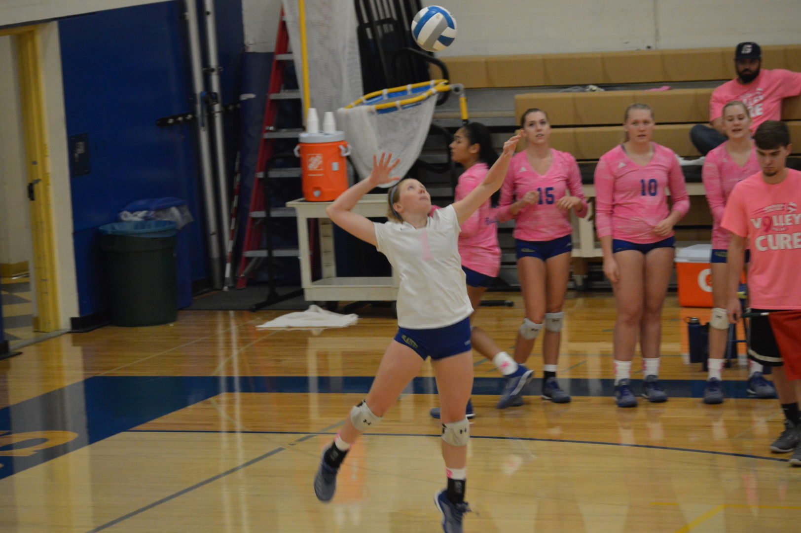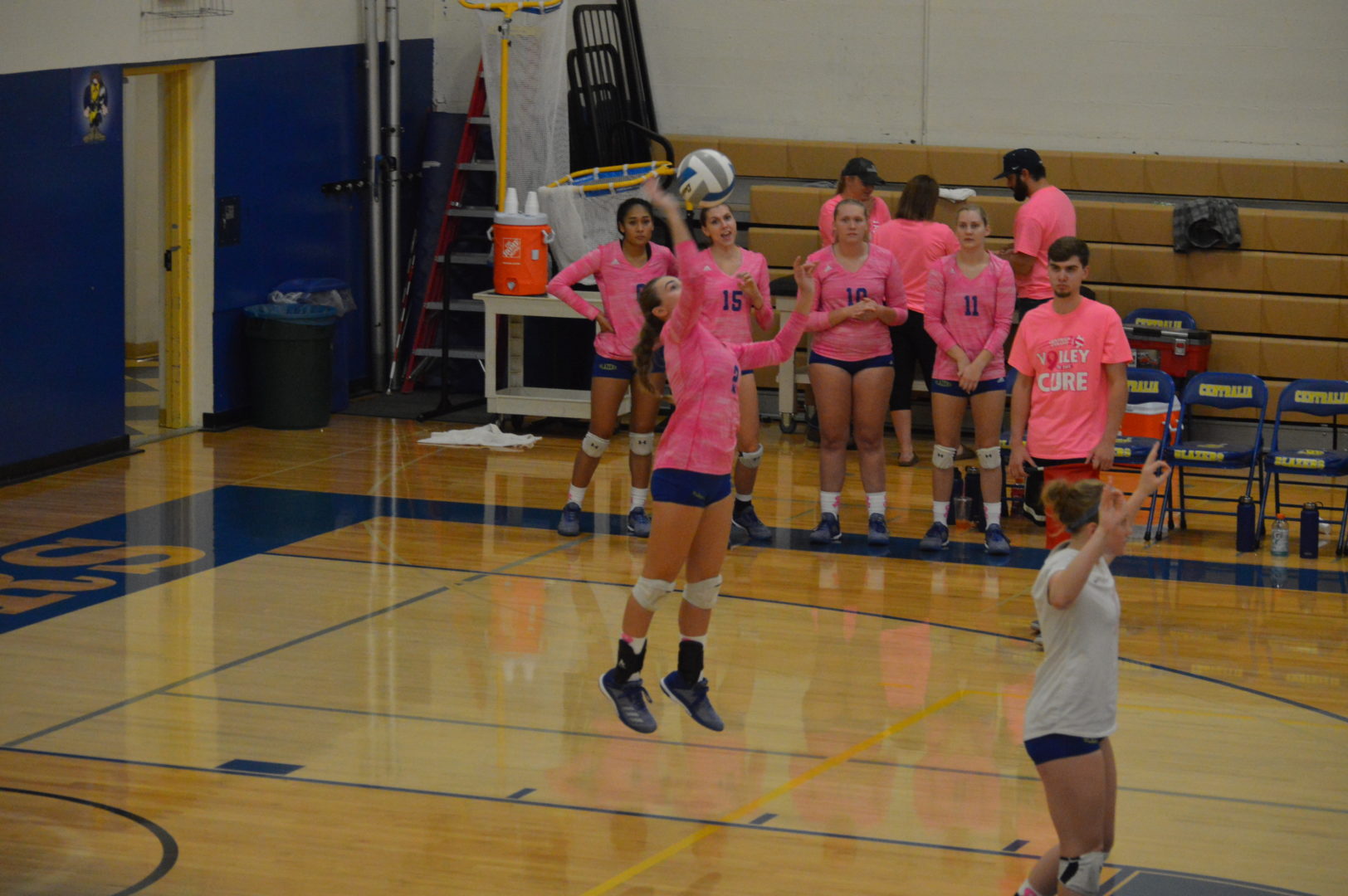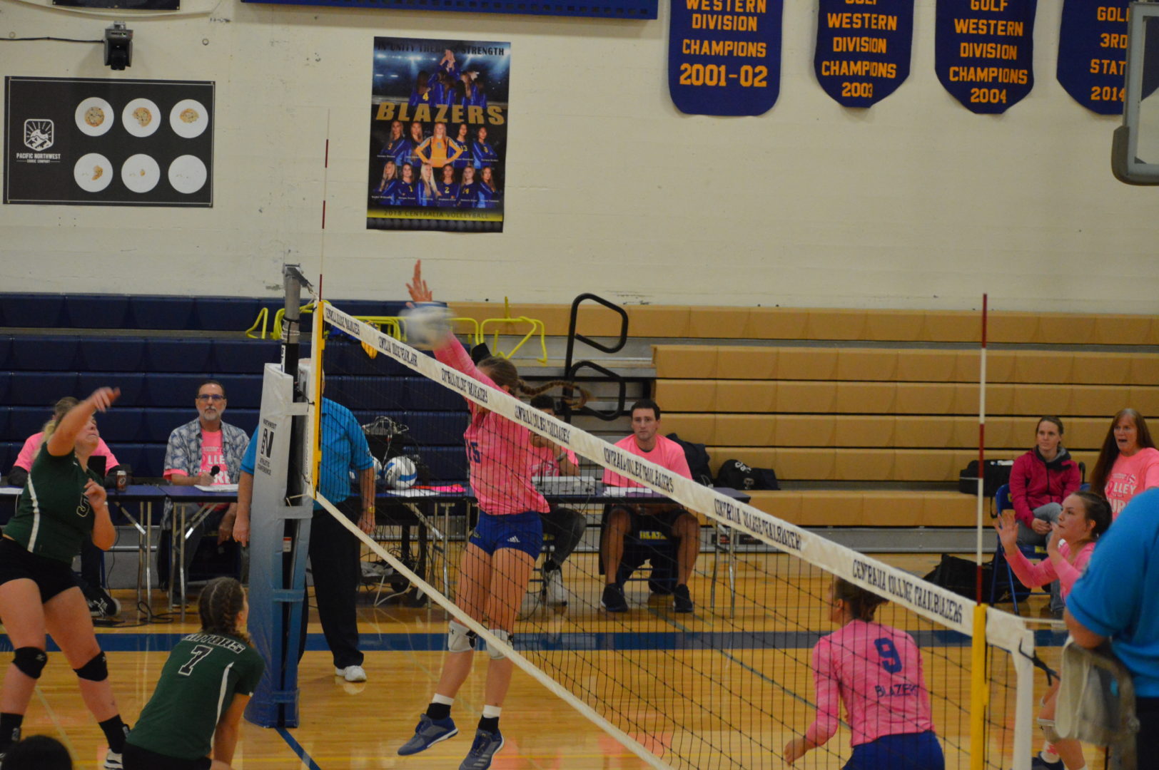In the 1st set Peyton Timmons got things started with a 10-point run at the service line and they quickly took an 11-1 lead. Autumn Durand and Taviana Keahey supported the live serving of Timmons with great kill shots and blocks at the net and the Blazers cruised to a 25-12 win.