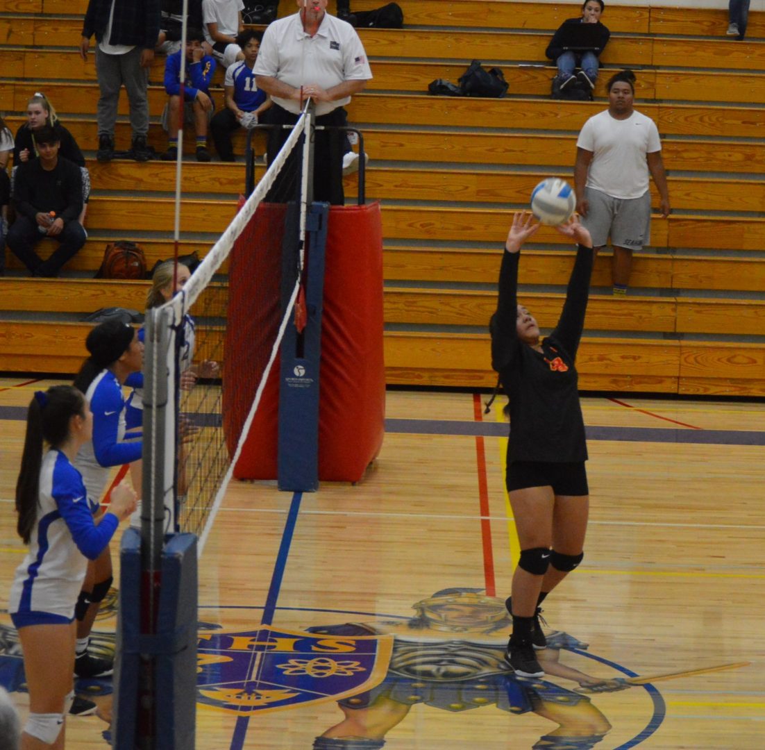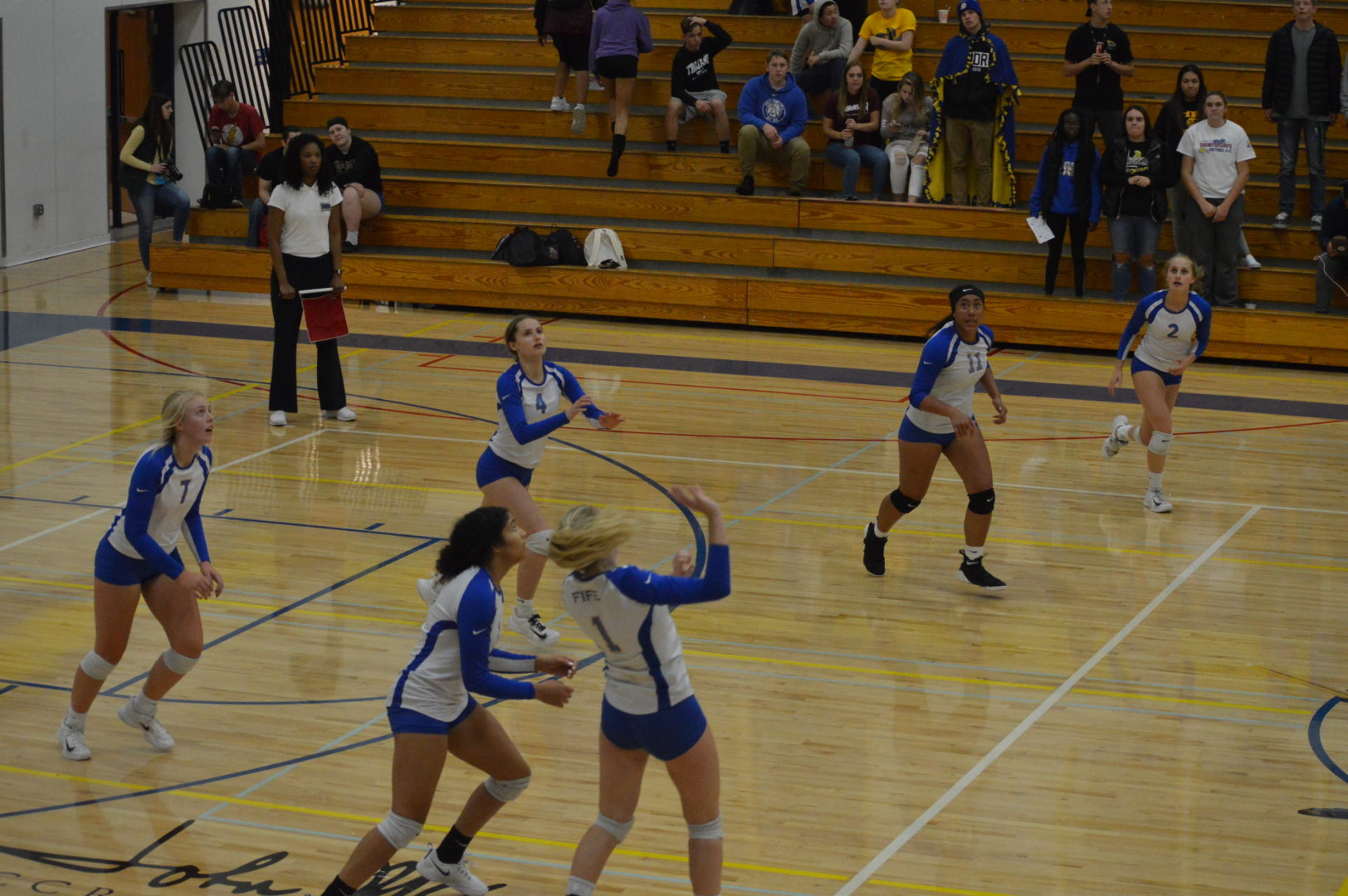 Casonndrah Polo for the Trojans sealed it when they got the serve back trailing 24-23 and won the tying point then fired an ace to give Fife set point and they finished it off to take a hard fought 1st set.