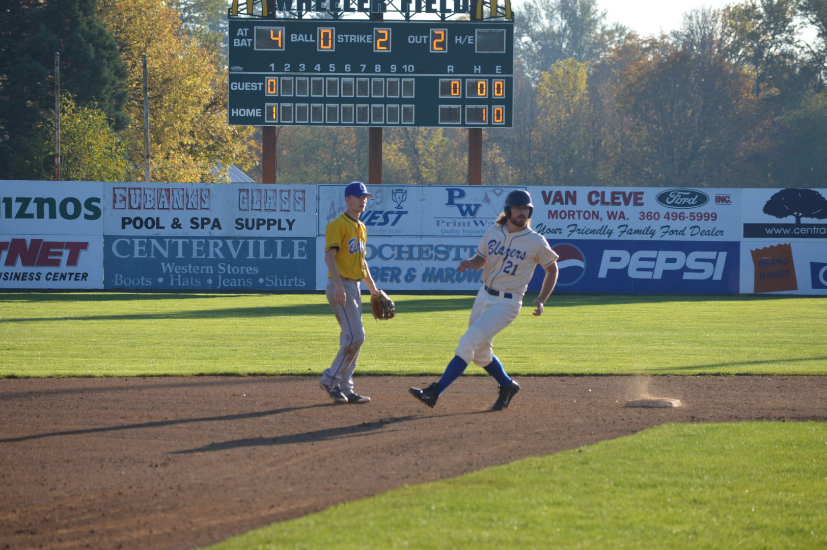 (Centralia, WA) New Centralia Blazer Head Baseball coach Cody Atkinson when he was hired said he was going to bring a new energy, new ideas and a new approach and in his first season of Fall ball he is doing just that. The A-1 World Series began Wednesday at Wheeler Field in Centralia. The series is a full fledged best of 5 series between 2 Blazer teams drafted by CC Blazer assistant coaches.