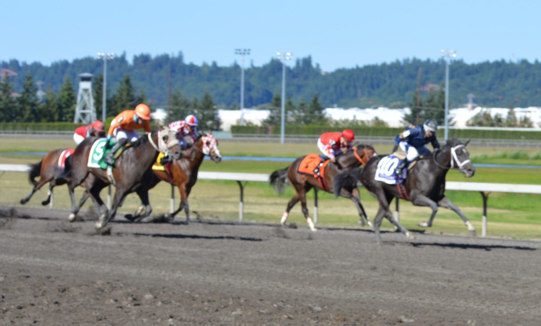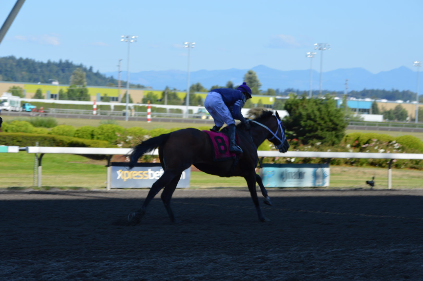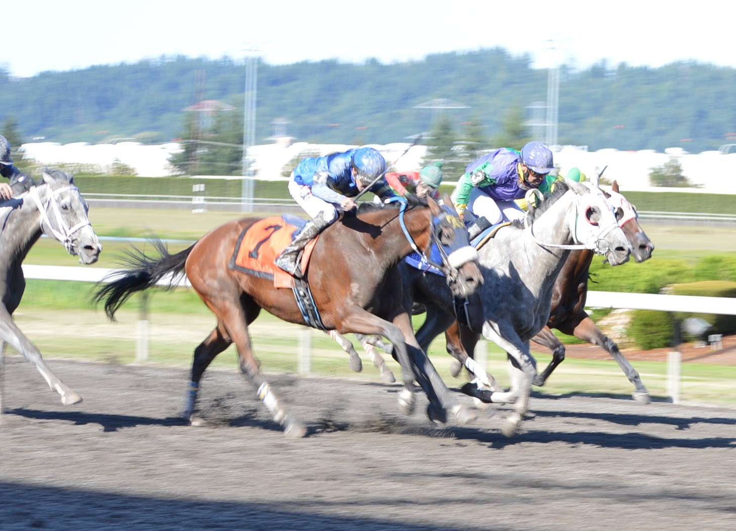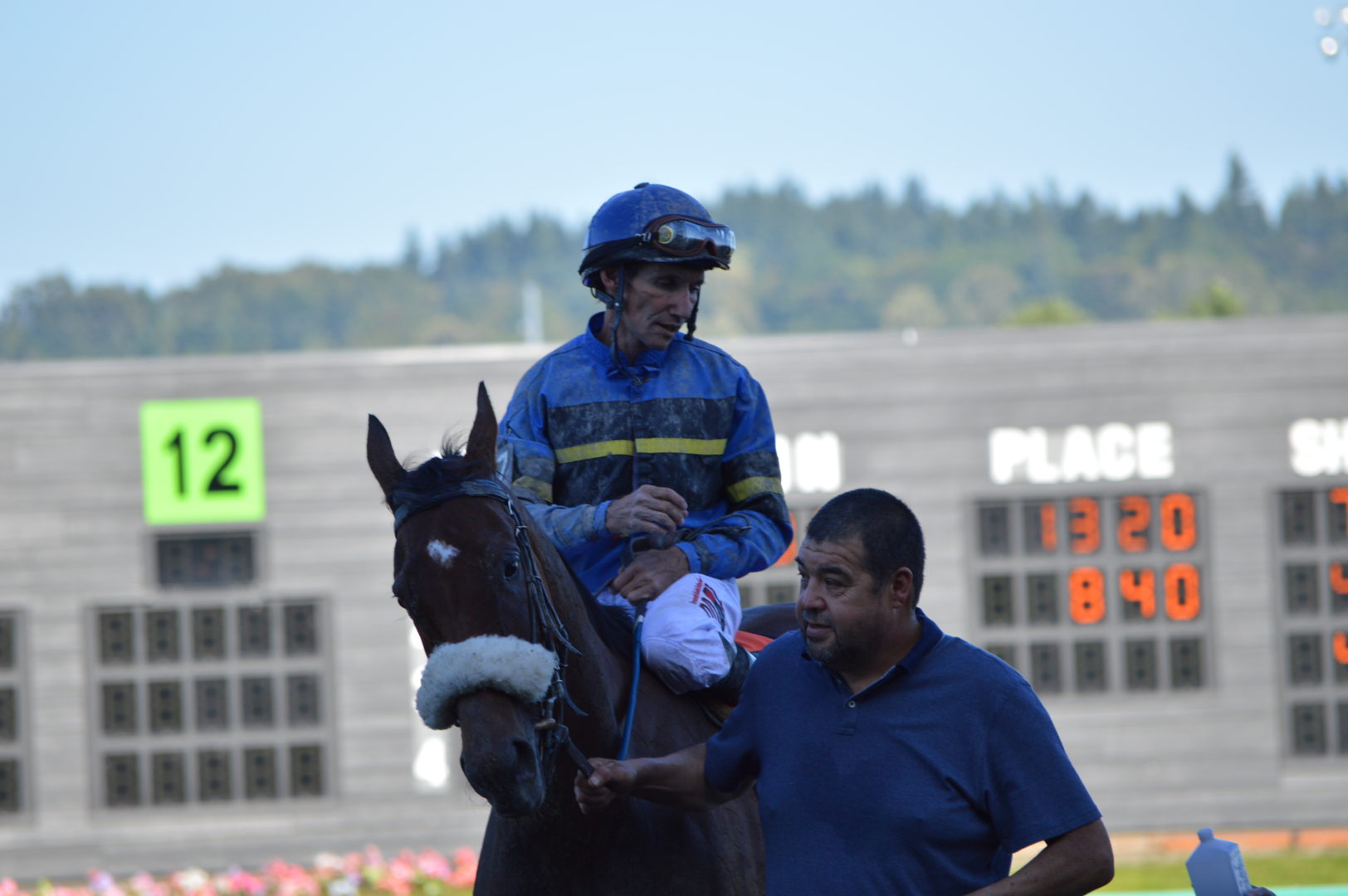(Auburn, WA) The Mt Rainier Stakes was the crowning glory of this 4-Stakes race filled day. The 1 1/16 mile Mt Rainier was the final prep race for the August 11th Longacres Mile. The other 3 Stakes featured races for 2-year-old colts and geldings in the King County Express, 2-year-old fillies and mares competed in the Angie C and the girls also ran in the Boeing for 3-year-olds and up. Each race had a purse of $50,000 for a total of 200k in purse money distributed on the day. Below is a re-cap of each race with pictures and interviews from each race.
