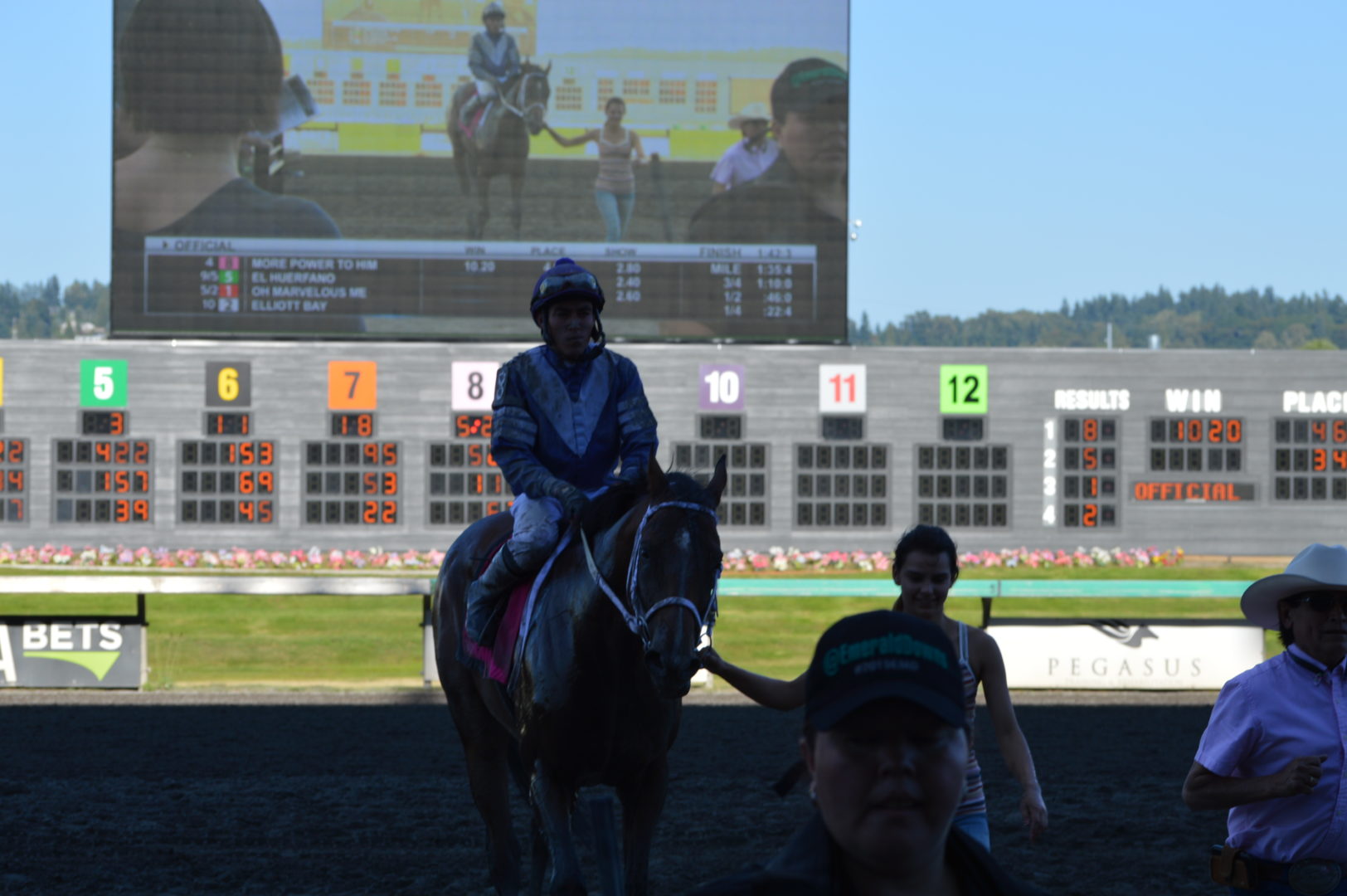 It was Orozco’s 2nd stakes win of the day and was quick to declare that he is ready to ride ‘Power in the Longacres Mile. ‘Power is owned by Brett Mason and trained by Faith Taylor. Taylor is based in Northern California and did not make the trip so Kay and Bryson Cooper saddled the winner for Taylor from their Homestretch Farms barn at Emerald Downs. ‘Power is a 5-year-old Cal bred by Slew’s Tiznow. During the Winner’s Circle interview Orozco looks like he will get his wish and get to ride ‘Power in the Mile as Mason told Joe Withee the next stop is the big race.