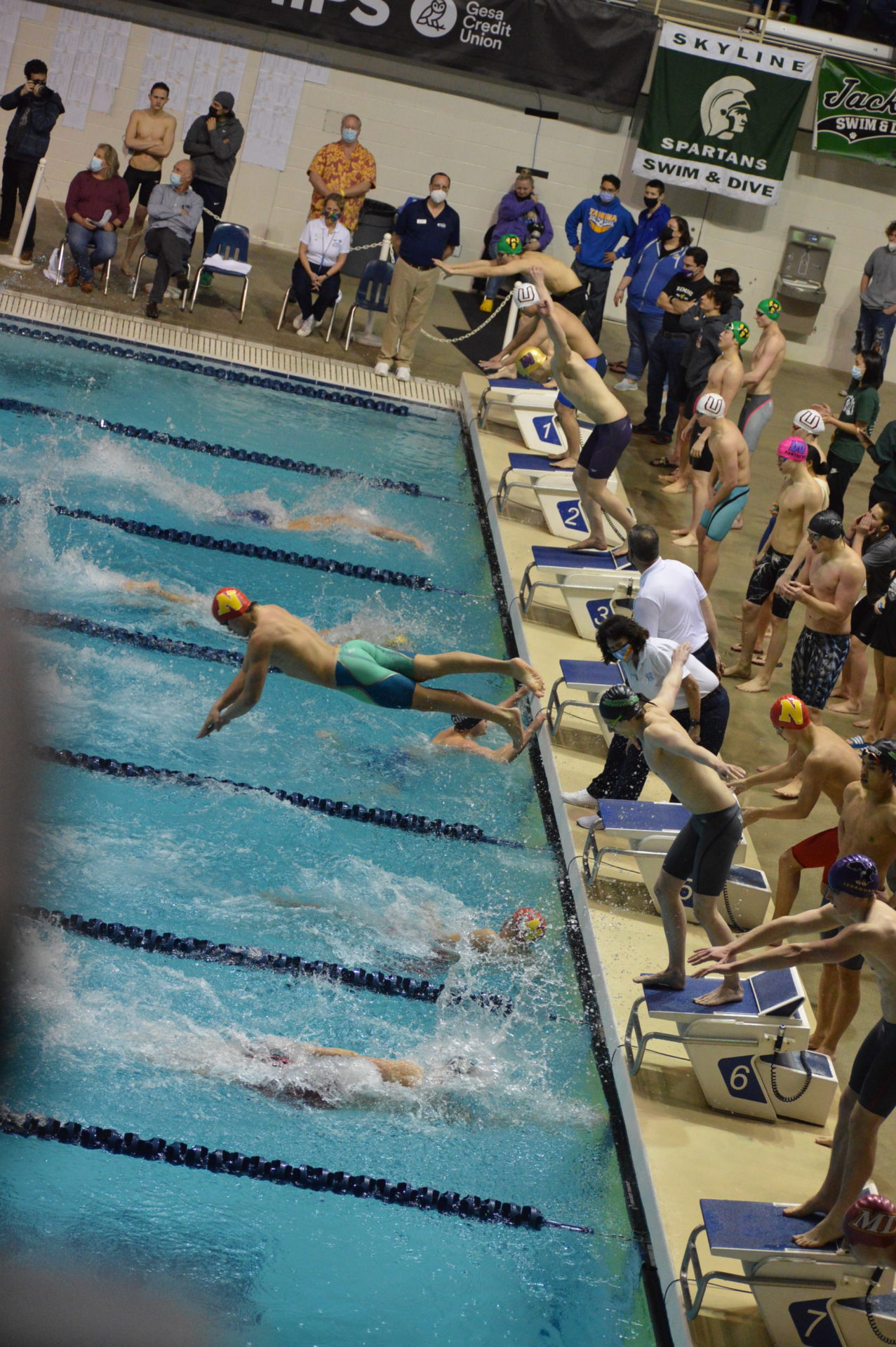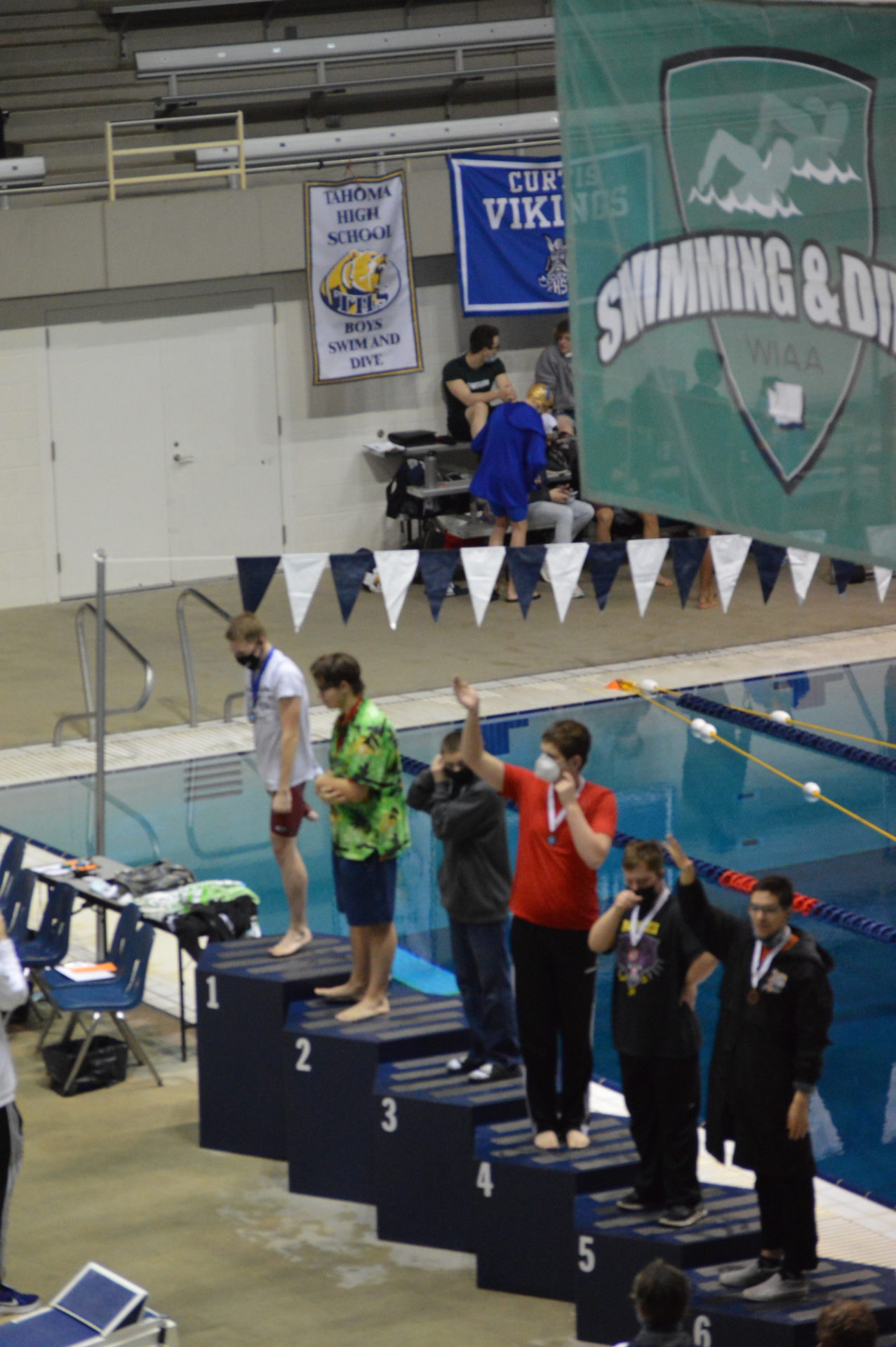 The Curtis Vikings edged Newport for the team title by just 10 points and won the Championship with some eye popping performances. The Vikings relay team in the 200 freestyle destroyed the meet record held by Kamiak and snapped the 2003 Mercer Island State mark of 1:23.84 with a blazing 1:23.23. This was an automatic All America standard. The Vikings sent Tolu Young out first followed by Sam Funchess, Eric Kwon and Patrick Keough was the anchor.