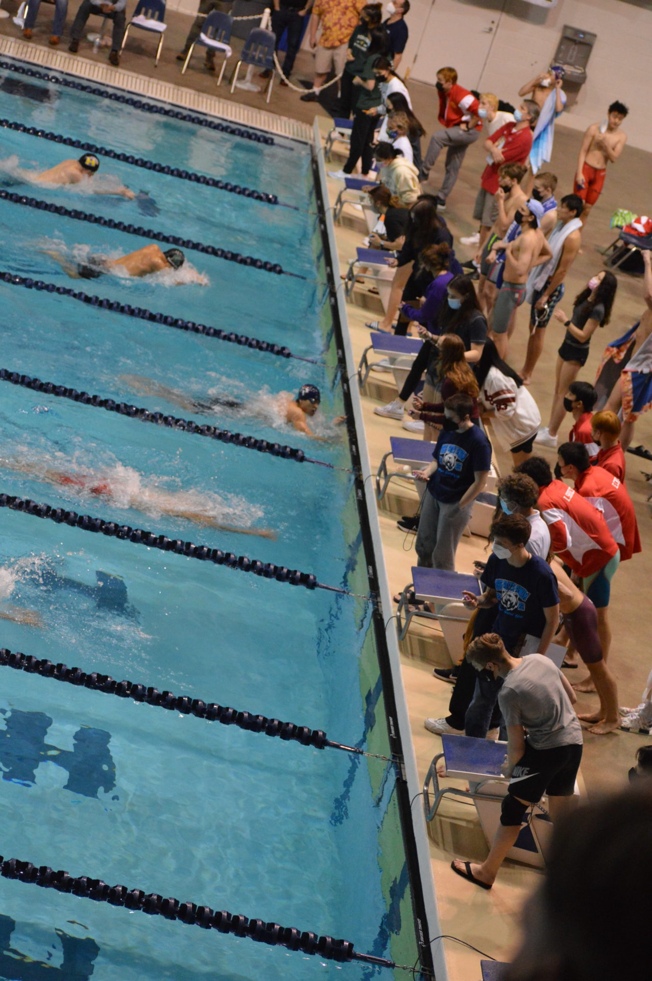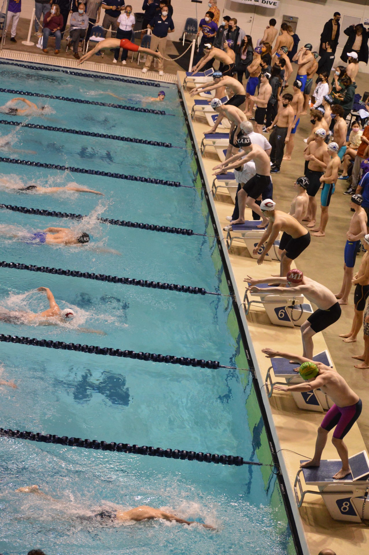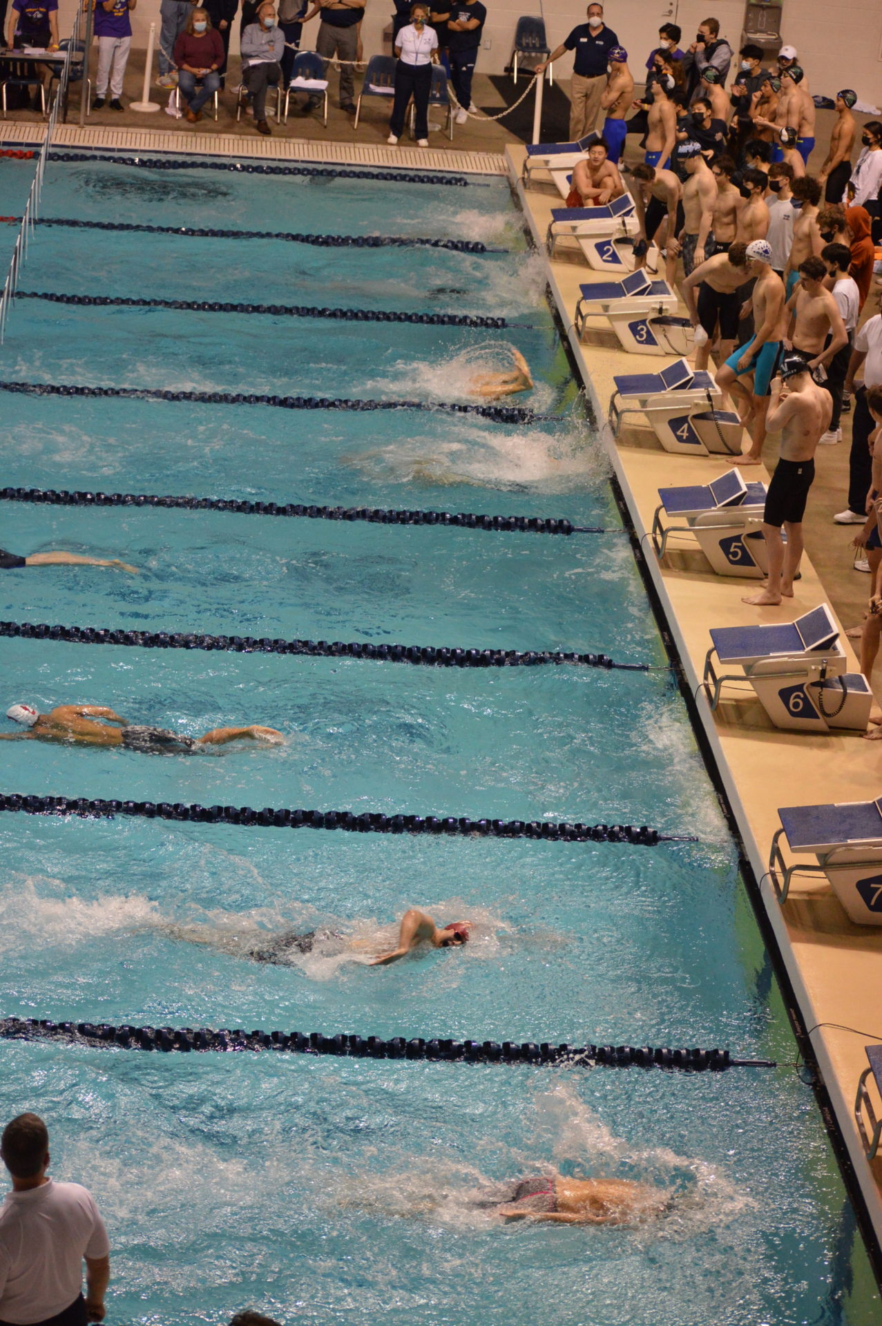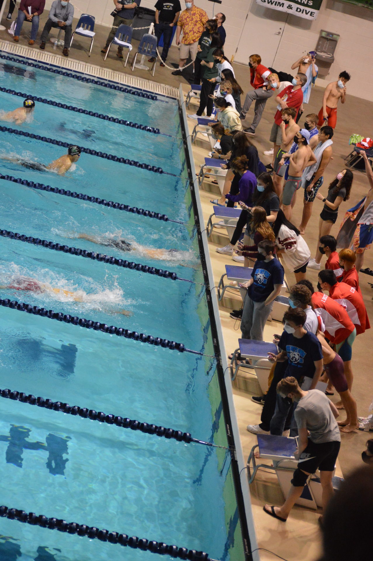 Newport got off to a fast start winning the opening event the 200 medley relay. Nathan Xu, Chrisitan Koh, Dylan Ling and Liam Campbell set a new meet record breaking the 1:33.55 mark set by Wenatchee in 2020 with a time of 1:33.06 which was an automatic All America time. Newport’s Liam, Campbell was edged out by Young of Curtis in the 50 free by just 3 hundreths of a second but his time of 20.49 was also an automatic All America. Campbell got his revenge on Young in the 100 free taking 1st and outfinishing Young by a tenth of a second 45.22 which was good for AA consideration. Other top 8 finishers for Newport were both the 200 and 400 free relay teams, both finishing 2nd. Evan Ping, Christian Koh and Dylan Ling also had top 8 finishes.
