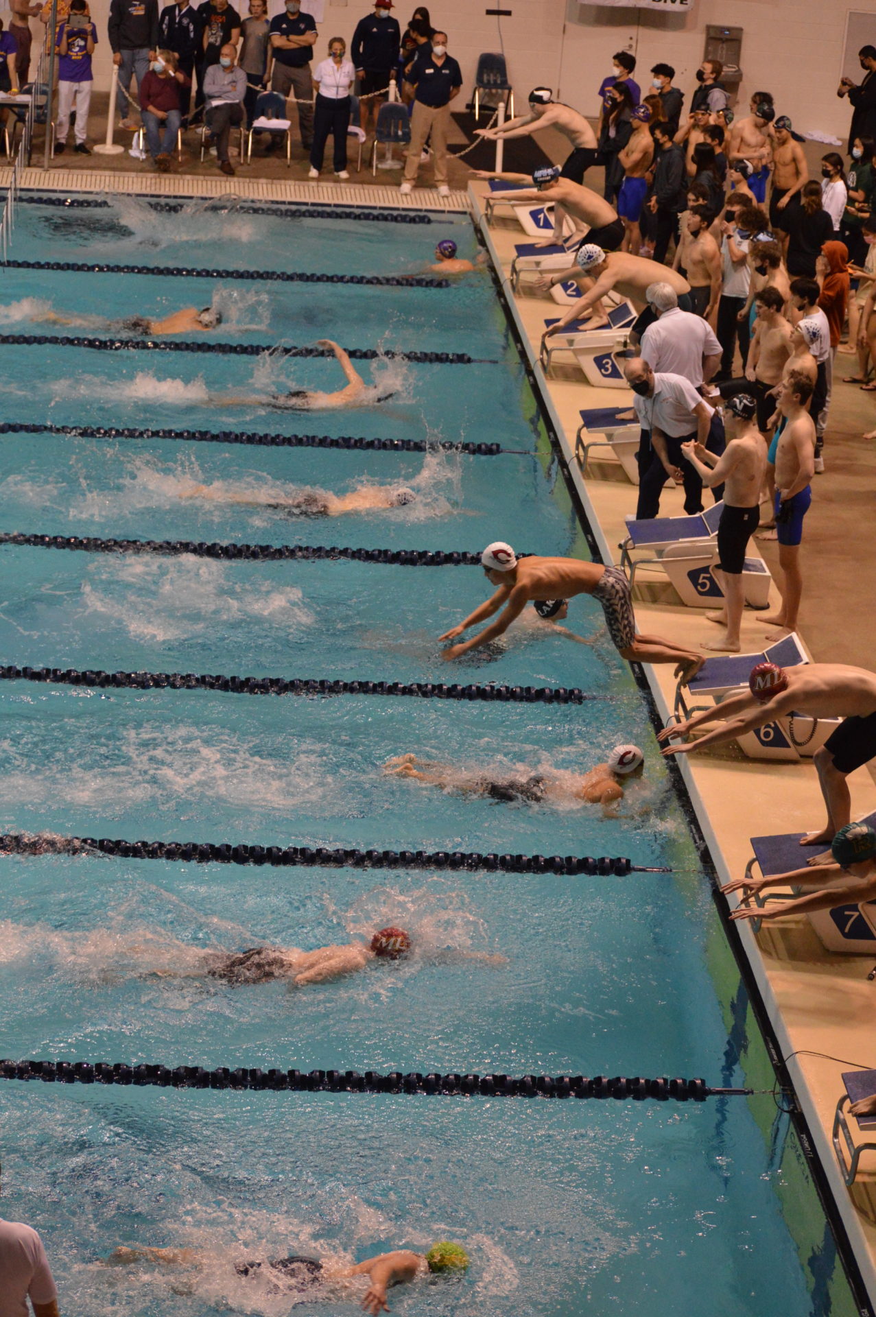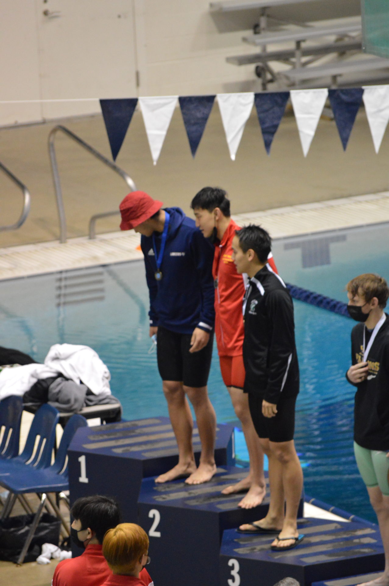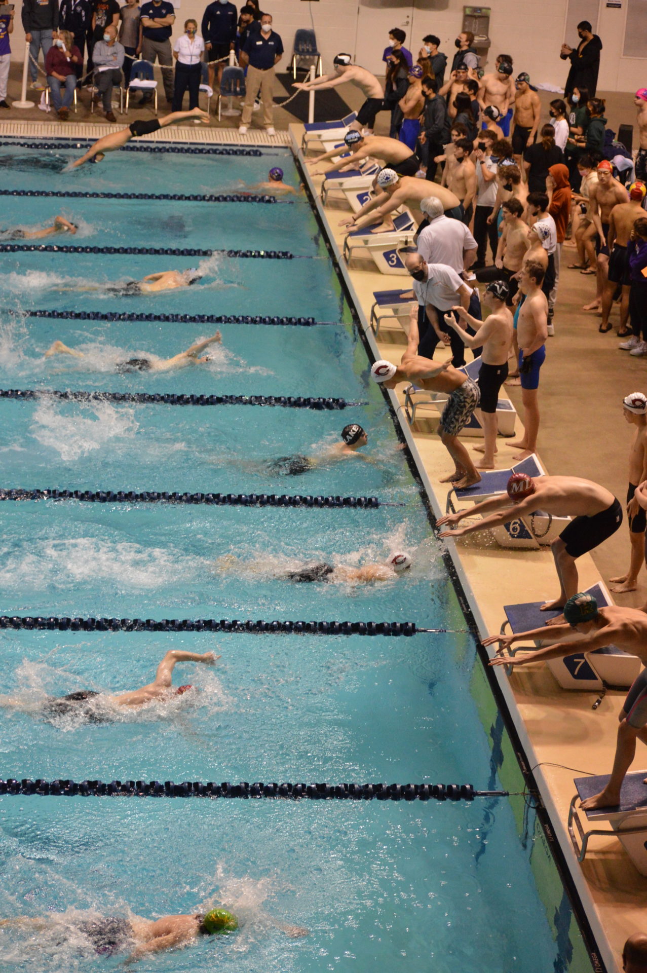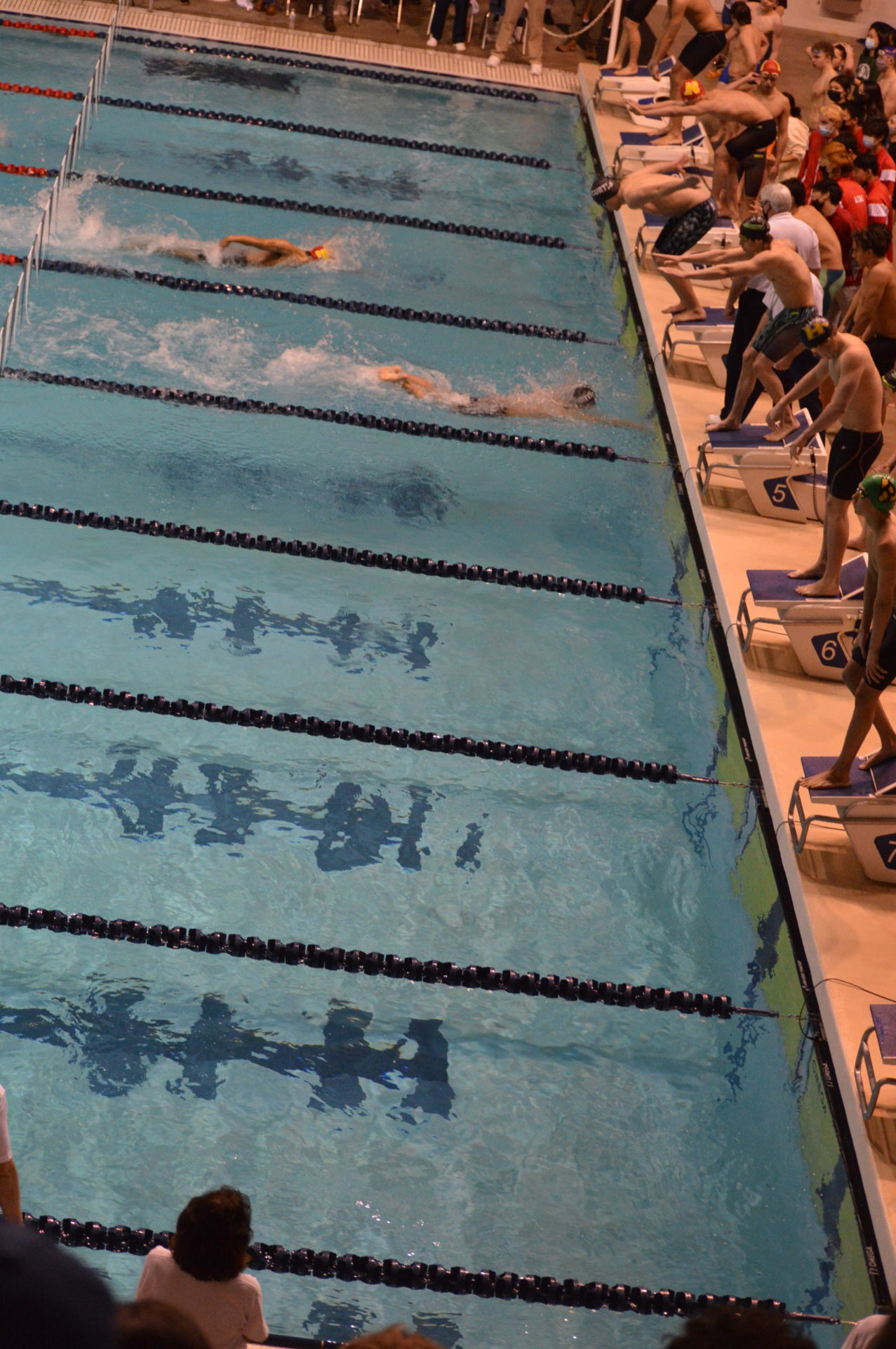 Newport got off to a fast start winning the opening event the 200 medley relay. Nathan Xu, Chrisitan Koh, Dylan Ling and Liam Campbell set a new meet record breaking the 1:33.55 mark set by Wenatchee in 2020 with a time of 1:33.06 which was an automatic All America time. Newport’s Liam, Campbell was edged out by Young of Curtis in the 50 free by just 3 hundreths of a second but his time of 20.49 was also an automatic All America. Campbell got his revenge on Young in the 100 free taking 1st and outfinishing Young by a tenth of a second 45.22 which was good for AA consideration. Other top 8 finishers for Newport were both the 200 and 400 free relay teams, both finishing 2nd. Evan Ping, Christian Koh and Dylan Ling also had top 8 finishes.