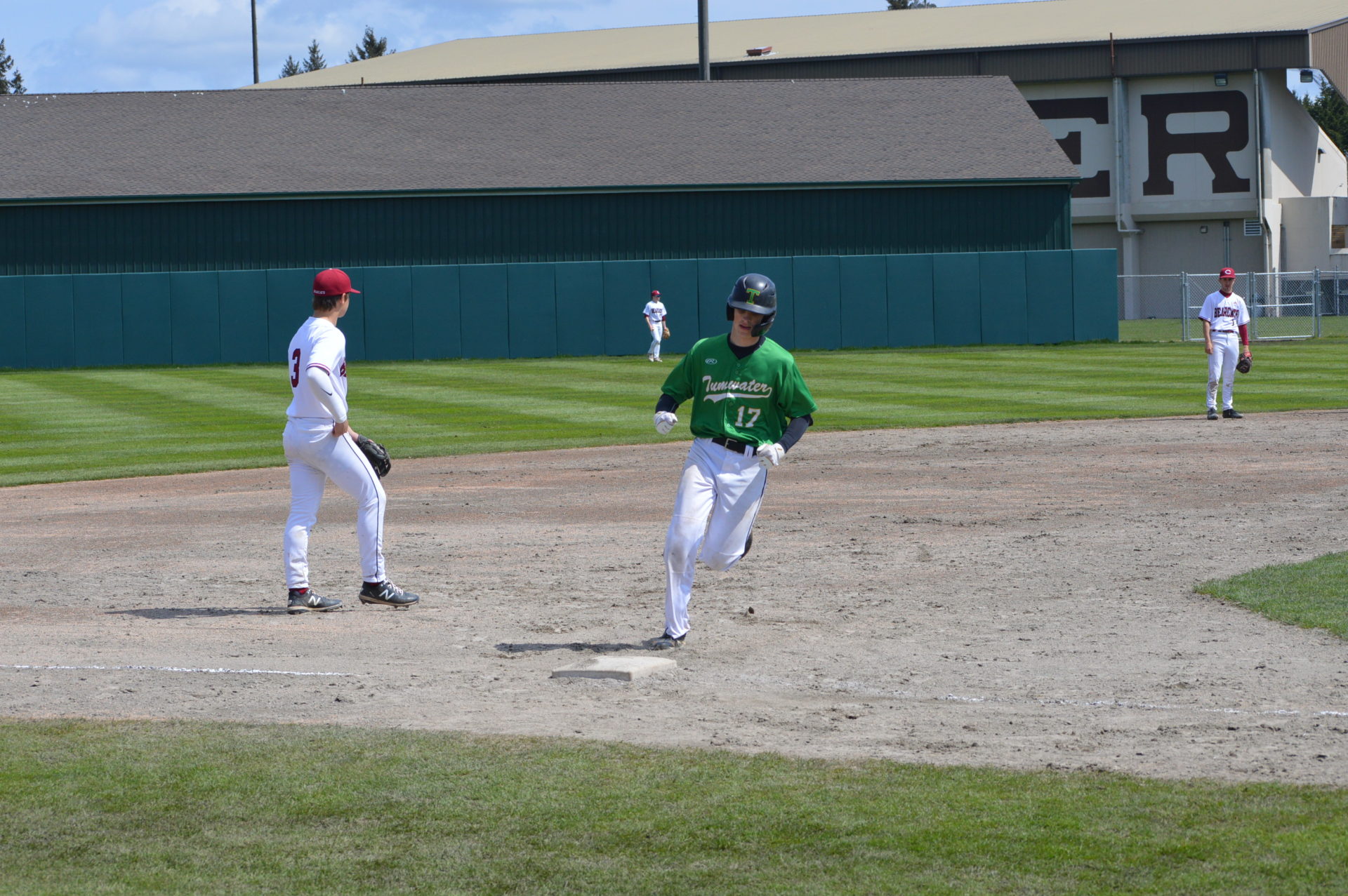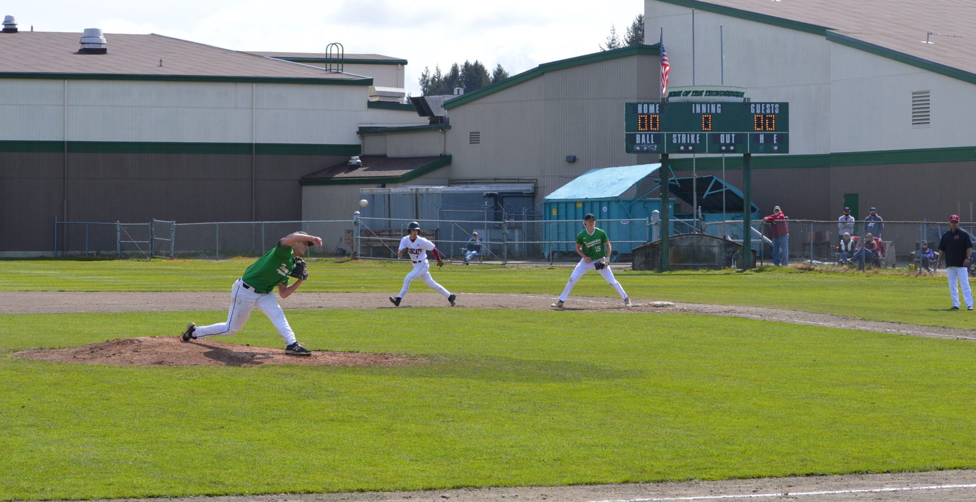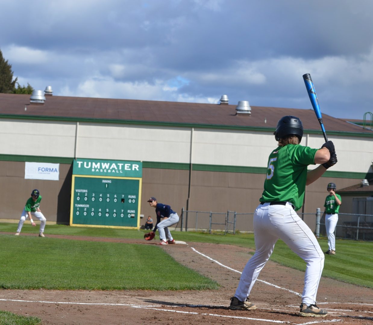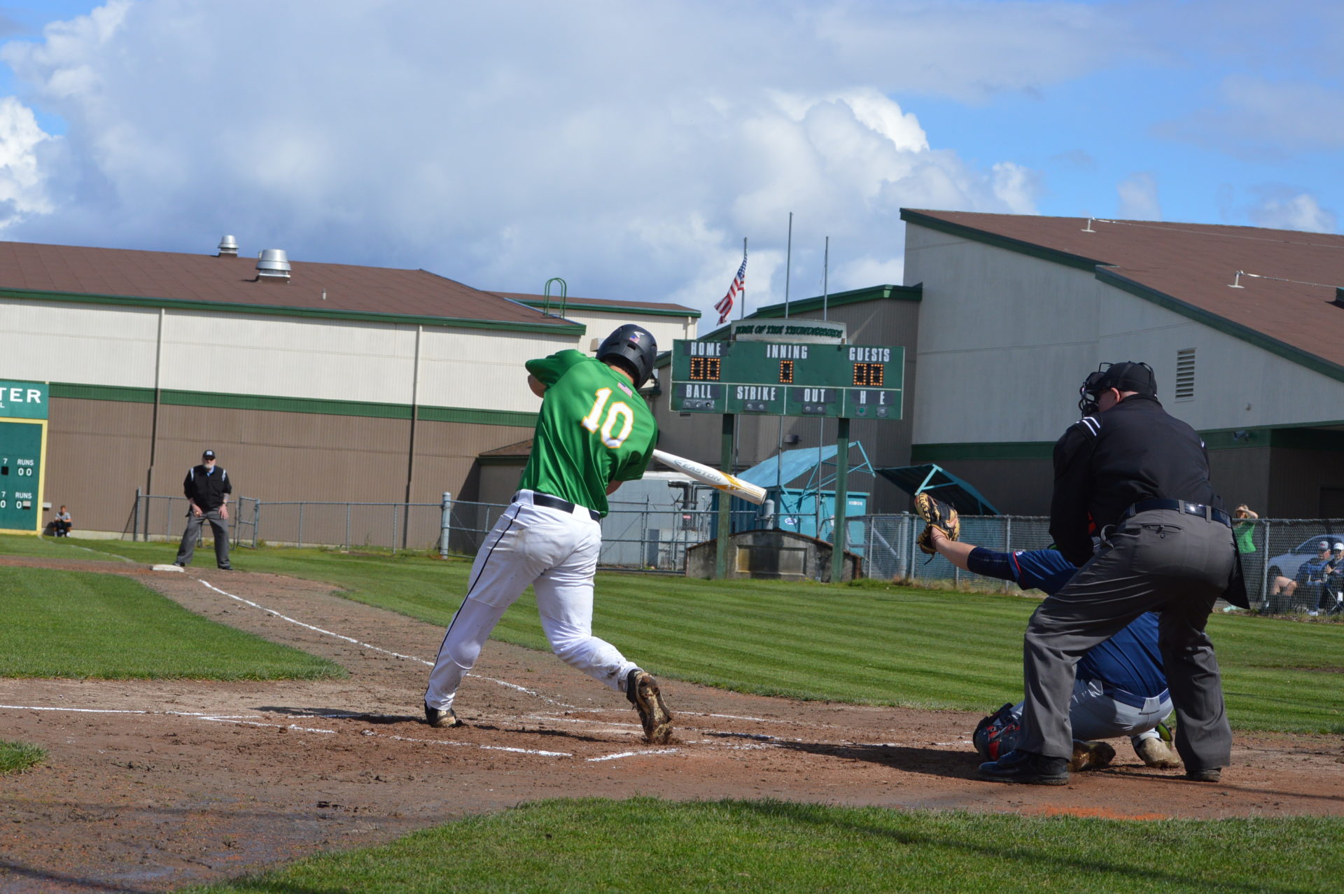 So it was worked out that Tumwater would host Black Hills at 3p and then Aberdeen would be the home team playing Black Hills in the following game and Tumwater agreed to let the two teams to play on their field. With the shortage of umpires and just to try and get in the game which was scheduled to start at 6p there wasn’t time to shift to another field and the T-Birds were happy to accomodate them. Tumwater Head Coach Lyle Overbay told ESN he’d hope other schools would do the same for them if the need arises so it was a no-brainer.