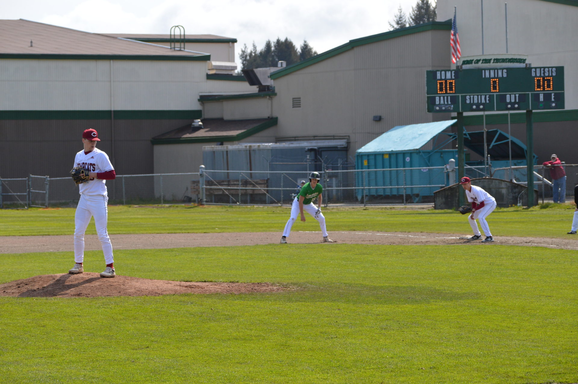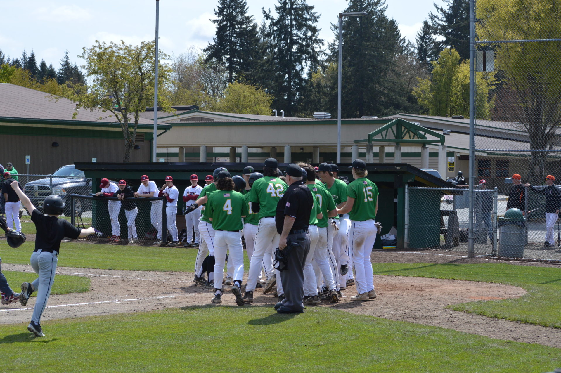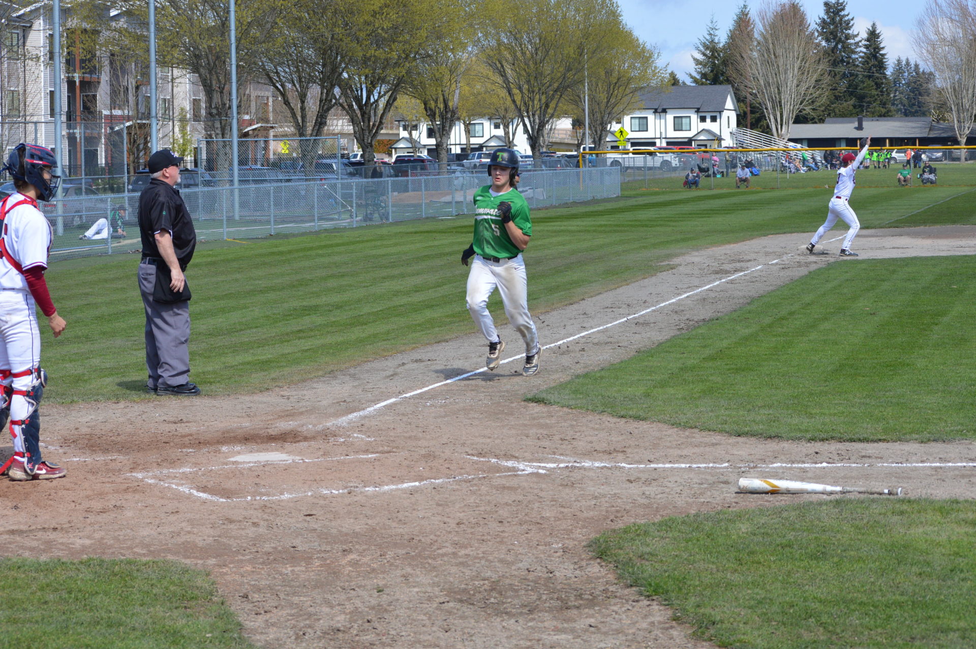 So it was worked out that Tumwater would host Black Hills at 3p and then Aberdeen would be the home team playing Black Hills in the following game and Tumwater agreed to let the two teams to play on their field. With the shortage of umpires and just to try and get in the game which was scheduled to start at 6p there wasn’t time to shift to another field and the T-Birds were happy to accomodate them. Tumwater Head Coach Lyle Overbay told ESN he’d hope other schools would do the same for them if the need arises so it was a no-brainer.
