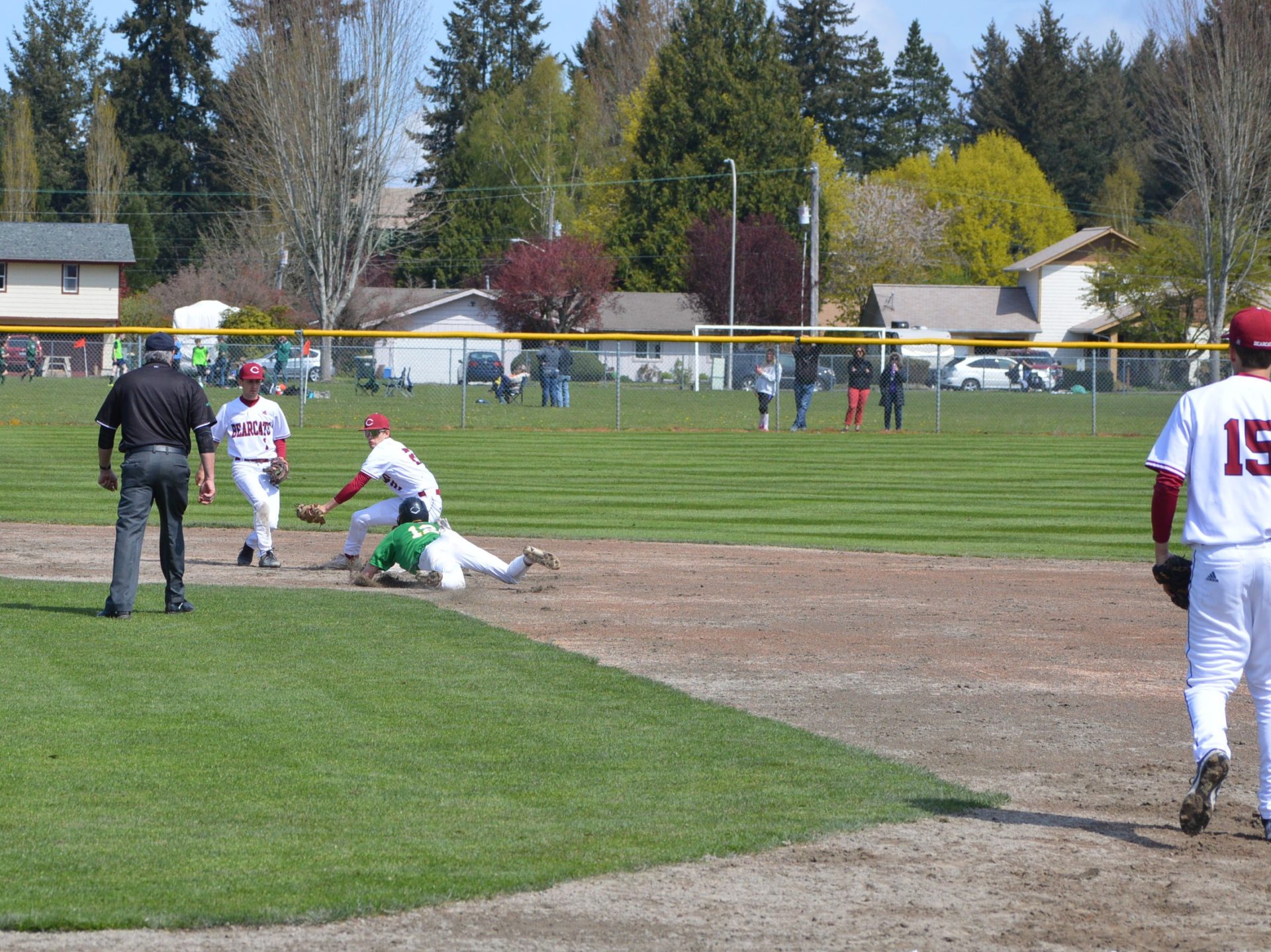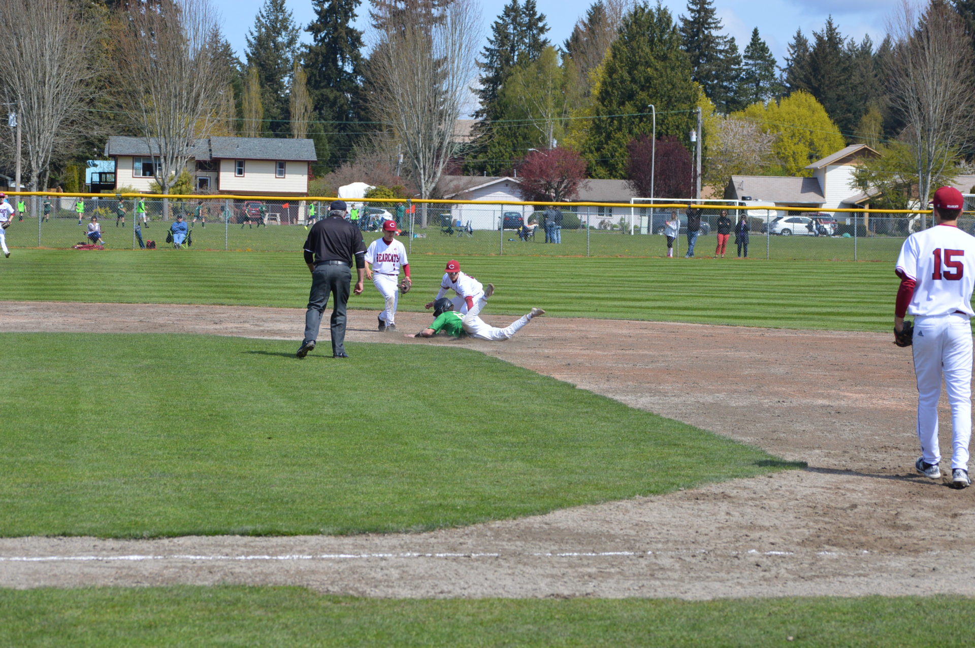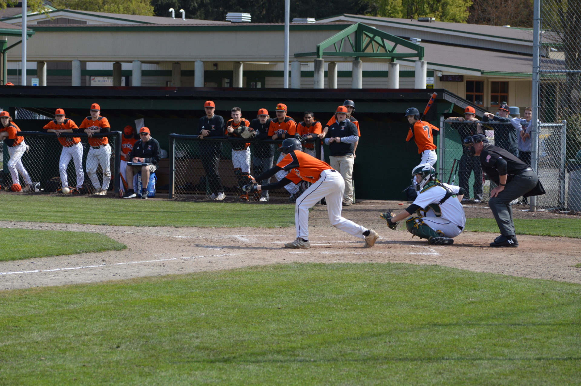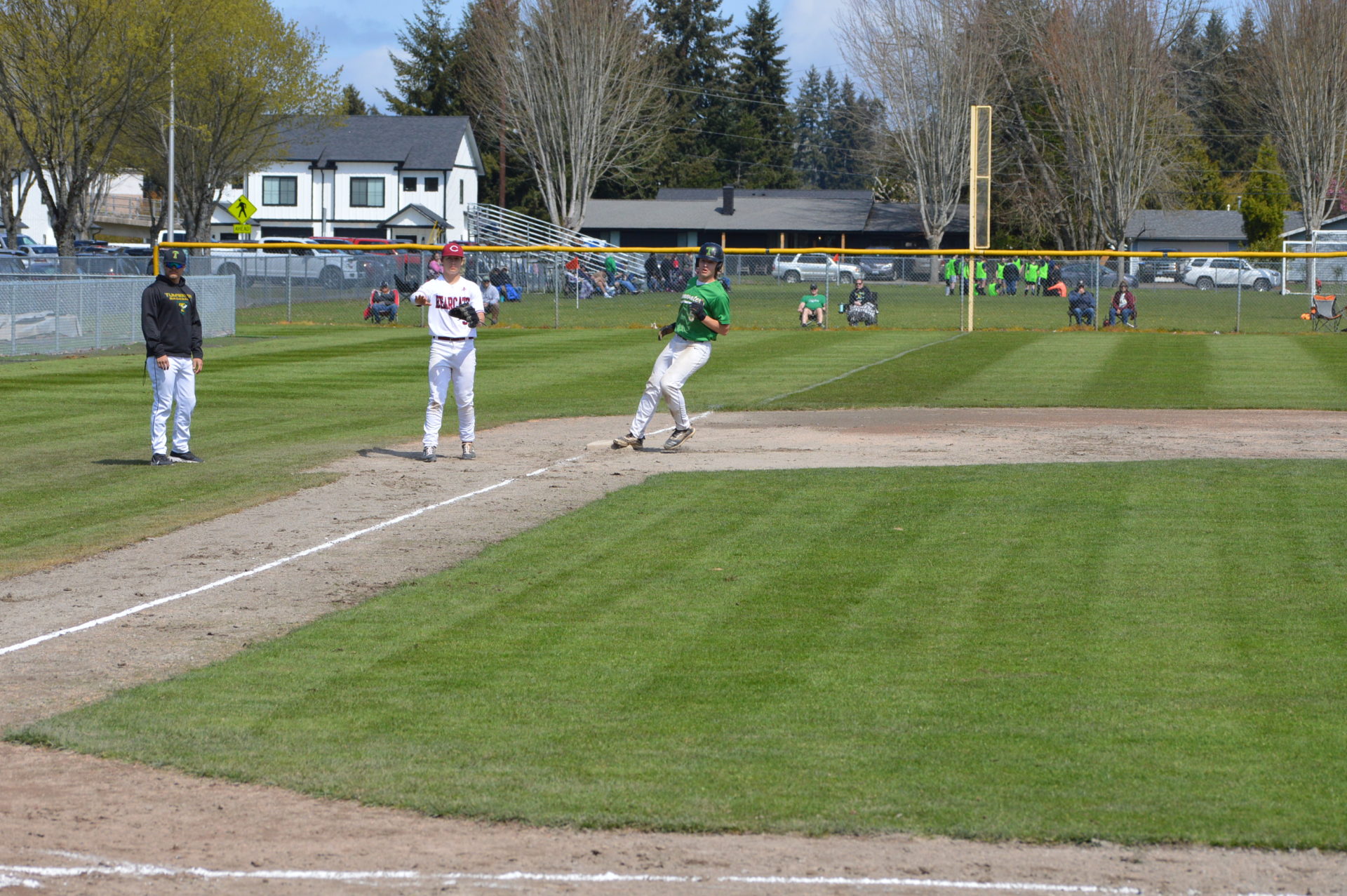 So it was worked out that Tumwater would host Black Hills at 3p and then Aberdeen would be the home team playing Black Hills in the following game and Tumwater agreed to let the two teams to play on their field. With the shortage of umpires and just to try and get in the game which was scheduled to start at 6p there wasn’t time to shift to another field and the T-Birds were happy to accomodate them. Tumwater Head Coach Lyle Overbay told ESN he’d hope other schools would do the same for them if the need arises so it was a no-brainer.