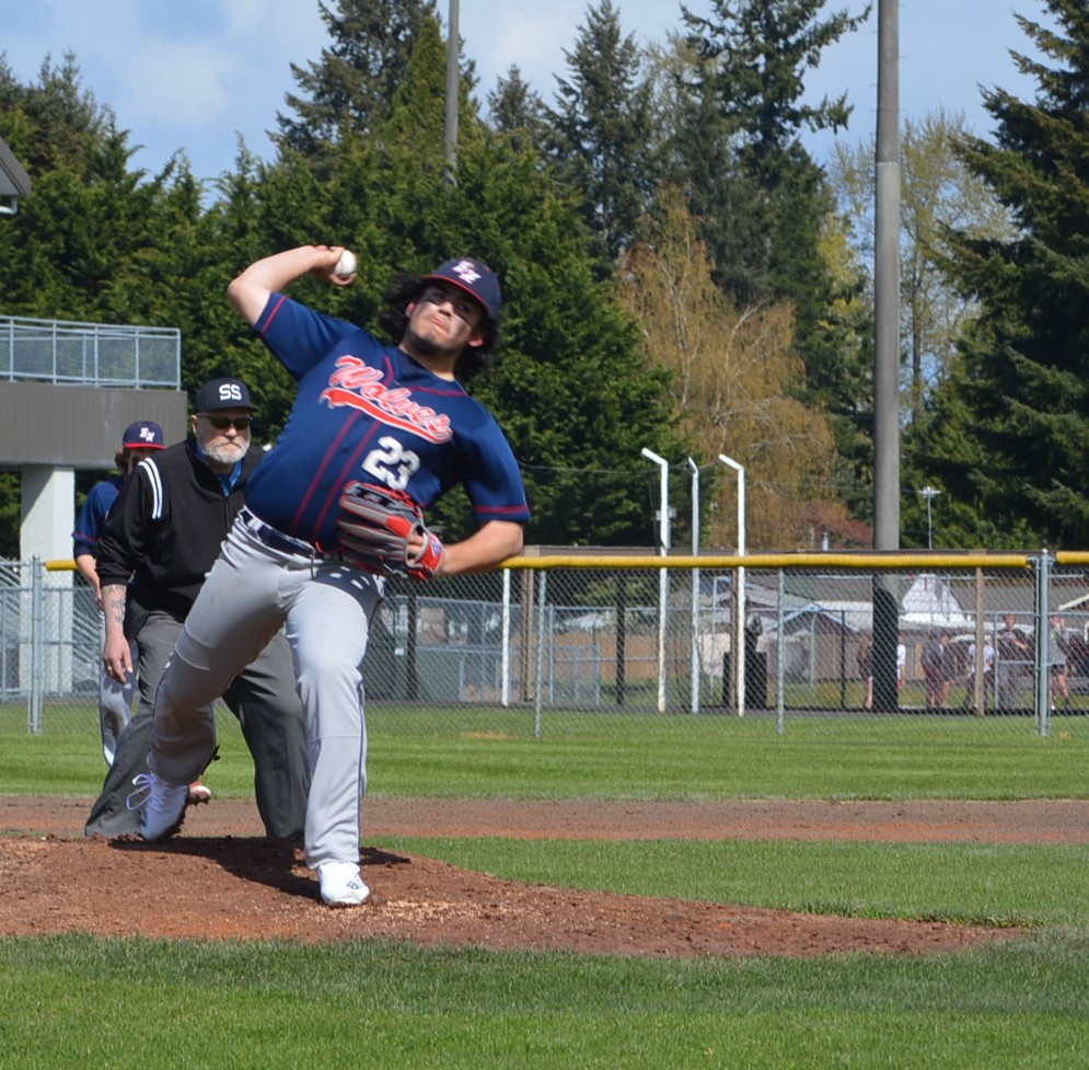 Hansen had dominated the Wolves in their 1st meeting striking out a school record 17. He finished with 9 k’s in this one but gave up 4 walks and 3 hits and was done after 5 with a 4-1 lead. Ayden Ramsay came in to relieve but only lasted 2 batters. Parker Termini singled to lead off and then Asher Shorthand demolished a pitch over the right-center fence for a 2-run dinger and just like that it was a 1 run game. Alex Overbay came in to relieve and retired the next 3.