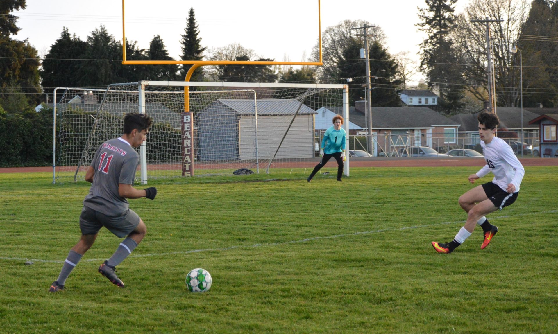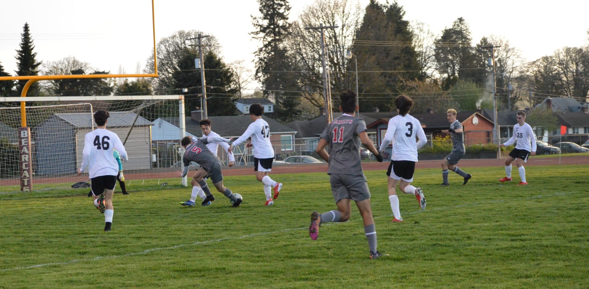 (Chehalis, WA) The WF West Bearcats finally beat the Tumwater Thunderbirds. After the team swarmed their keeper Hayden Sierra after he knocked down a PK shot in the 7th round of a shoot-out to secure a 1-0 win over the undefeated T-Birds the most common word heard from the players was “FINALLY”! Seniors yelling out loud this was our #1 goal to beat this team which they hadn’t done over the past 4 years.