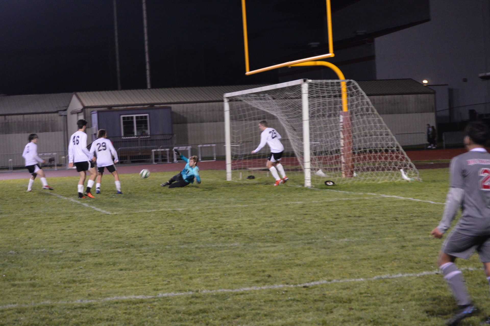 After 80 minutes of that kind of play it went to 2 5-minute sudden death overtime periods which also left the score 0-0 forcing the shoot-out. 5 rounds of 1-on-1 play between a sharpshooter and only the keepers. The score was tied 2-2 after 2 rounds. In the 3rd Tumwater keeper Lukas Stuart came up with a big stop to turn the tides in the T-Birds favor. They would not hold that advantage for long as Bearcat goalie Hayden Sciera would also stop the Tumwater shot to keep things even at 2-2 into the 4th round. Both sides hit their 4th shot to send things into the 5th round even at 3-3.