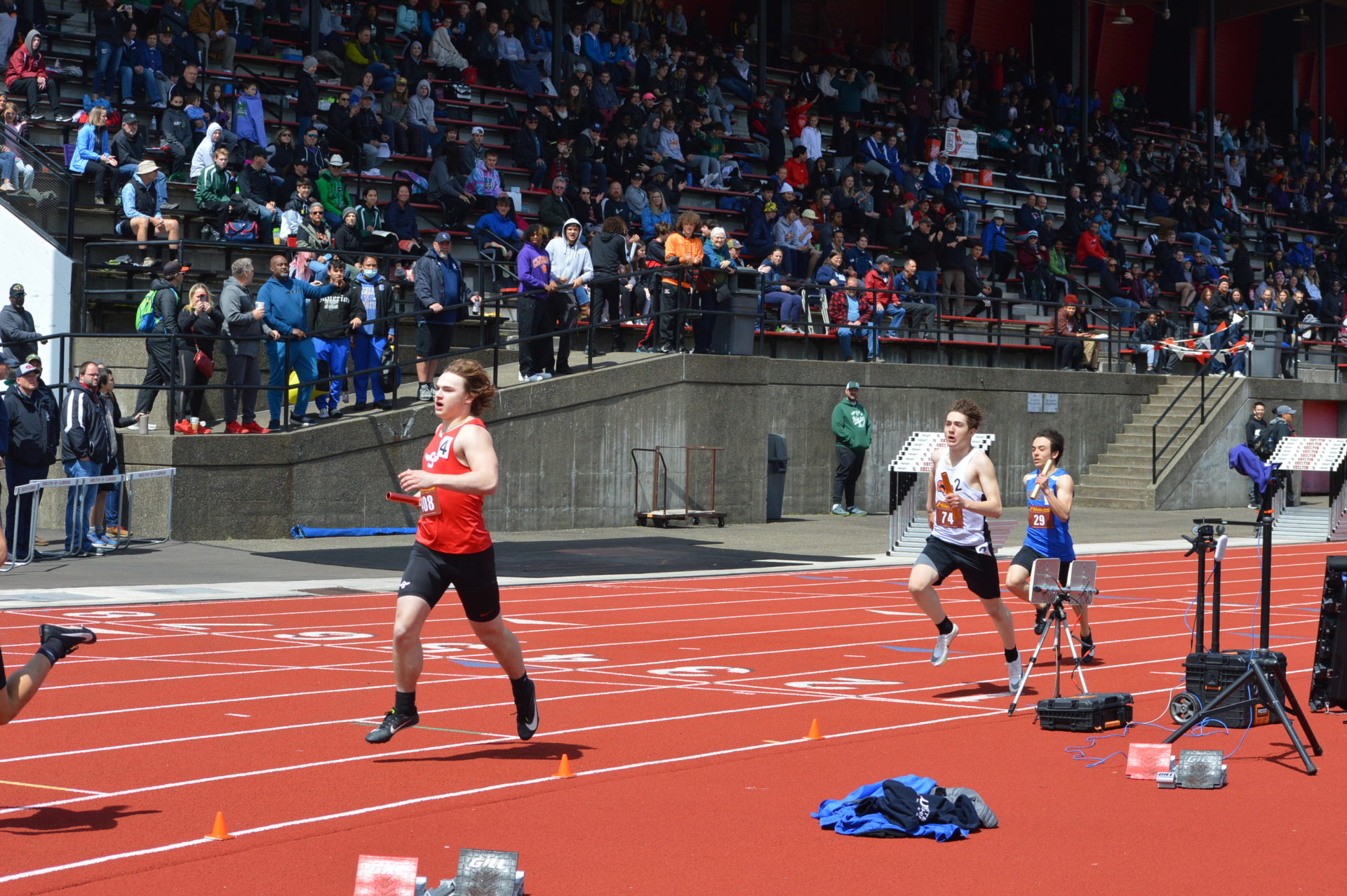 Peninsula’s Nathan Kuhnau set a PR and moved into 7th fastest in the state for the season. Kuhnau posted the only sub 40-second time of 39.91. Tumwater’s Seth Weller also set a PR with a 40.08 final just missing the 39-second mark. His time is will move him into the top 10 for the state at #8. Quincy’s Jalen Spence took 3rd and Cole Logan of Woodland was 4th.