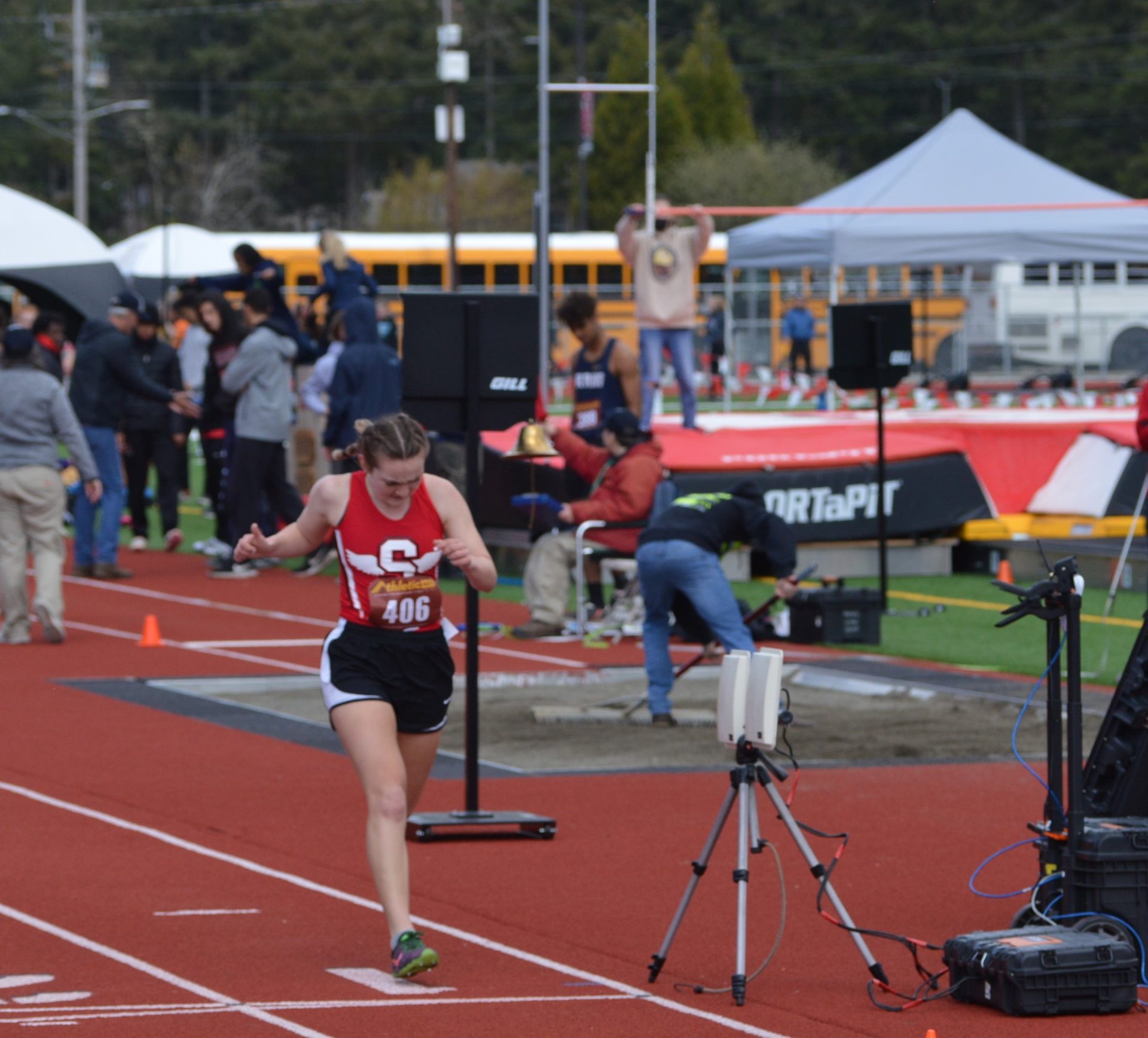 Olympia completed the sweep of the finale’s with the girls 4×400 team winning by 3 seconds with a time of 4:06.62. Josie Hutt, Katelyn Rigg, Samantha Christy and Ava Wolin were super consistent and too much for 2nd place Sequim to overcome. Their time also put them on the board for one of the state’s best times in the 5th position. Sequim’s team of Eve Mavy, Kaitlyn Bloomenrader, Emily Carlier and Riley Pyeatt and their time of 4:09.59 was 1/100th of a second better than the Burlington-Edison team and puts Sequim in as the 10th best time in the state. Tumwater would finish 3rd and Central Kitsap took 4th.