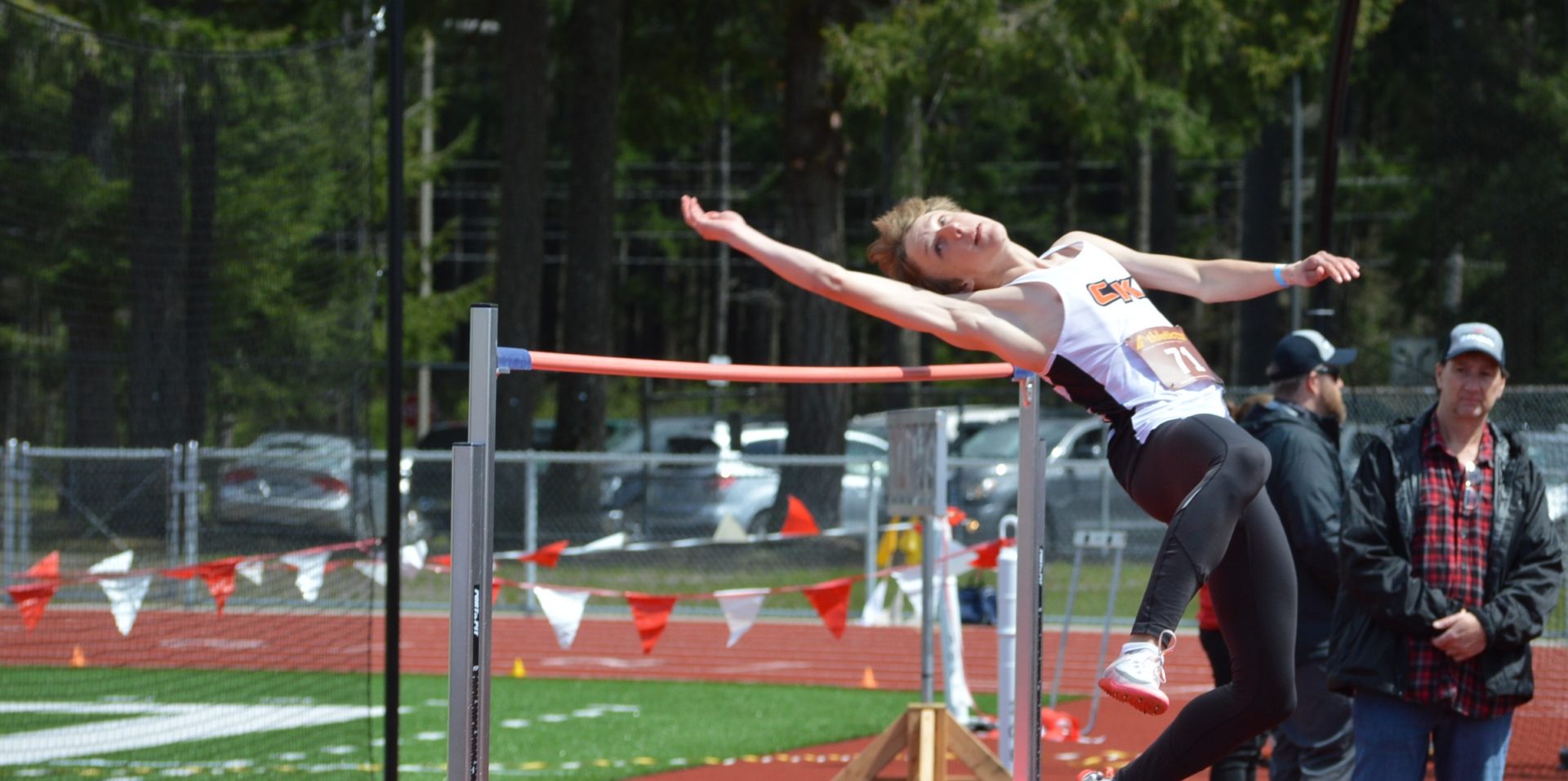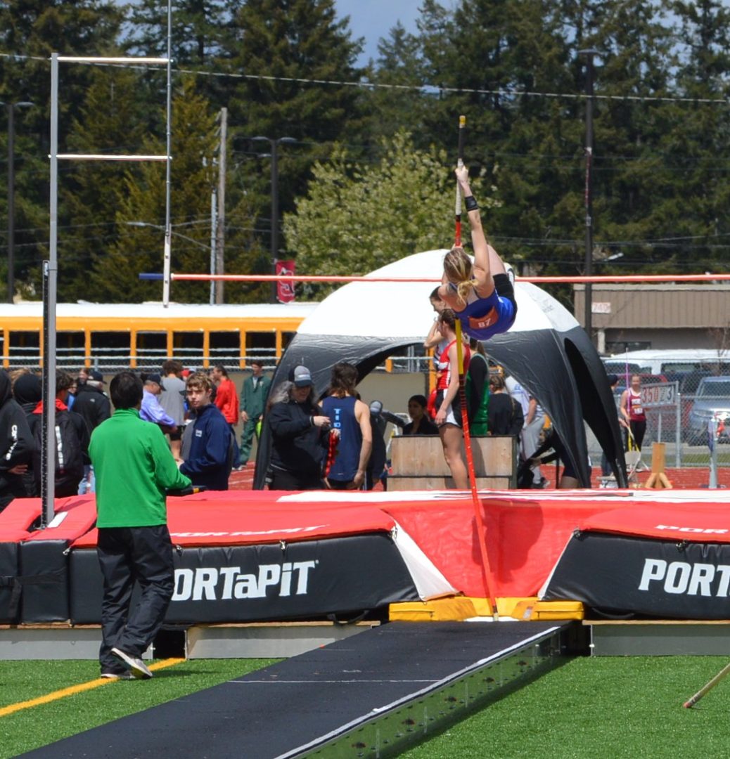 Lauren McGough from Willapa Valley soared over the competition with a PR 11-feet to win by a foot over her competition and just missed getting into the top 10 in the state by 3-inches. Olympia’s Claire Lee was a clear 2nd at 10-feet while Kalama’s Alena Ross and Central Kitsap’s Cara Schweitzer each hit 9-06 but Ross gets 3rd on fewer attempts.