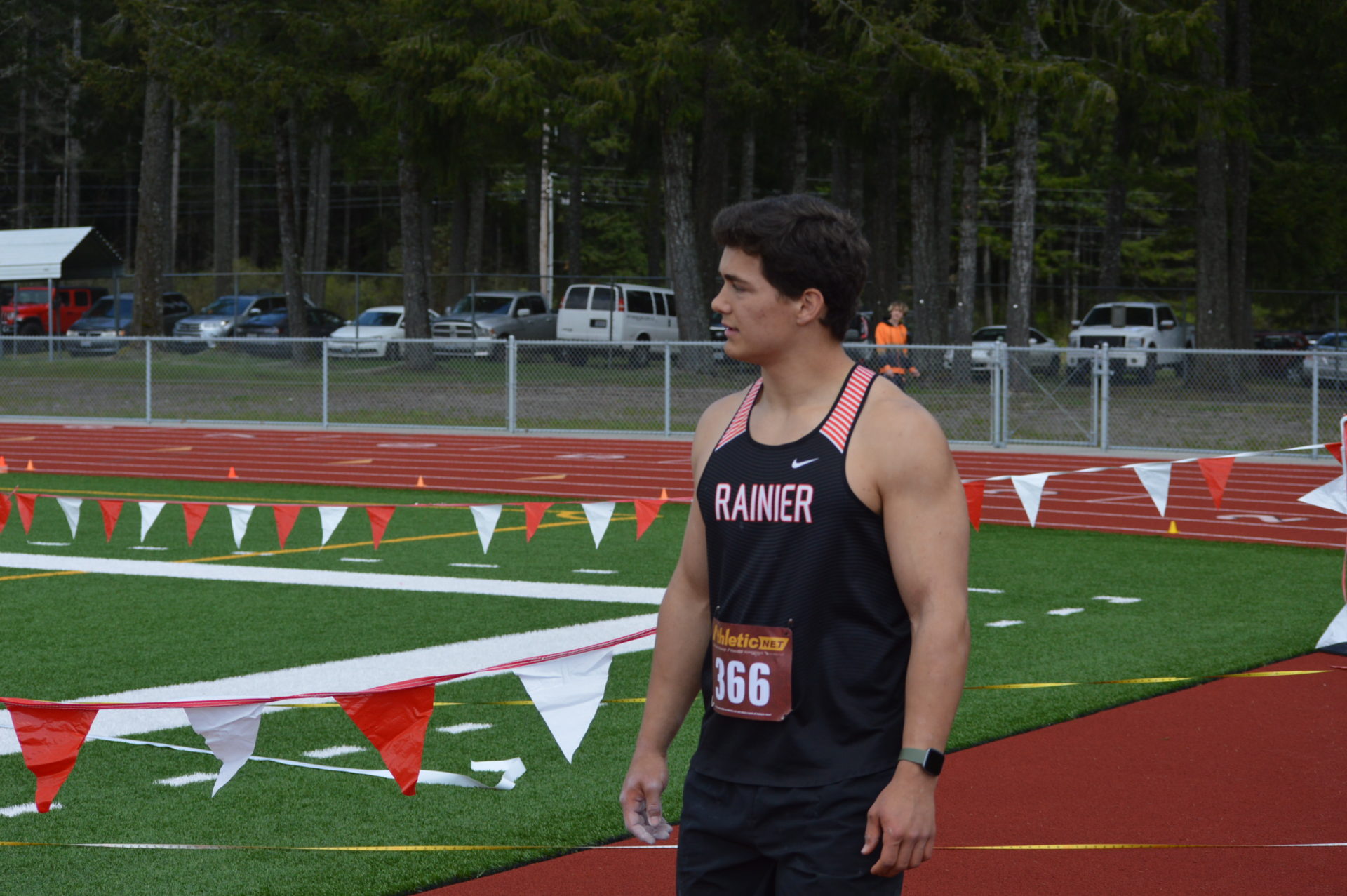 All eyes were on Rainier’s Jeremiah Nubbe who came in fresh off setting a new State record Discus throw of more than 207-feet. He led the nation by a foot in the discus with his qualifying throw and extended his lead as tops in the United States with his State record toss just 2 days prior to the Shelton Invitational. The Invite’s record was 183-06 set by Jason Baskett from Mead High School in 1989. Nubbe beat the meet mark on his 1st throw of 184′ and then extended it to 188-11 but could not top the 190 mark. He shattered the record by more than 5 feet but was not pleased with his effort The race was on for 2nd and Aberdeen’s Tyler Bates was all alone for the silver with a throw of 146-07 12 feet better than 3rd place Mario Boxley of Shelton.