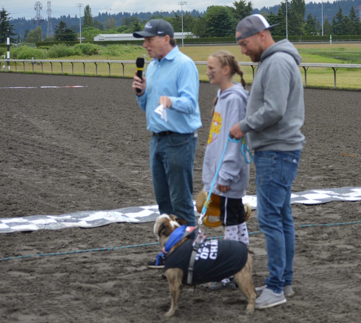 This opened the door for Benji who just got the nose down in front of Bella to win the big trophy. Benji is from Seattle and owned by Rachel Cockburn. Miranda and Howard Gibson’s Bella from Enumclaw just missed having to settle for 2nd. Momo Miraculous ran a solid 3rd for owners Kristin and Brian Botuchis of Everett and completing the superfecta was Buster from Seattle for owner Keven So.