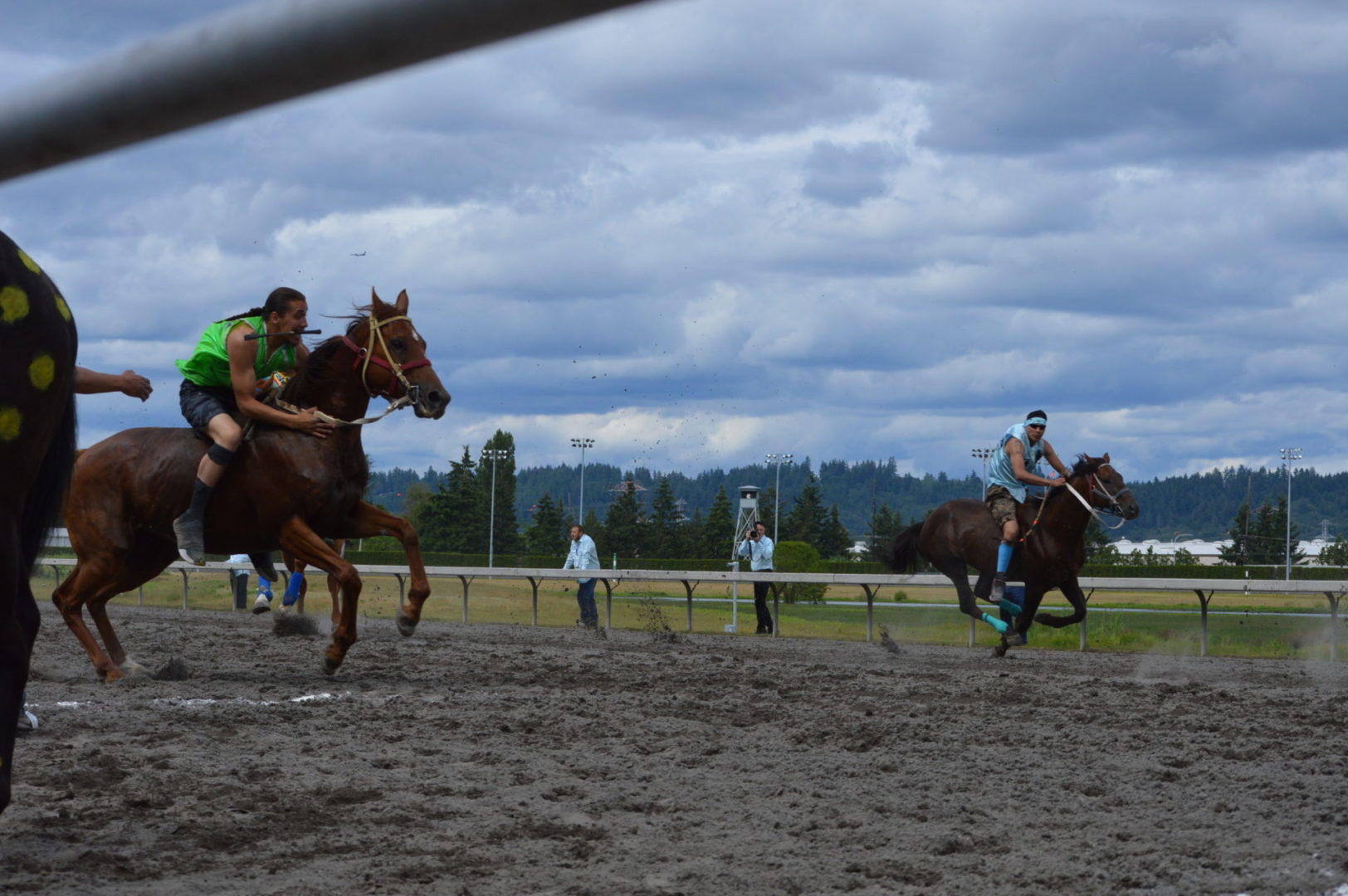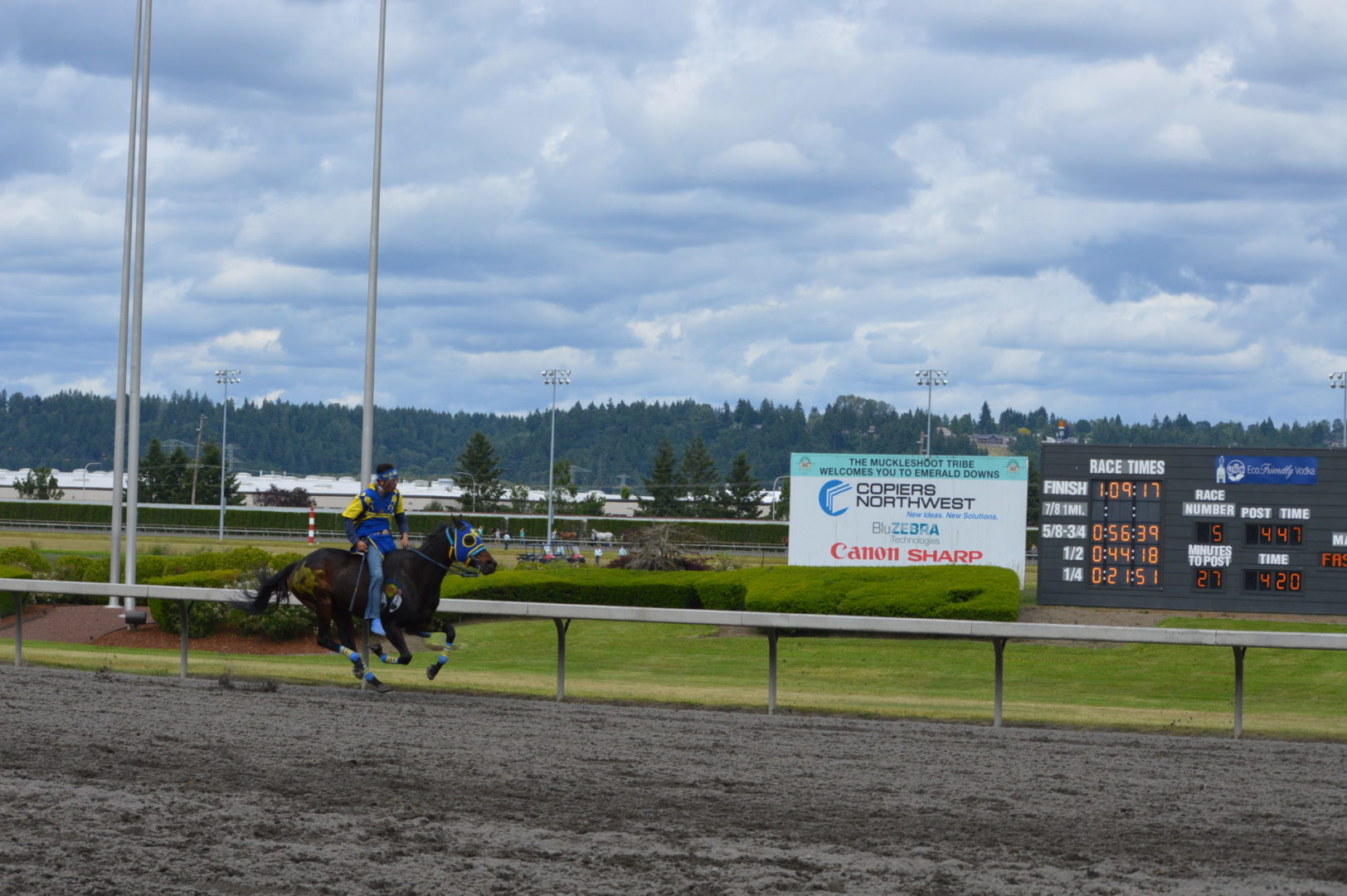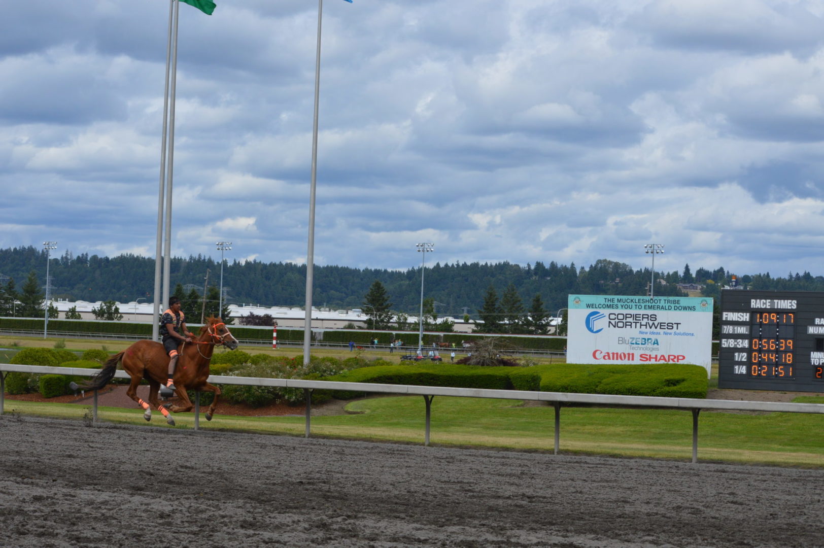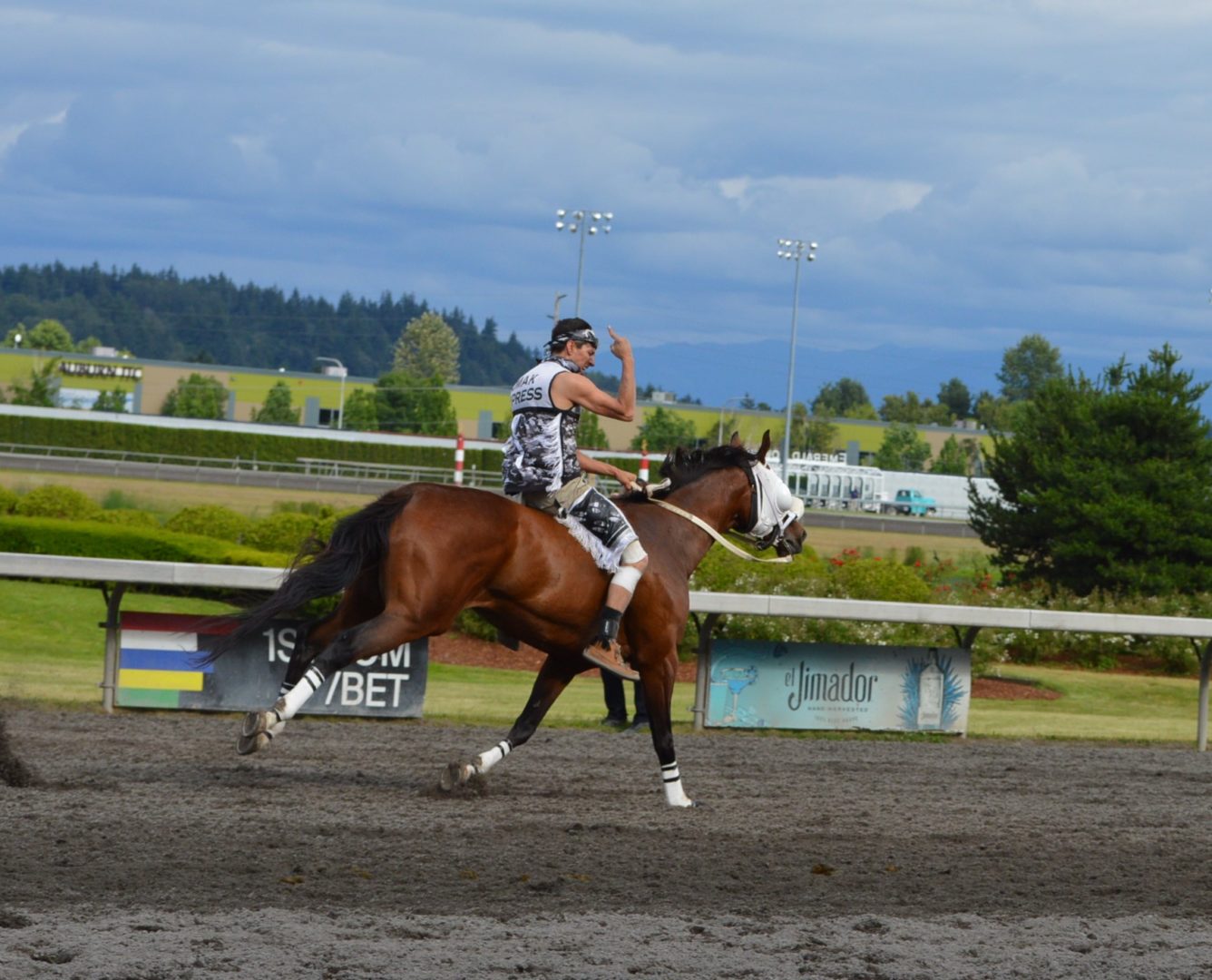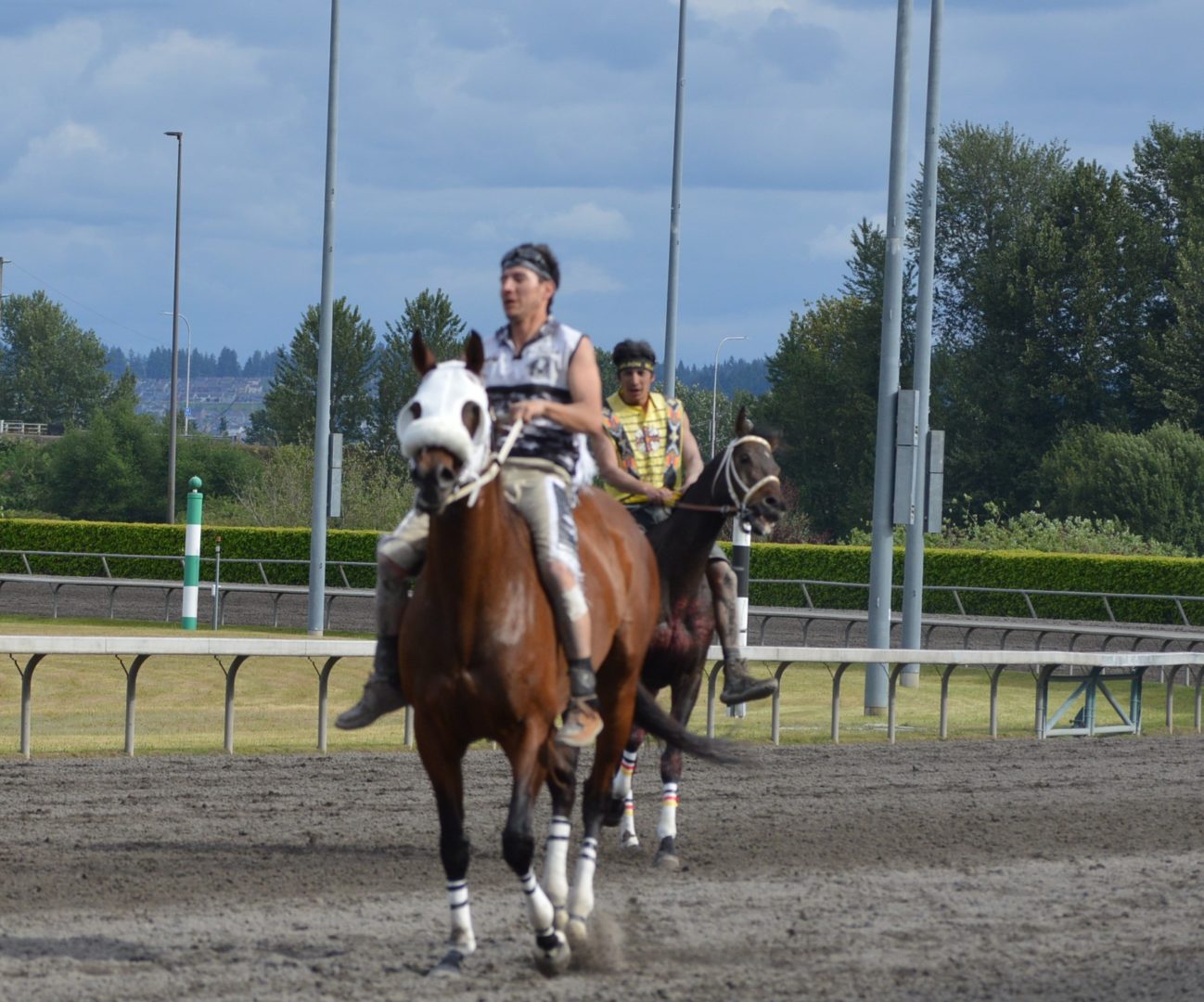 “It’s a great mix of celebrating our past with the competition of current day” said Muckleshoot Tribal Chairman Jaison Elkins as he and his family were on hand to take in Championship Sunday of the $65,000 Muckleshoot Gold Cup Indian Relays at Emerald Downs and it lived up to its billing with 2 outstanding consolation races and a spectacular Championship finale along with traditional dance and music of the Muckleshoot tribe.