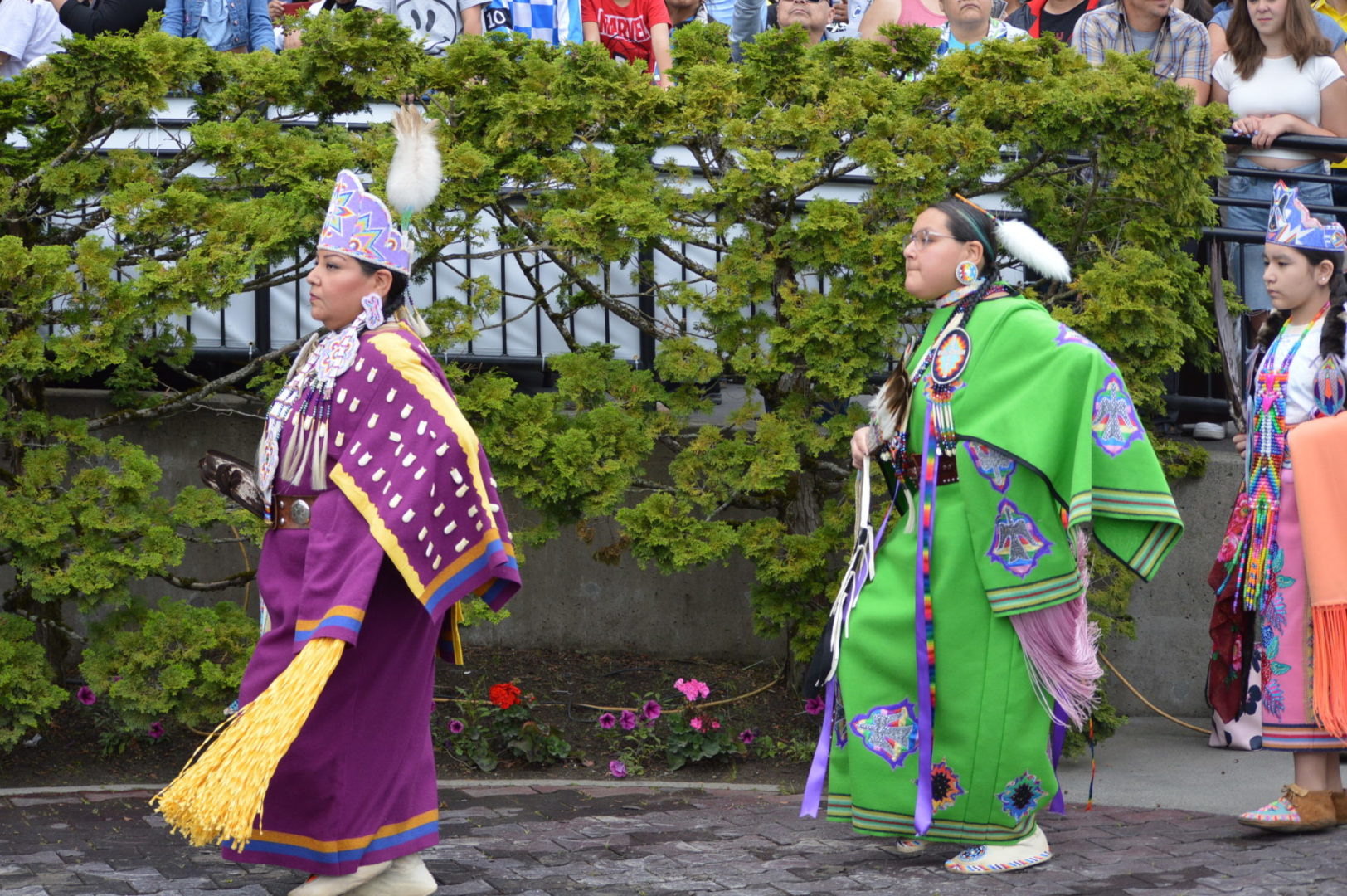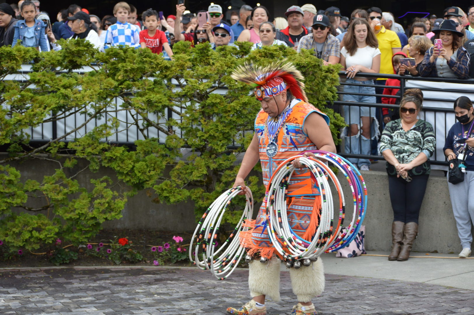 Mixed in with the racing are the brilliant color and historical dress of the Tribe with traditional dances and drum beats.