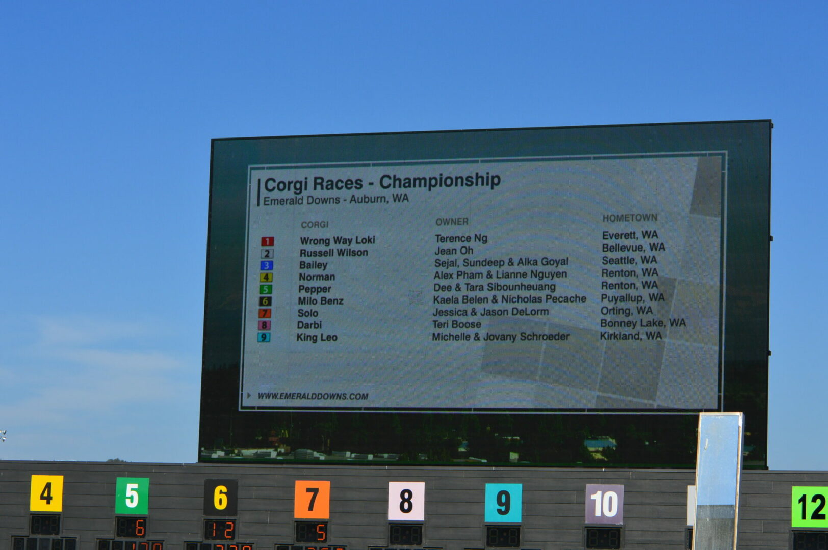 As the battling Corgi’s crossed the finish line you can hear it was 7, no it was 4, no it was 3, wait I think it’s 1 and after several slow motion replays #1 Wrong Way Loki was declared the winner. The Emerald Downs race officials then declared a 3-way tie for 2nd though many observers felt the finish was 1-4-7-3 and others felt it was 1-7-4-3.