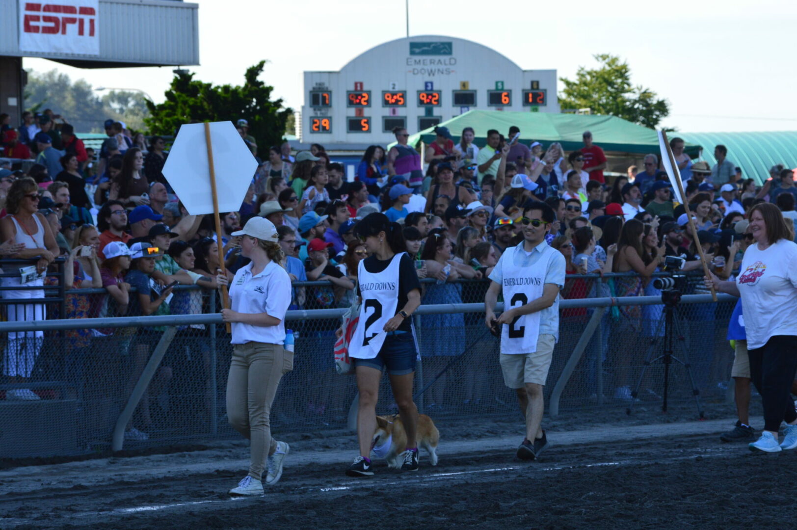 The 2022 Corgi races were held on Sunday at Emerald Downs. The event that began as the Weiner Dog races with radio station Star 101.5 and fueled by longtime Seattle radio icons Kent and Allen and ballooned into the continuing Weiner dog races which will be held on Sunday, August 28. Since then there have been Bulldogs and wannabe’s added but the Corgi’s are the group that exploded.