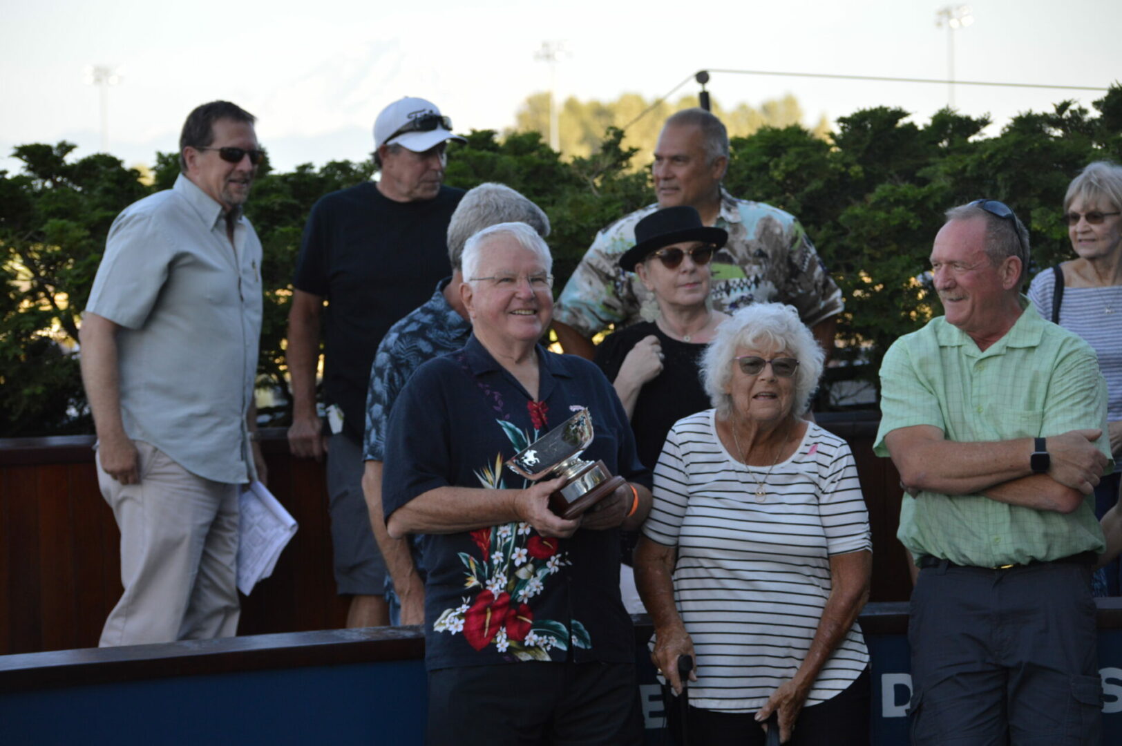 Dontkissntell is a regular in the older filly and mare stakes and hadn’t won since 2018 but with Bella out of the race the public was not fooled and went straight to her consistency making her the 4-5 odds-on choice. Tom Wenzel is the trainer and set a record for winning his 4th Legislators Stakes. The owner is K D Thoroughbreds, which is Darlyne Krieg and her husband Karl who passed away after a long battle with cancer in September of 2019. (For more on Karl, his story is fascinating and you can read his memorial here.) This was the first Stakes win for the Krieg’s since Karl’s passing and it was a touching and special moment for Darlyne.