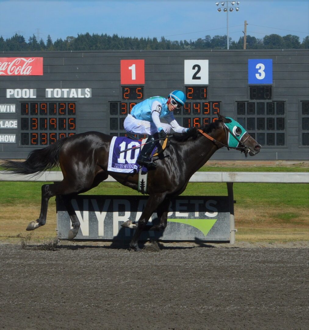Karl Krieg bred Slew’s Tiz Whiz. Slew is a 4-year-old gelding by Slew’s Tiznow out of Ros’s Girl by Rosberg. Slew’s Tiz Whiz is now 6-1-1 from 12 career starts and picked up an $82,500 paycheck and nearly doubles his lifetime earnings to $170,707. This win coupled with the Governor’s Stakes certainly puts Slew’s Tiz Whiz at the top of the list for Horse of the meet. There is one more Stakes he could run in this season and that’s the Washington Cup on September 18, closing day.