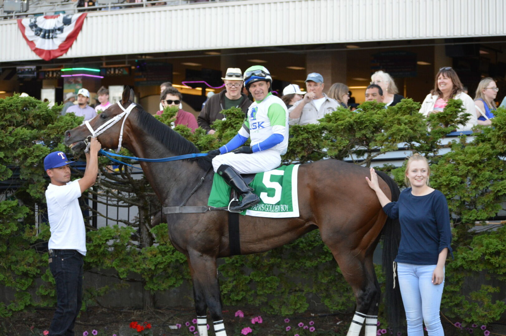 Papa’s Golden Boy is owned by Lusk Racing led by Gary Lusk and trained by Vince Gibson. Papa is a 6-year-old Washington bred by Harbor the Gold out of Brookie Girl by Proud Citizen. Papa’s Golden Boy picked up the $27,500 winner’s share check and has now earned $228,695 with a 8-5-0 record from 23 career starts. This was Radke’s 5th Stakes win of the year which put him #1 in that category for the season.