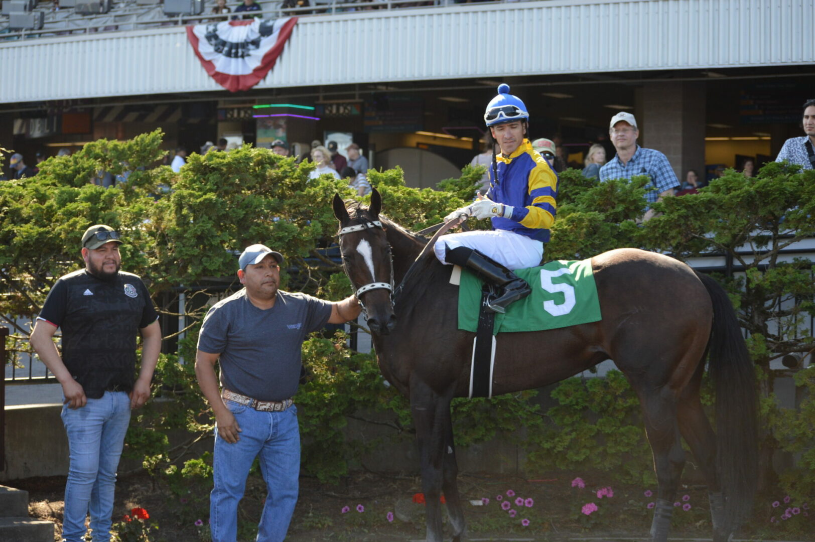 Chuckanut Bay trained by Jorge Rosales could do nothing to change the outcome other than had hoped Lloyd would have been scratched prior to the race as Chuck was a clear 2nd by 7 1/2 lengths. It’s Turbo closed to be 3rd and Eddie Martinez who got scratched on his original ride picked up the ride on 29-1 Red Cross Knight also a Todaro/Wenzel entry got up for 4th.