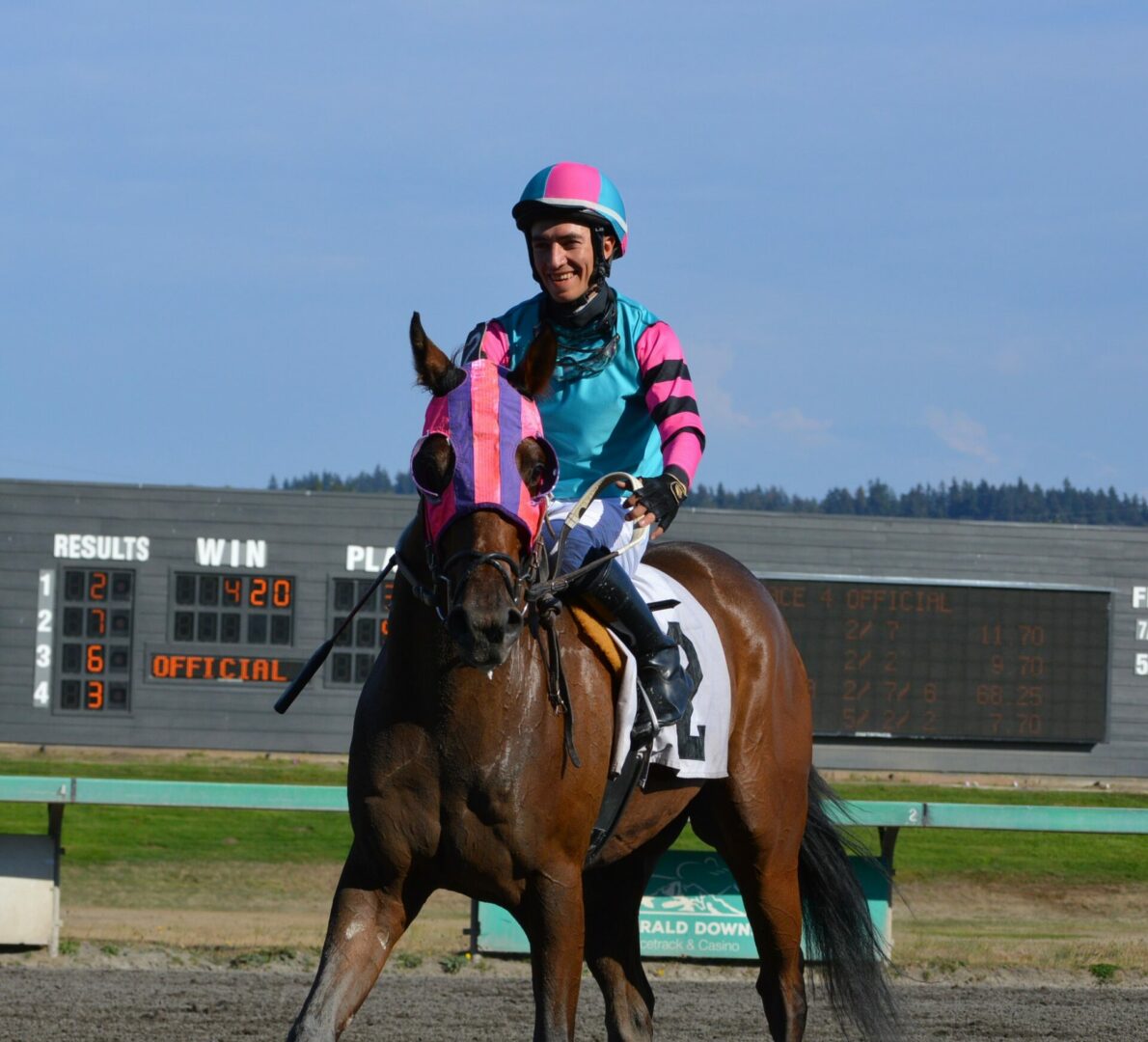 And in the final race, although he’s been here all season jockey Vladmir Jensen got his 1st Emerald Downs win when he brought home 17-1 Beau Rocks in the 11th and final 2022 race. Beau Rocks races for and is trained by Jennifer Nunnally her 2nd win of the day. Jensen was greeted in the traditional way by his fellow jockeys.