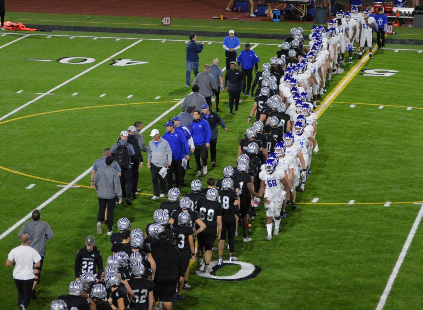 This game was decided though by field position, defense and ball control. The punt to the 1 yard line by Peterson, his controlled kicks and really determining field position never allowed Curtis to find any kind of rhythm for the entire 1st half and then the pick 6 by Lane in the 3rd really turned the game and Curtis could never catch up.