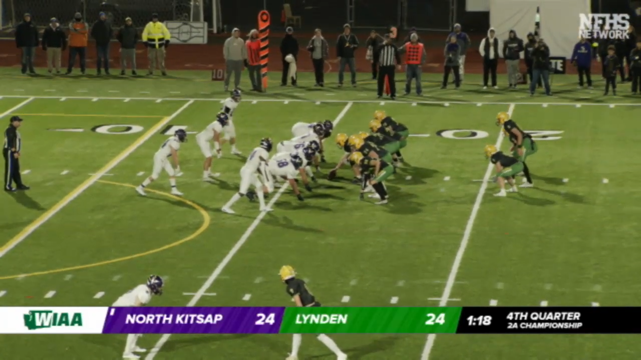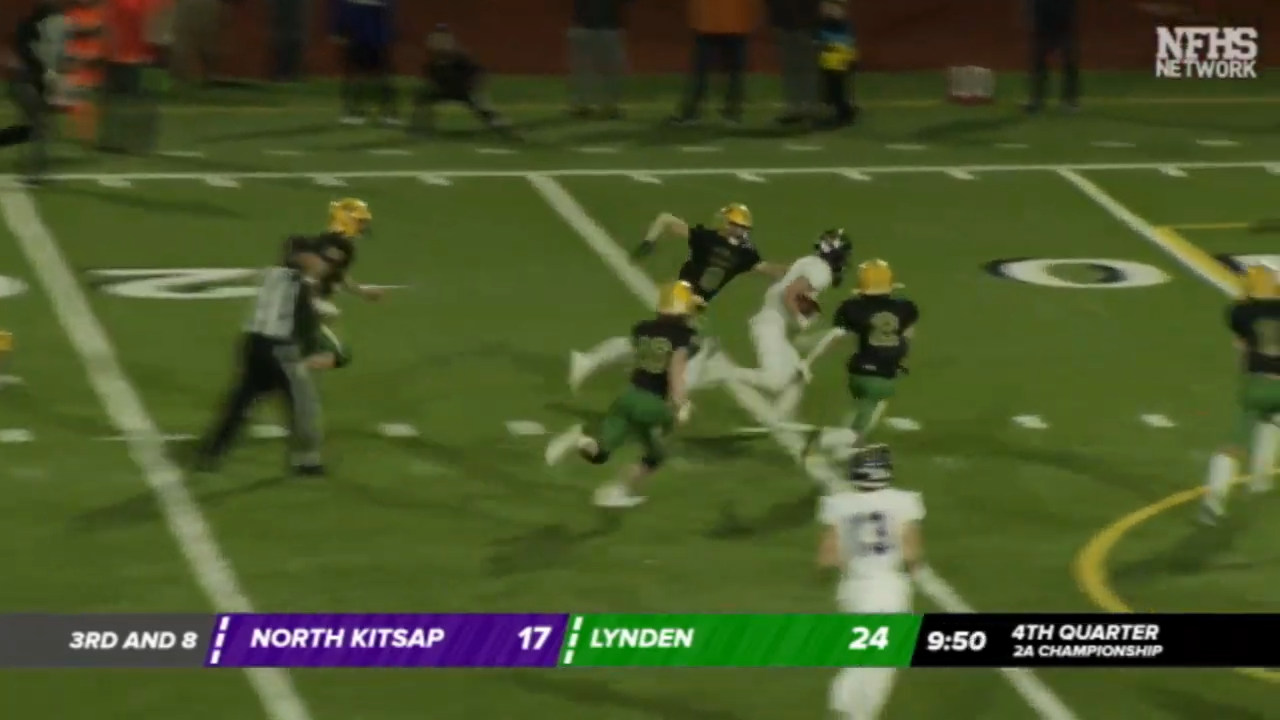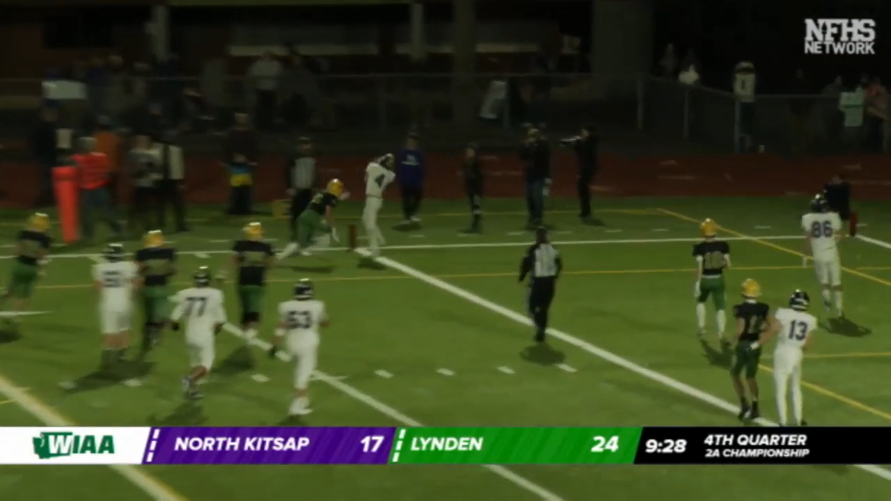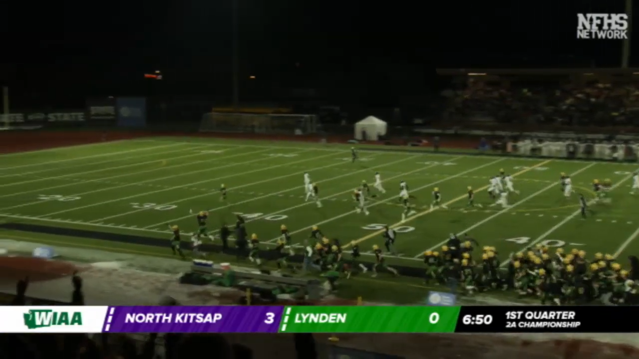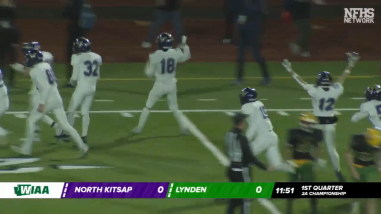 After receiving the kick way back on their own 11 they fumbled the ball and Lynden would recover to clinch their 10th State Championship in a crushing loss to North Kitsap.