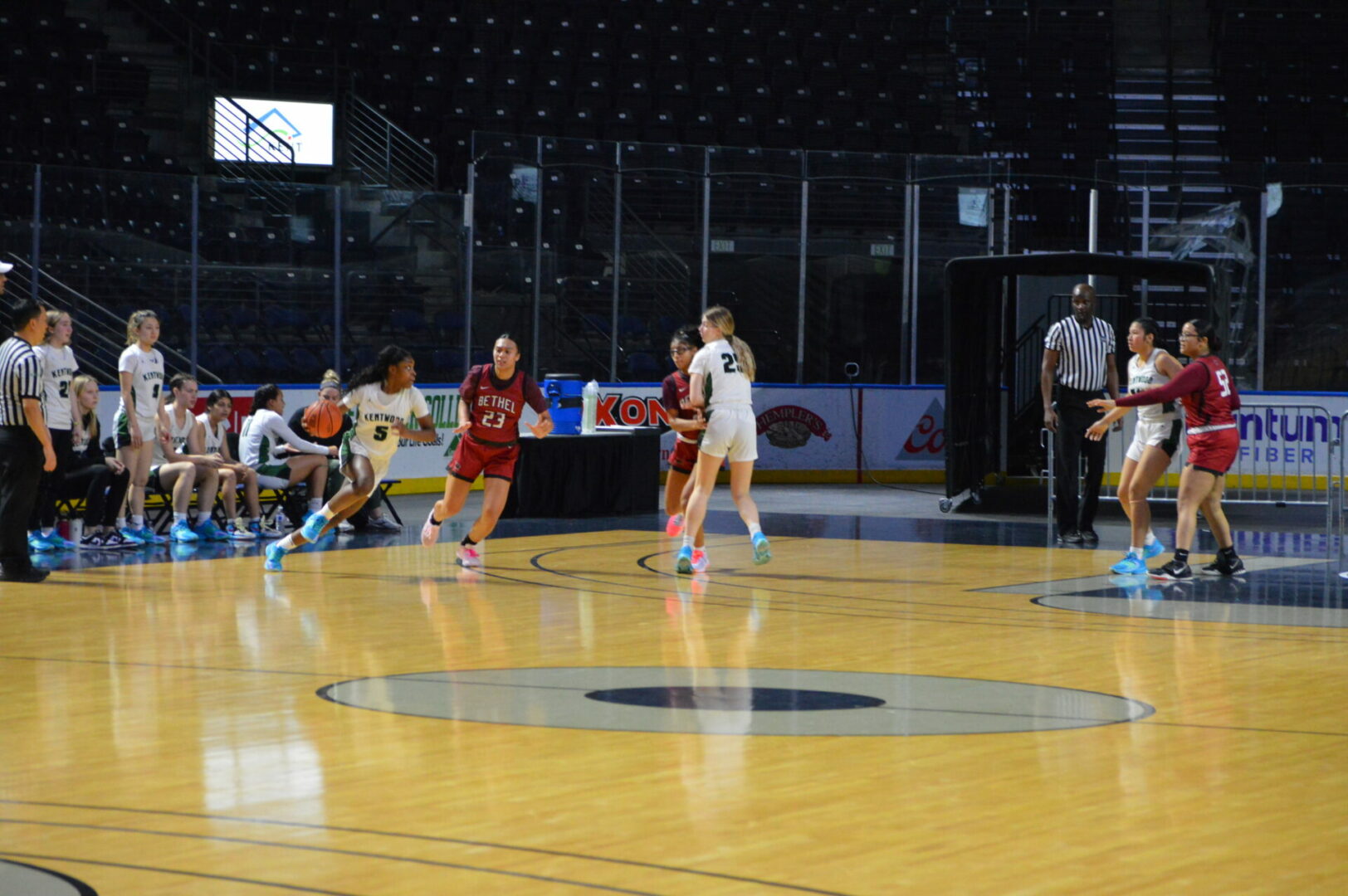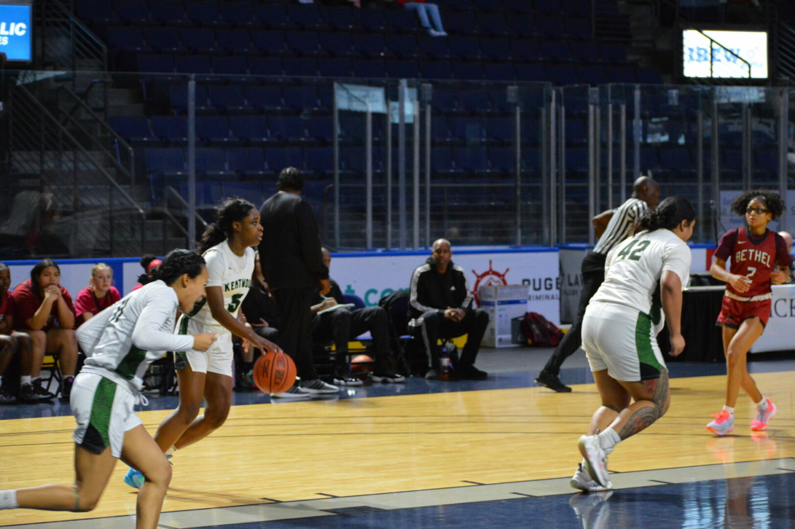 Kentwood took the lead after the 1st quarter with a solid 18 points holding Bethel to 12. In the 2nd quarter Bethel clamped down on defense and poor shooting limited KW to a single basket, 2 points while they remained consistent with 13 and took a 25-20 lead into the break.