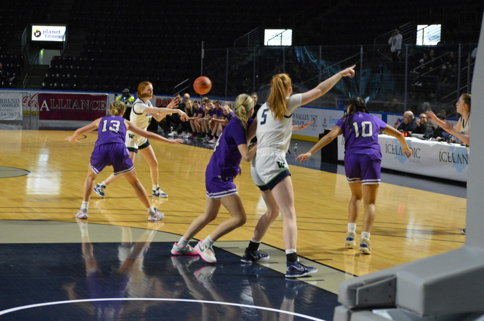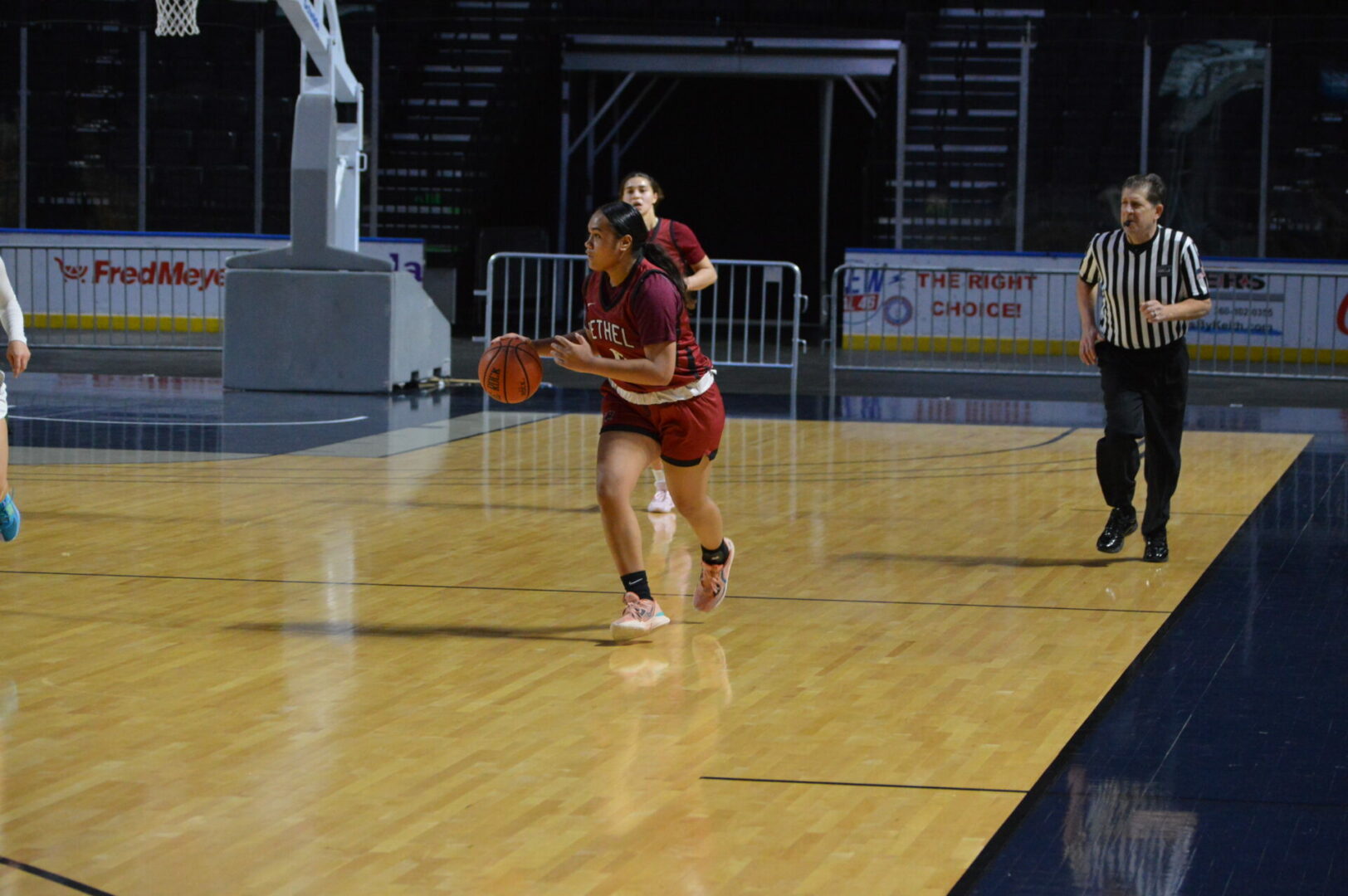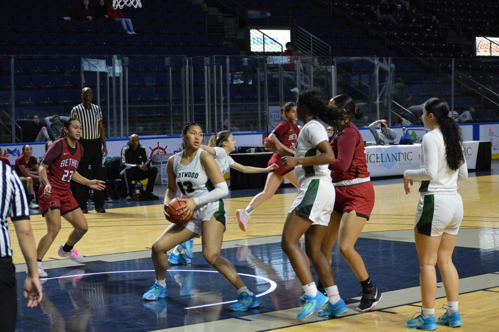 After some fouling back and forth Bethel found themselves at the free throw line with 6 seconds to play and Foai Pula shooting. Pula came up short and the ball came out and was rebounded by Kentwood but Alyssa Smith got her hands on the ball to force a jump and Bethel had possession and 4 seconds to work with. From the baseline the ball was thrown into Pula just outside the key, she took a dribble and it went off her foot and rolled out across the 3 point line where the Bison’s Moriah Sears picked it up and launched a shot that would have won the game and as the horn sounded the ball clanked off the rim just barely missing the game winner.