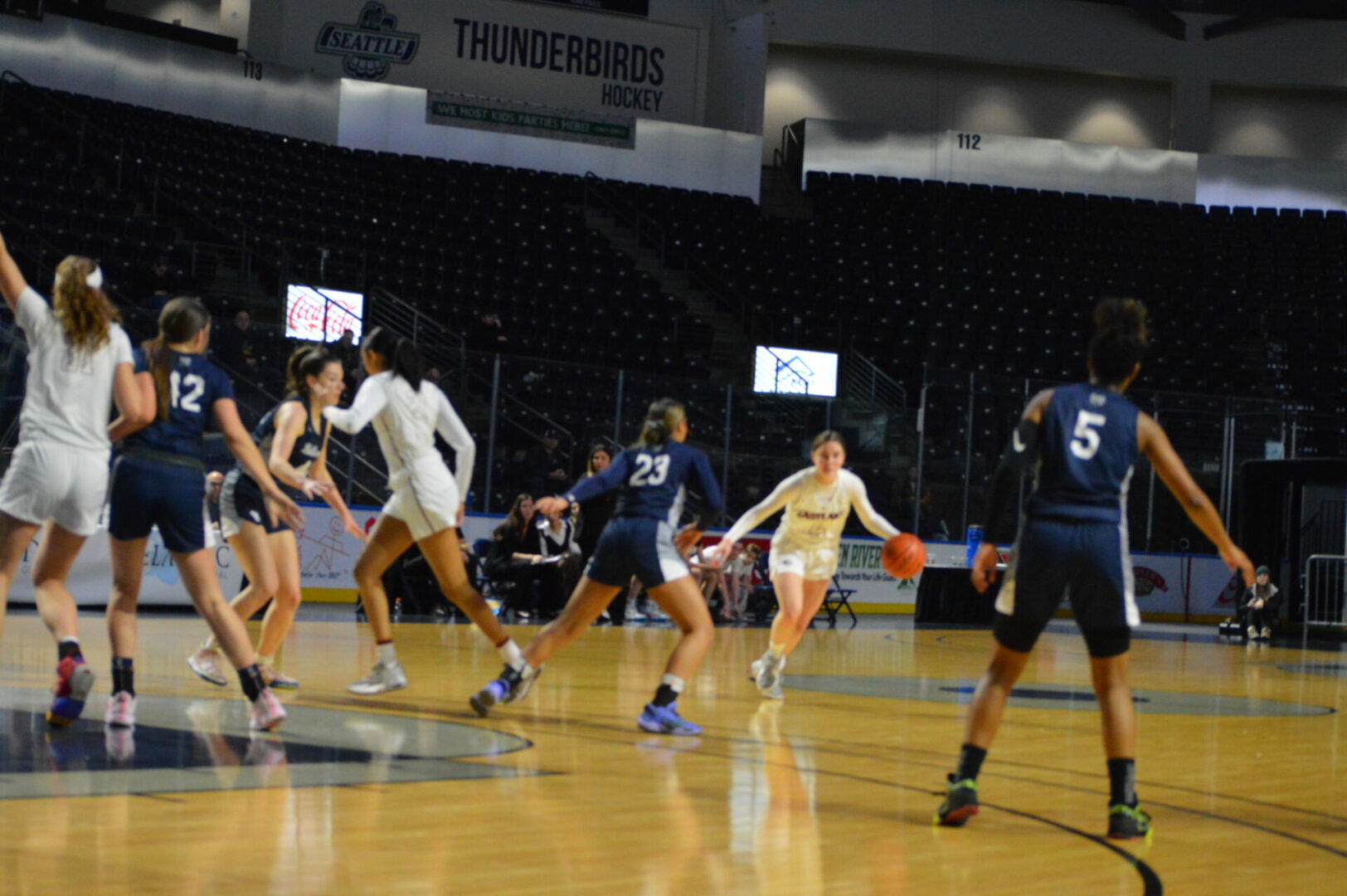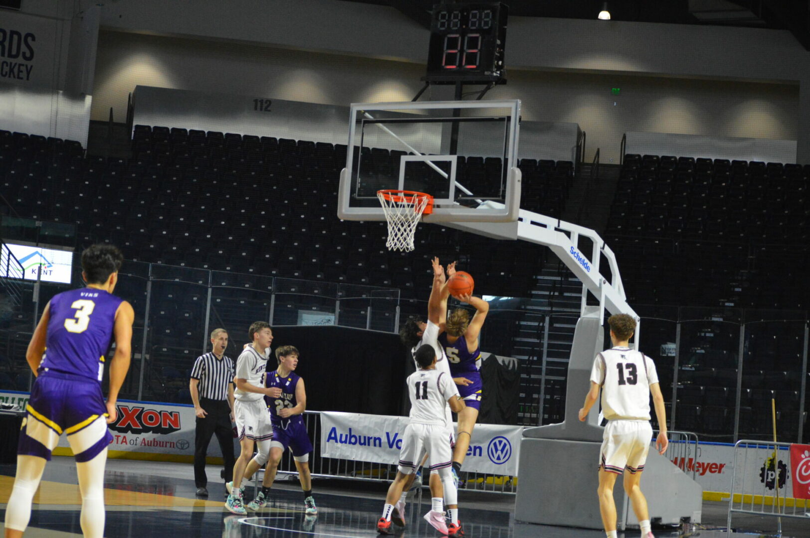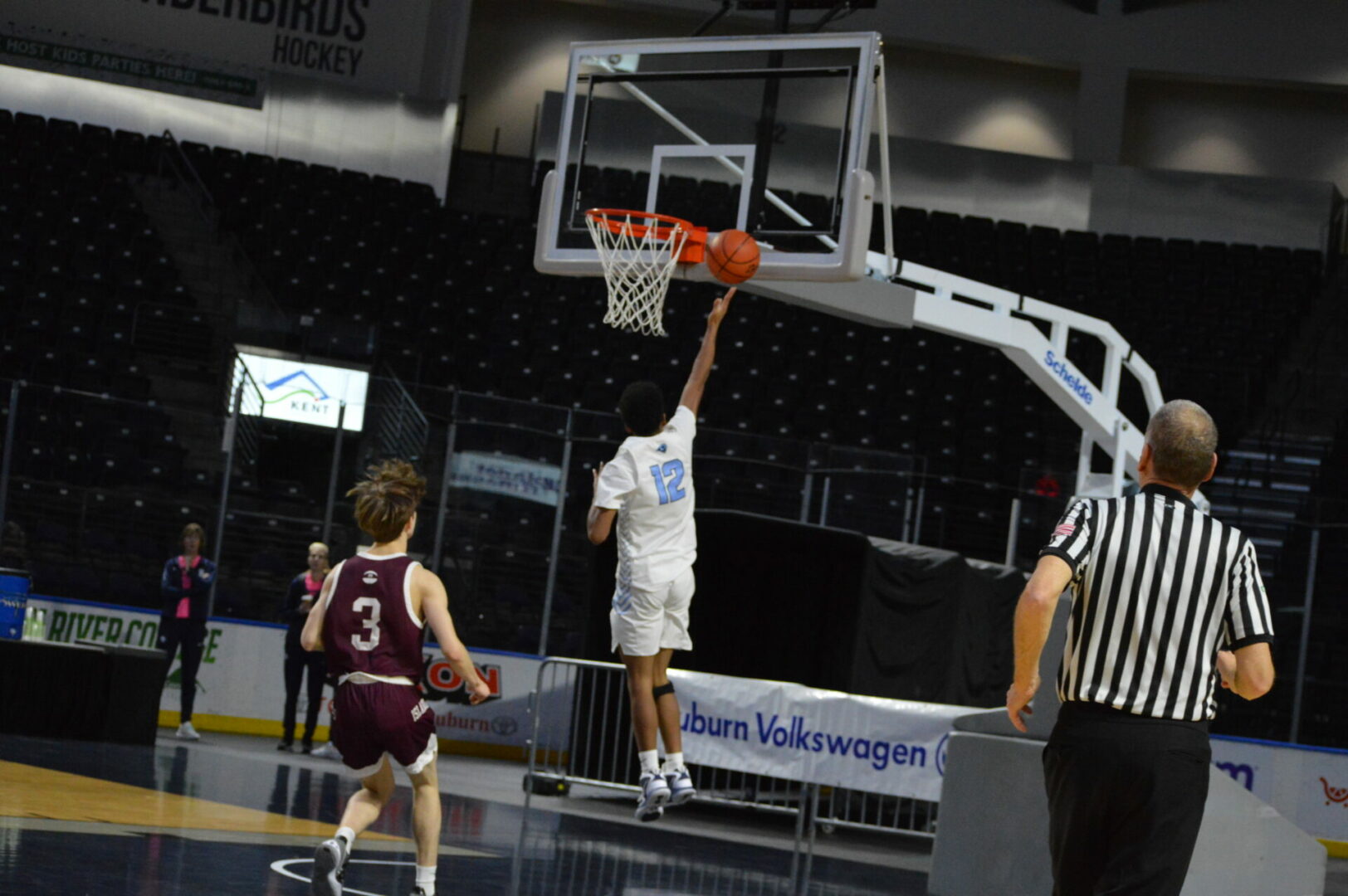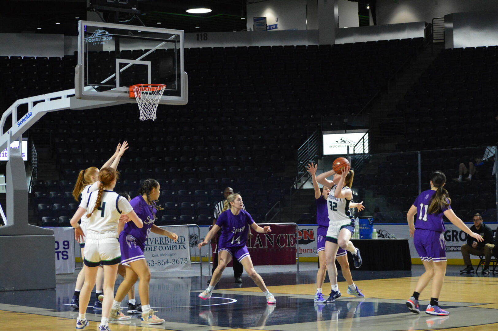 The Puyallup Vikings and Kentlake Falcons kicked off the day long MLK Showcase in the Showare Center on Monday and it was the Vikings that used a big 2nd quarter to propel them to the first win of the day.