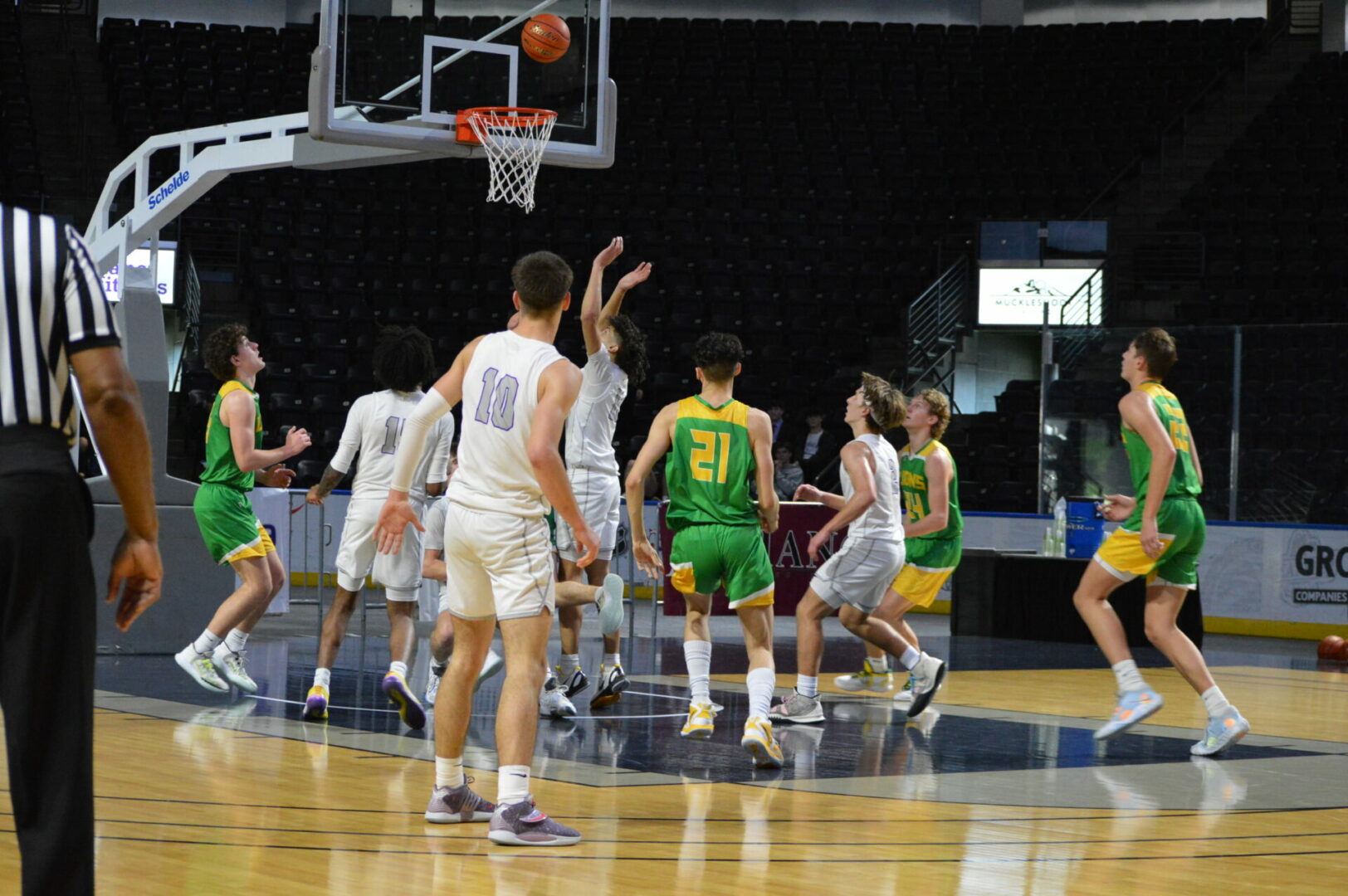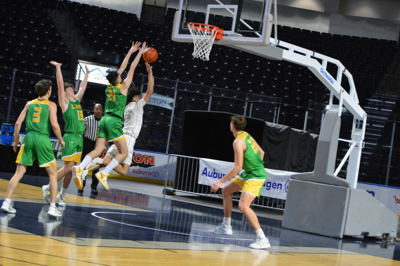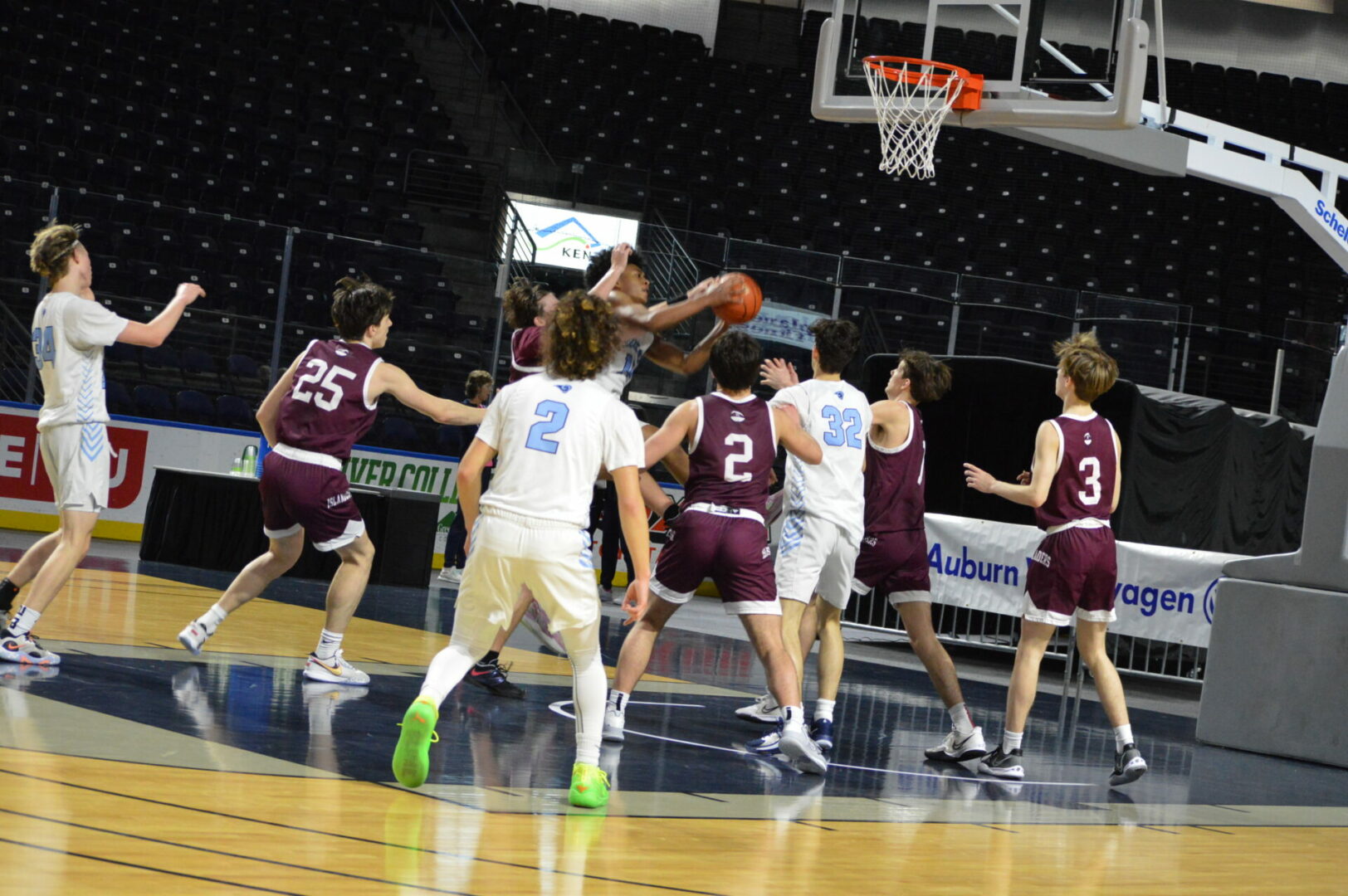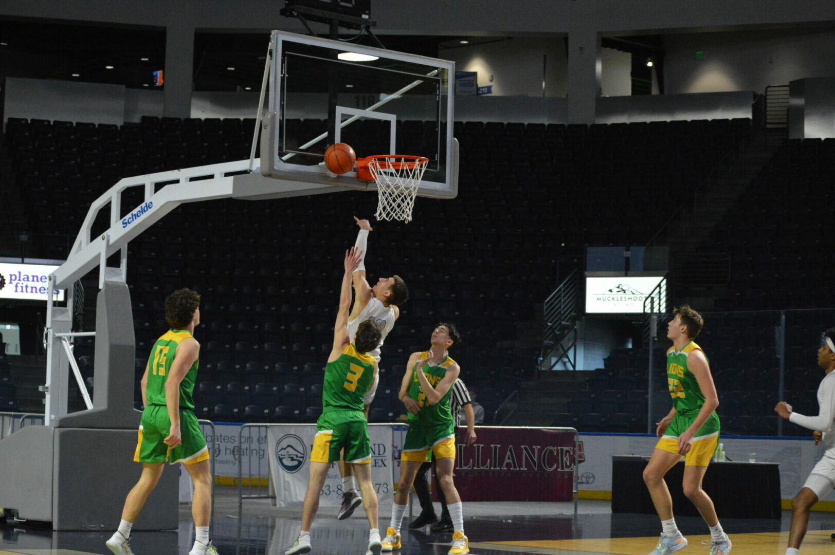 Neither team allowed the other to get too far away as they were tied after 1 at 11-11 and then the Lions led 29-28 at the break. Coston Parcher led the Lions with 12 1st half points while Brant Happner knocked in 8 of dozen for the game. North Kitsap hung right with the defending champions behind Harry Davies’ 14 points and the 9 from Cade Orness.