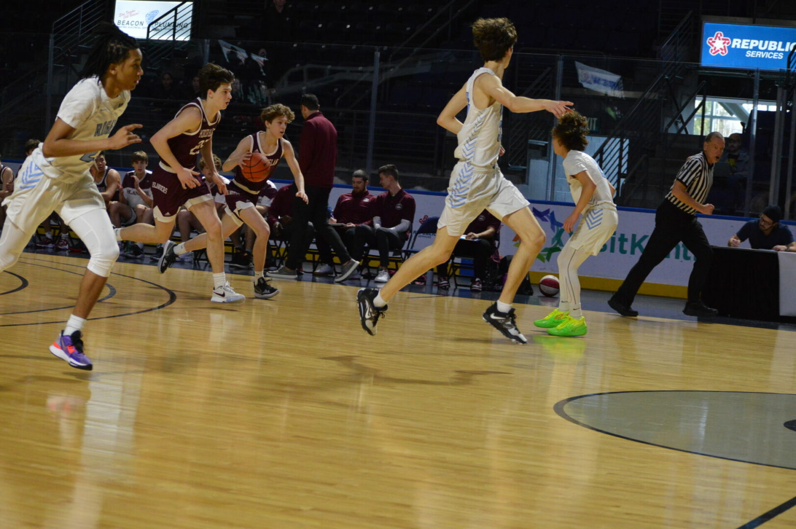 Game 2 on the day had a real post-season feel as it went down to the final seconds. Mercer Island jumped on the Rogers Rams for a 16-6 lead after the 1st quarter. Syver Lanctot got the Islanders rolling early scoring 11 of his 14 in the 1st half doing with 3 long balls from behind the arc.