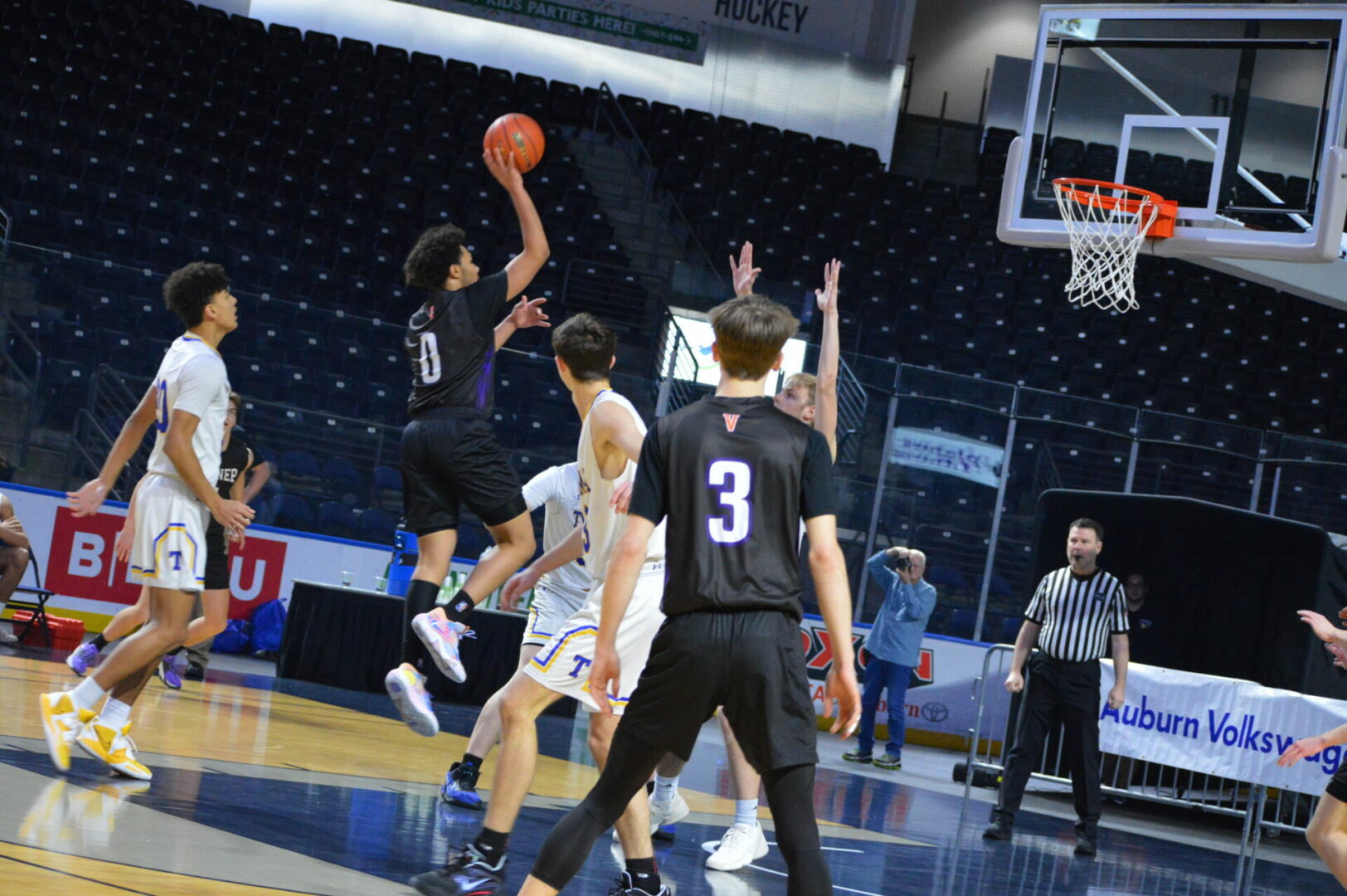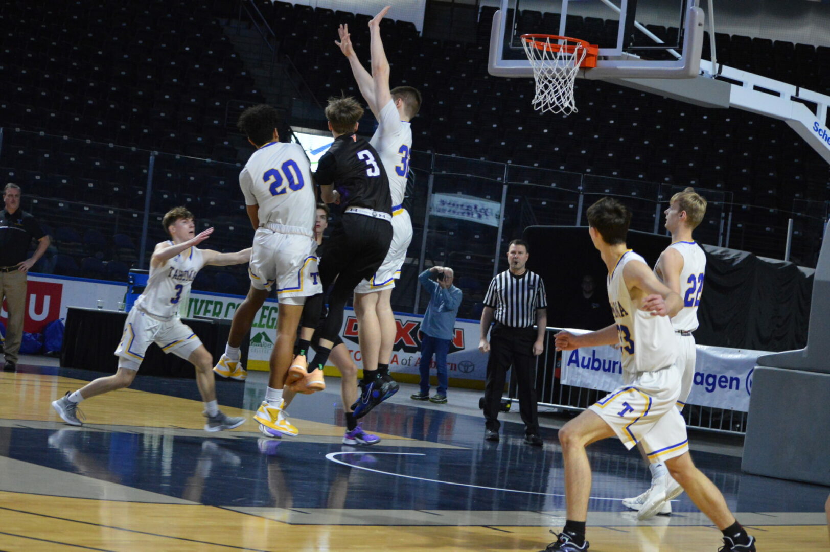 The last two state tournaments saw Lynden win it all last year and finish 3rd the time before, whereas, North Kitsap finished 3rd last year and won it all the time before. Neither team was willing to give an inch and it showed Monday afternoon at the Showare Center where the winning shot literally rolled in as time expired in the game.