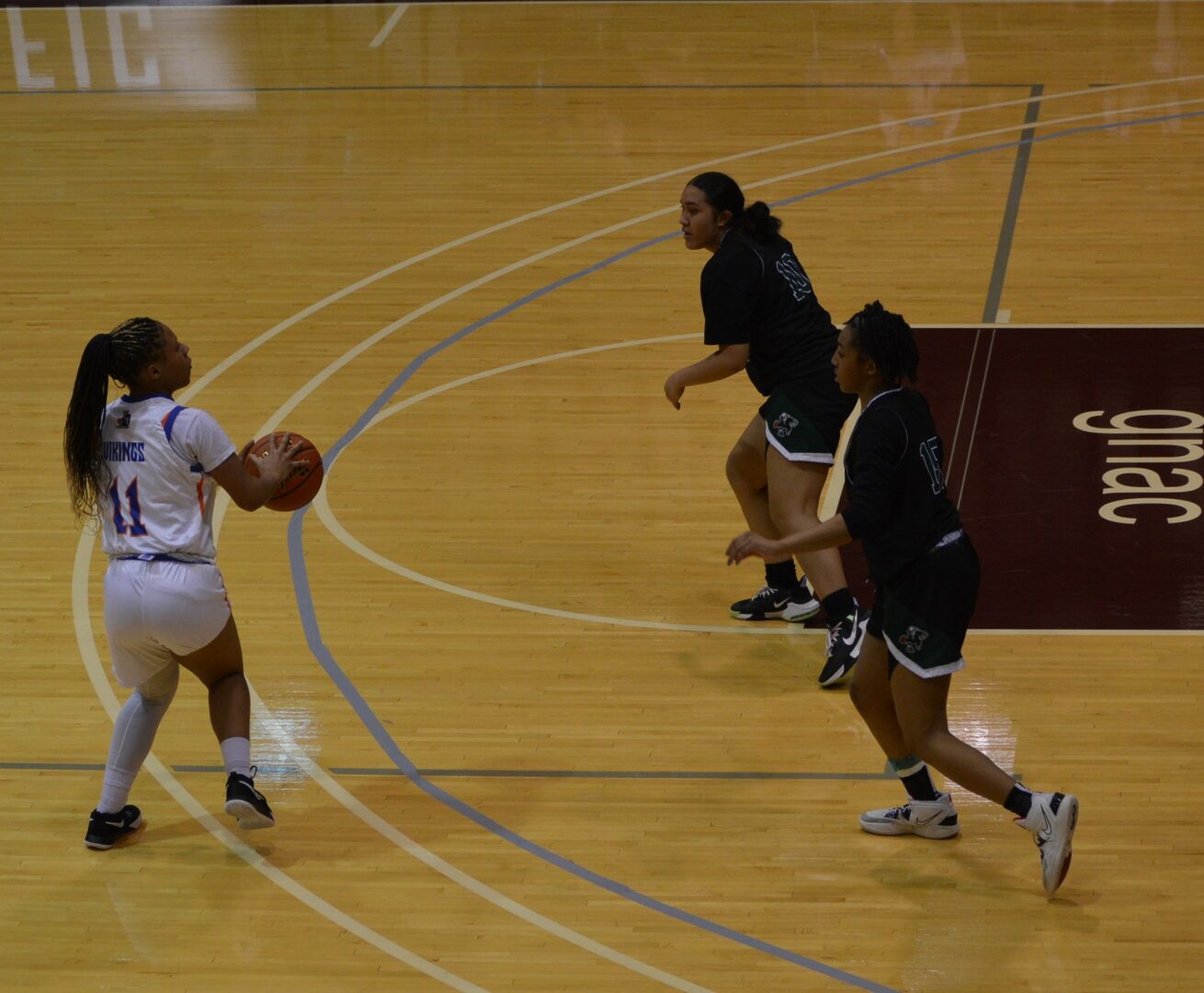 Sumi Hart was nearly 2/3’s of the offense all herself with 19 of the 30 points and she ended up fouling out with about 5 minutes to play. She was also in early foul trouble so she did all this damage in a very limited amount of time. Hart dropped 3 longballs and was 5-9 from the line. Nayloni Mathews played a rough and tumble game never giving up and getting after the loose balls while knocking in 8 points. Linda Chollette finished with 2 and Miracle Mason had 1.