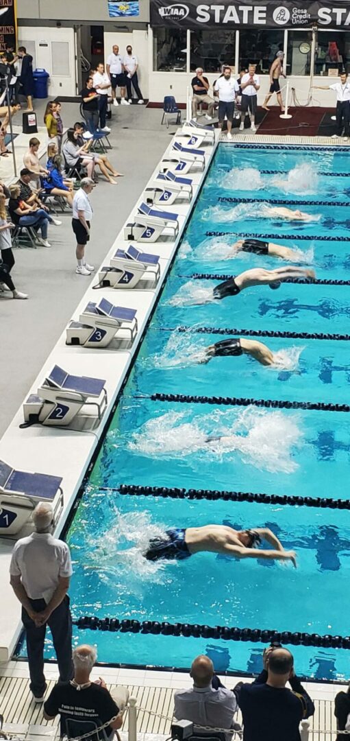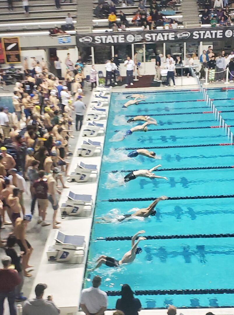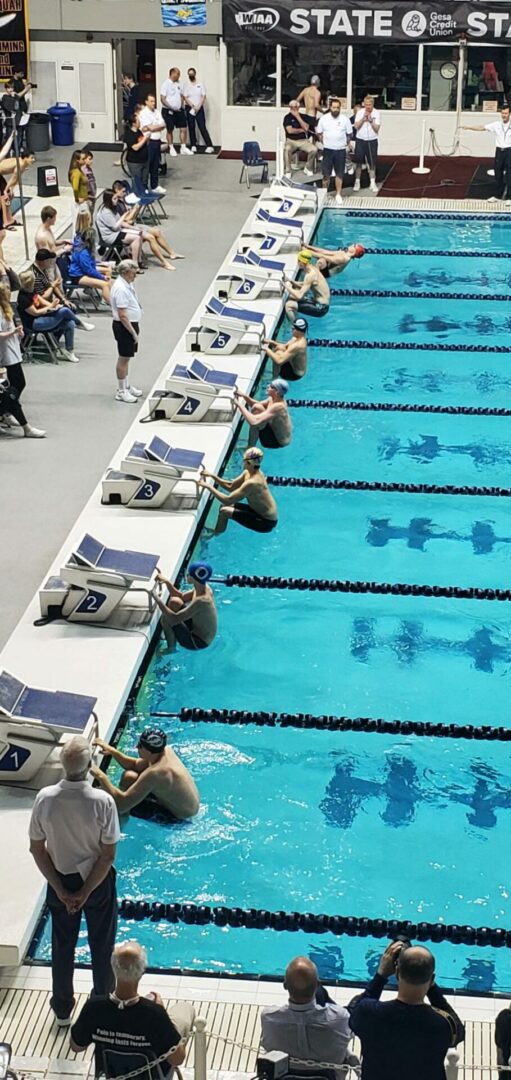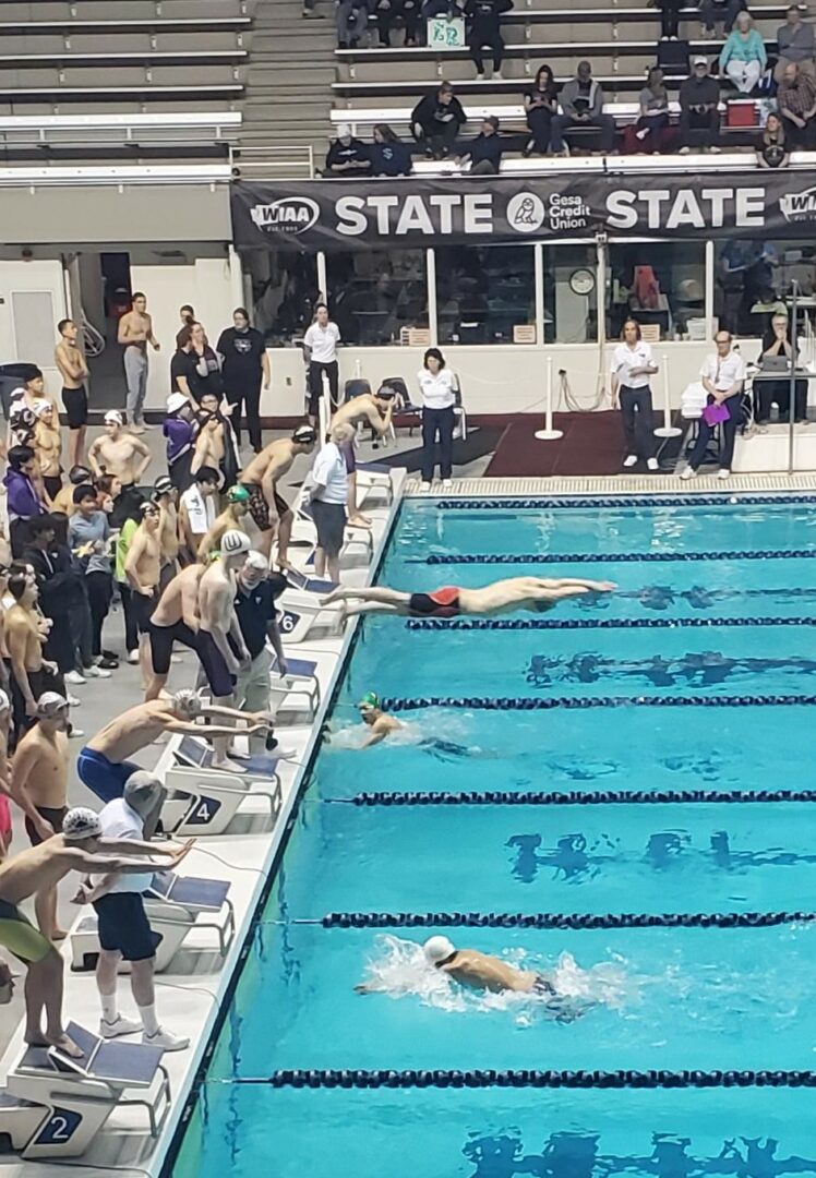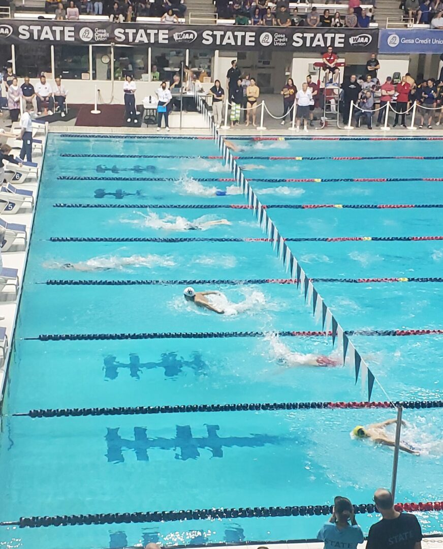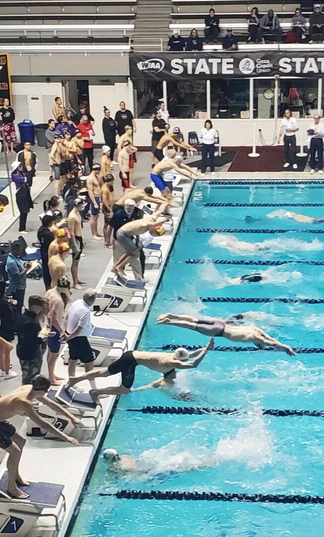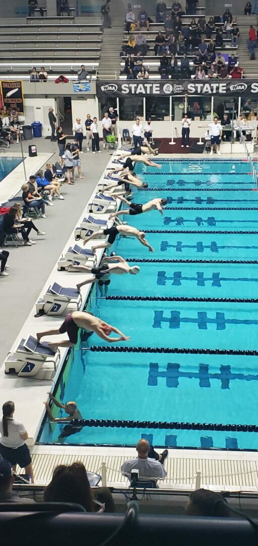 (Federal Way, WA) With the State Diving Championships in the books on Thursday, Friday was time to turn our attention to the racing. All 3 classifications held their preliminary heats on Friday. 4A is in the morning this year, 2A/1A afternoon and 3A in the evening.
