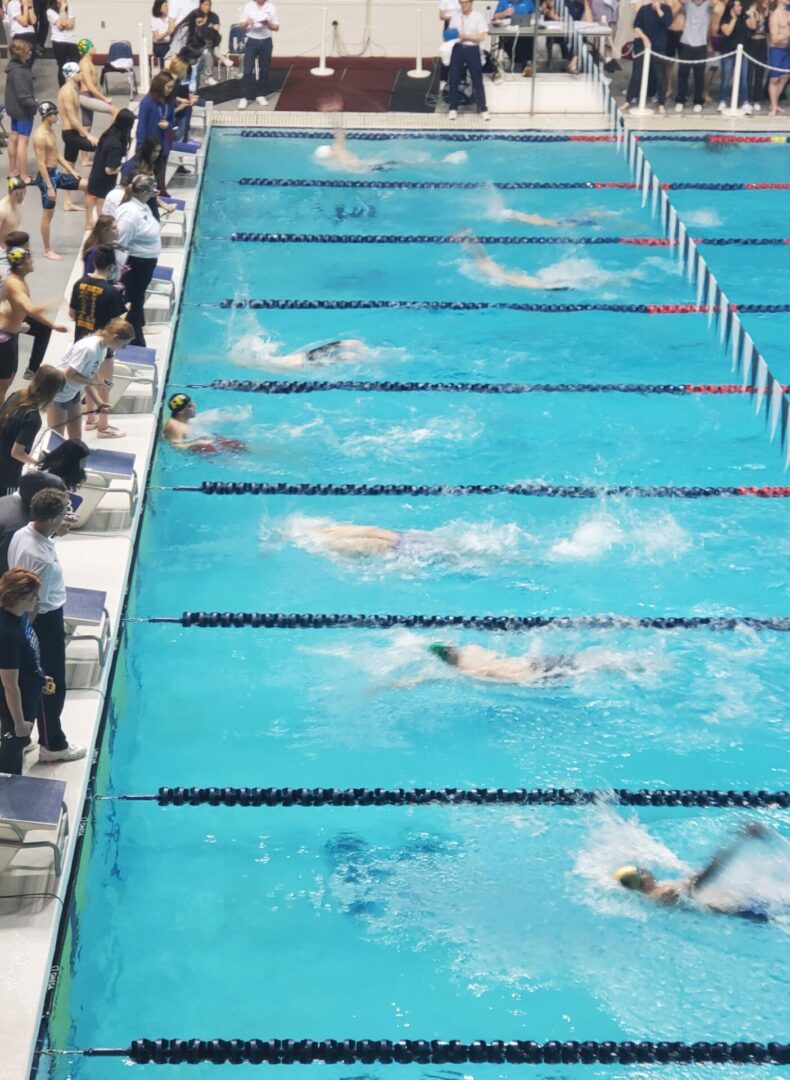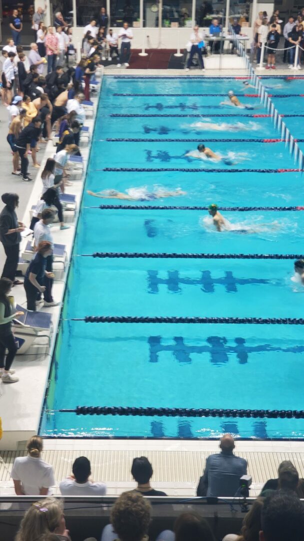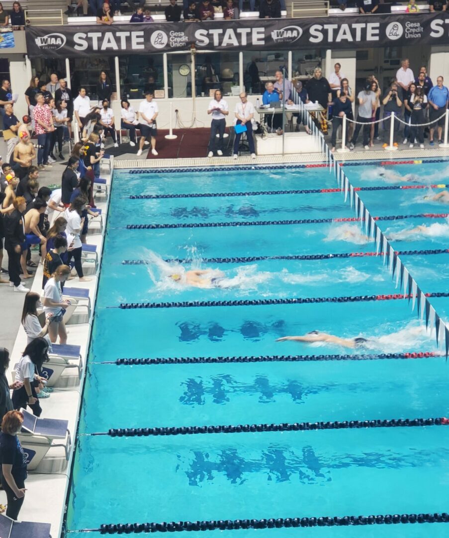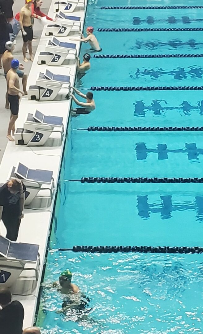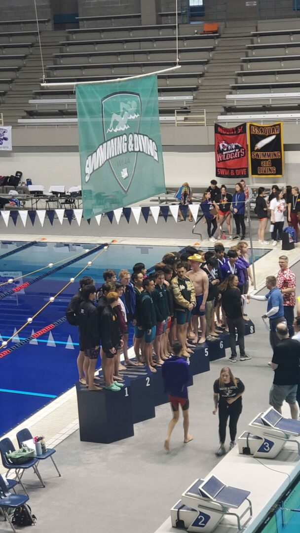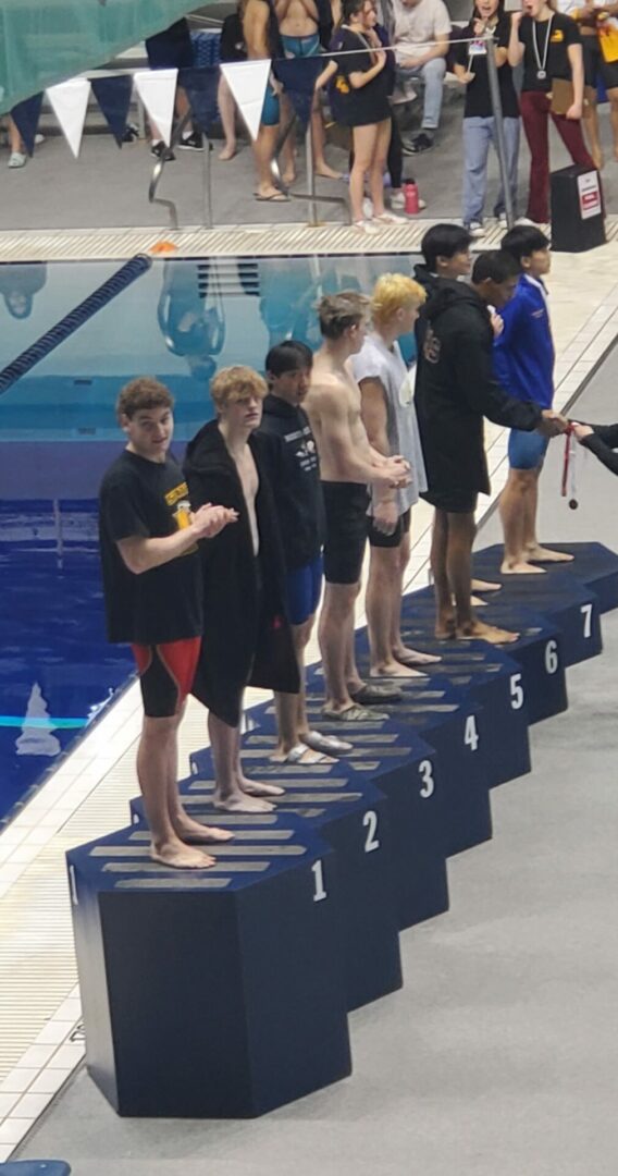 (Federal Way, WA) The 2022-23 Swimming season is over with the girls meets in the Fall and the Boys wrapping up on Saturday at the King County Aquatic Center in Federal Way. The final day the swimmers brought their A game with records falling and several automatic All America times and several All America consideration times being recorded with 4 such times in a single race.