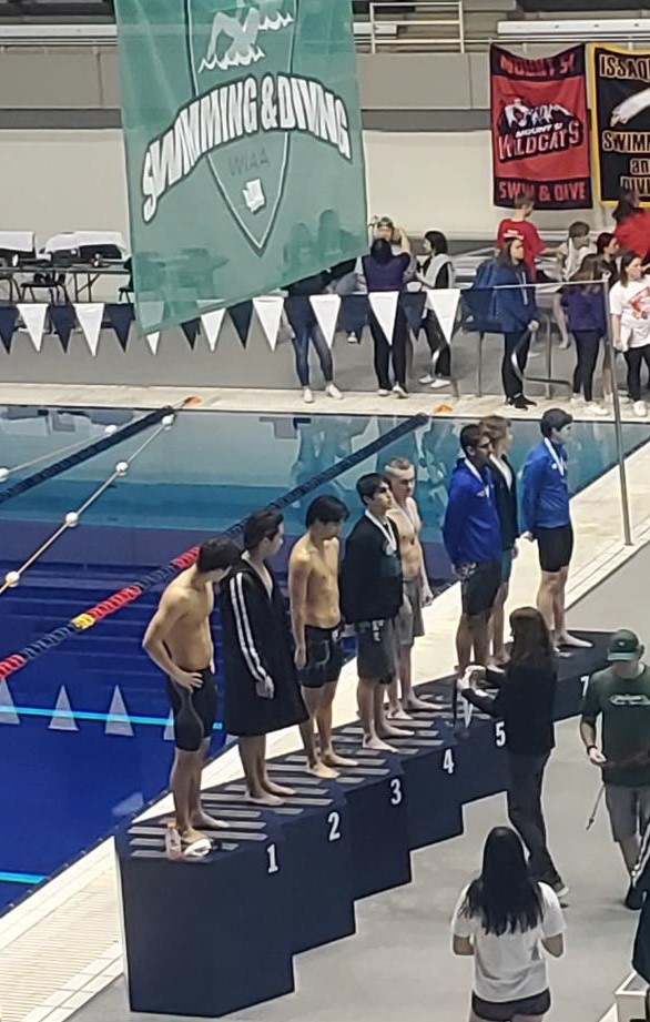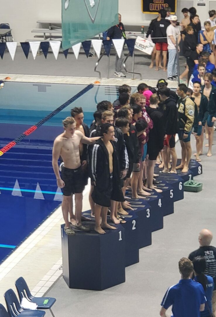 Hanford made their trophy run late and were led by Senior Andy Gelston and he took home his 1st Championship in the marathon event the 500 freestyle. Gelston took nearly 5 seconds off his qualifying time which was 2nd highest behind Redmond’s Jaiden Sreenivasan. Gelston finished in a time of 4:36.79 about 3 seconds short of an AAC time.